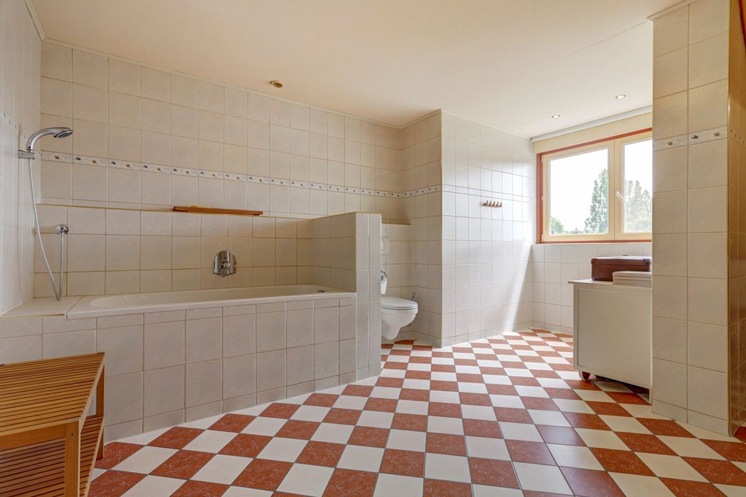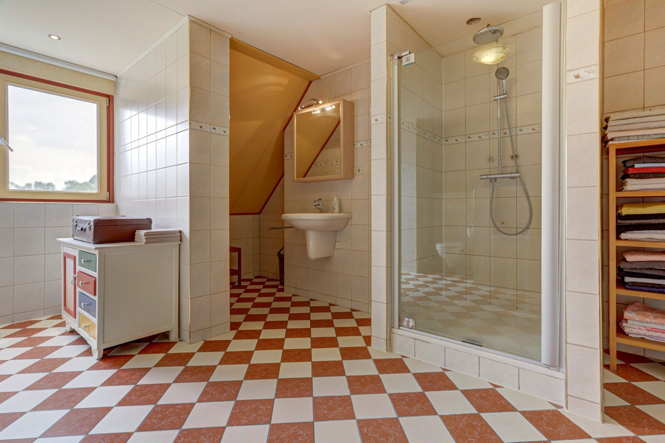 De badkamer is enigszins verouderd en de douche is aan vervanging toe. Je beschikt hier echter ook over een ligbad, een toilet en een wastafel. De badkamer is uitgevoerd in neutrale aardetinten.