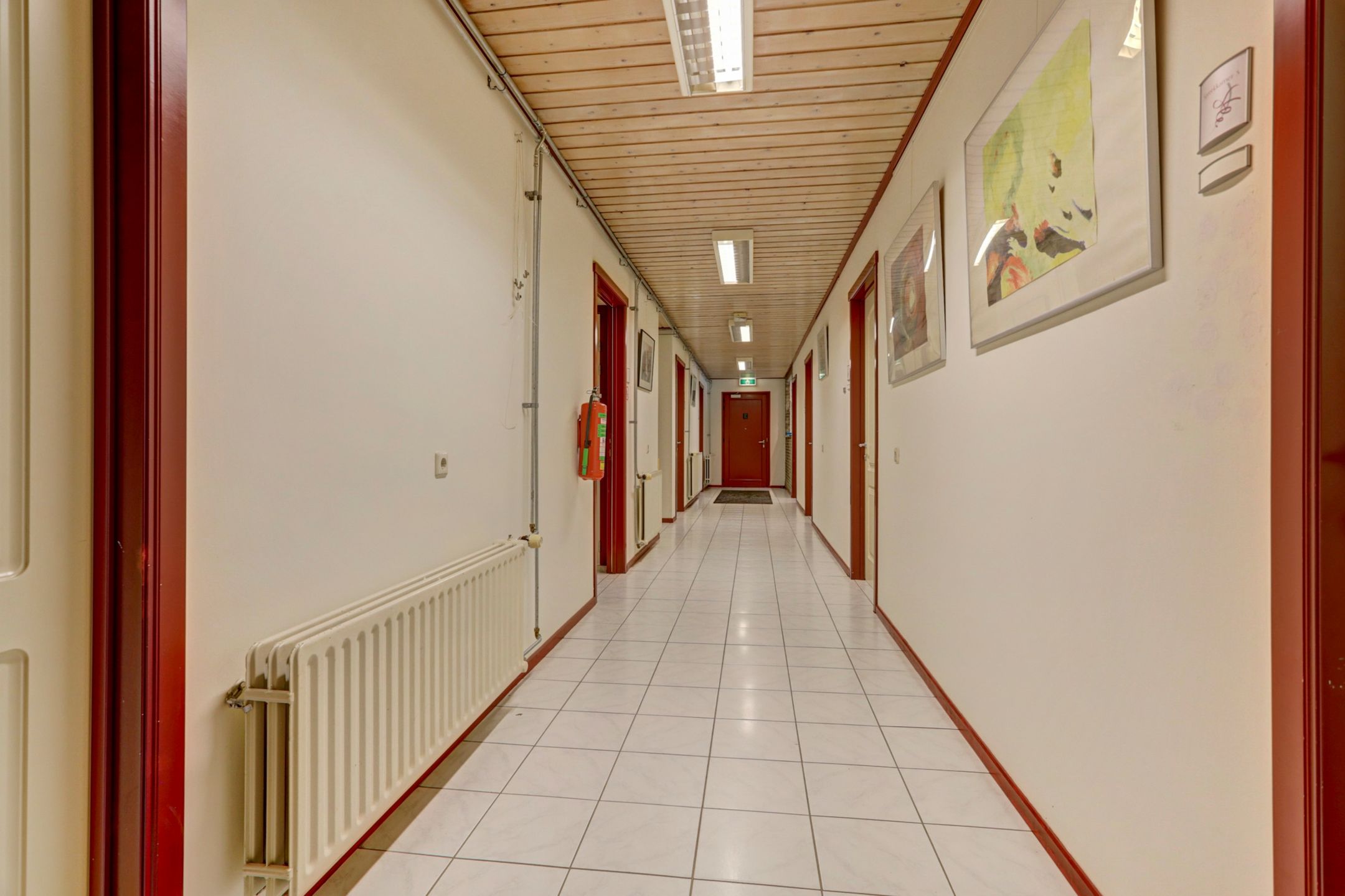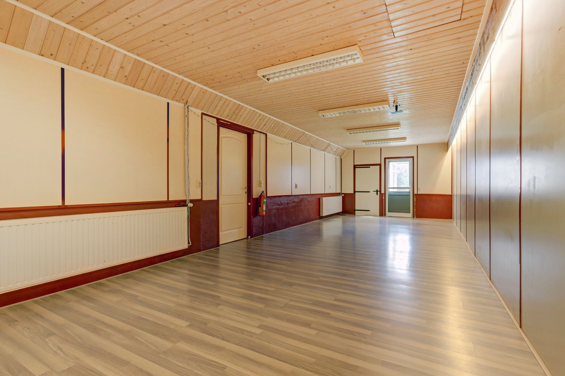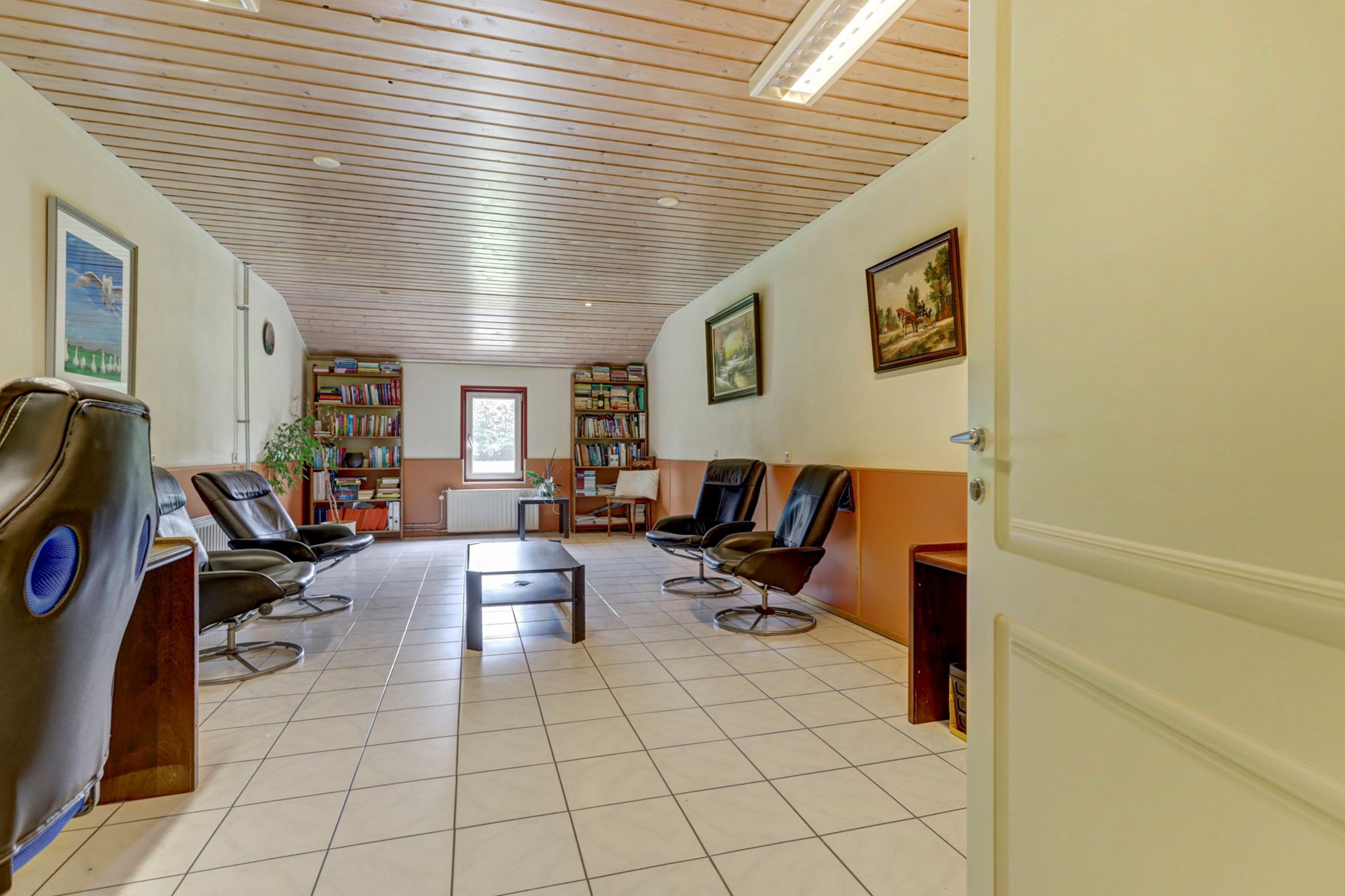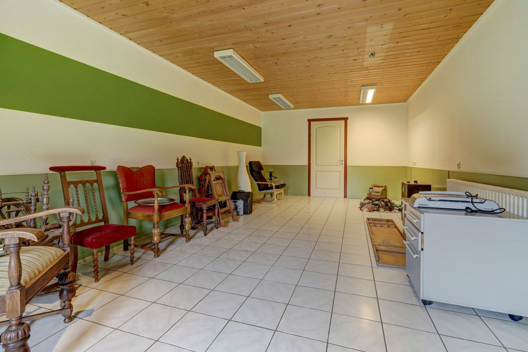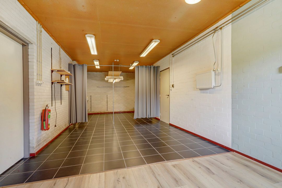 De praktijkruimte heeft een eigen ingang die je via een beklinkerd pad met beukenhaag kunt bereiken. Om de privacy in de achtertuin te behouden is er een muur gemetseld die begroeid is met druivenstruiken en blauwe regen. De praktijkruimte bestaat uit een receptie, vier behandelkamers, een wachtruimte met twee toiletten en doucheruimte en een archief. In de keuken is een keukenblok, ruimte voor een fornuis, een Daalderop boiler van 120 liter, witgoedaansluitingen en een koelcel. Helemaal achterin ligt een groepsruimte met een eigen uitgang en een plek voor de meterkast, de CV ketel en de omvormer van de zonnepanelen. Boven het complex ligt nog een complete zolder die met een vaste trap te bereiken is en bestaat uit vier ruimtes die elk beschikken over een airco die kan koelen en verwarmen. Een kleine deur zorgt ervoor dat je in geval van nood via het dak de zolder kunt verlaten.