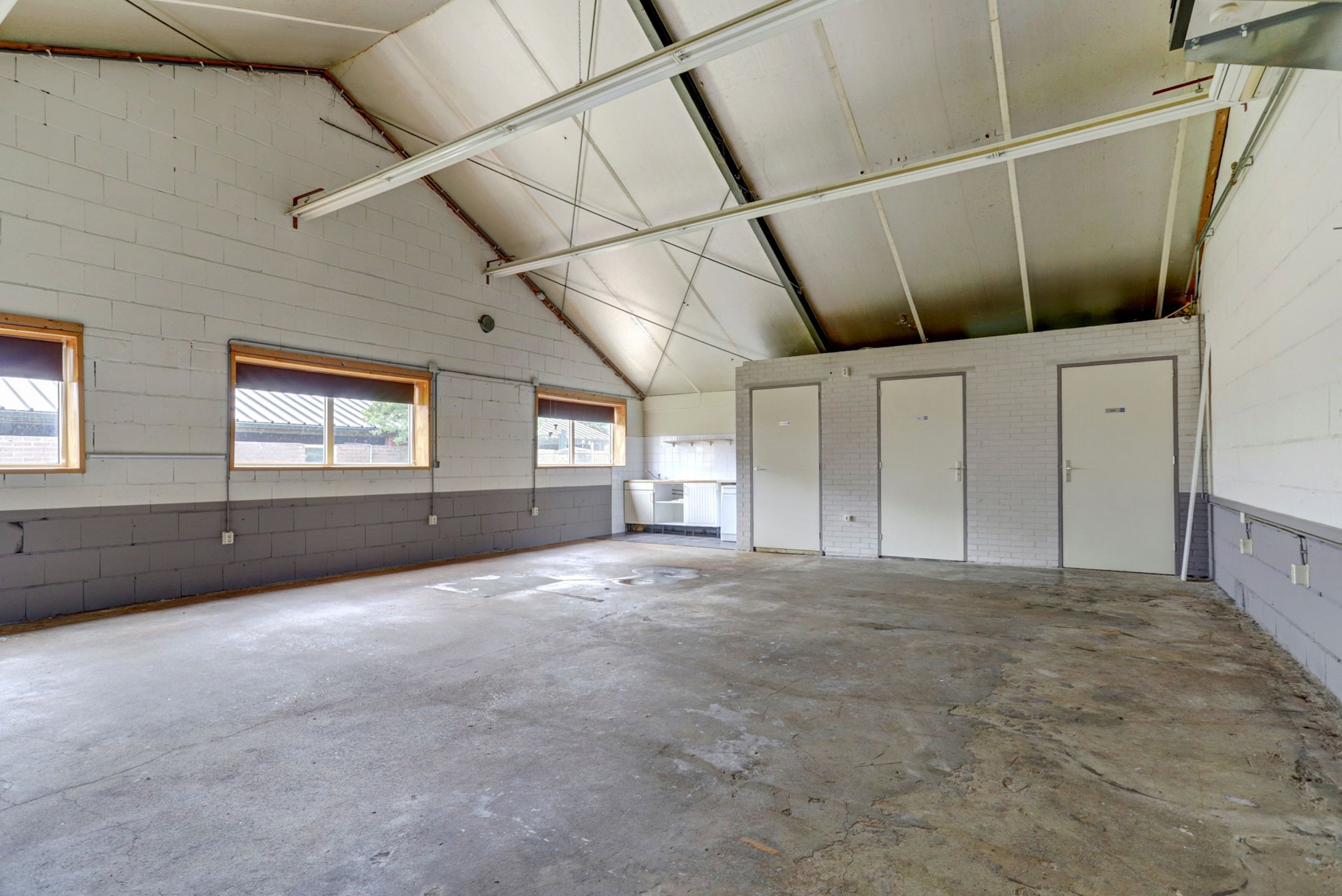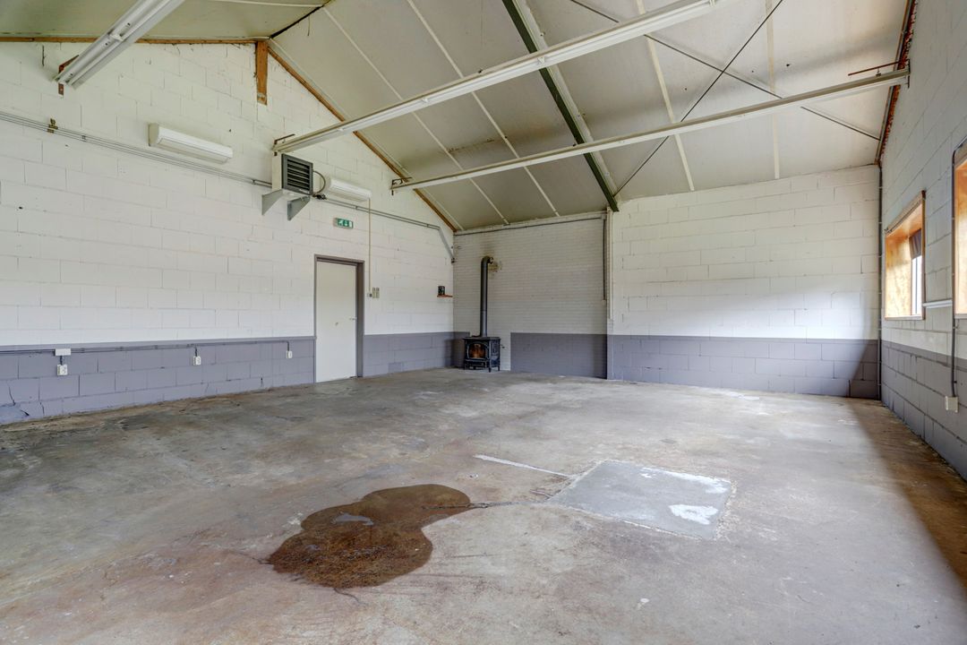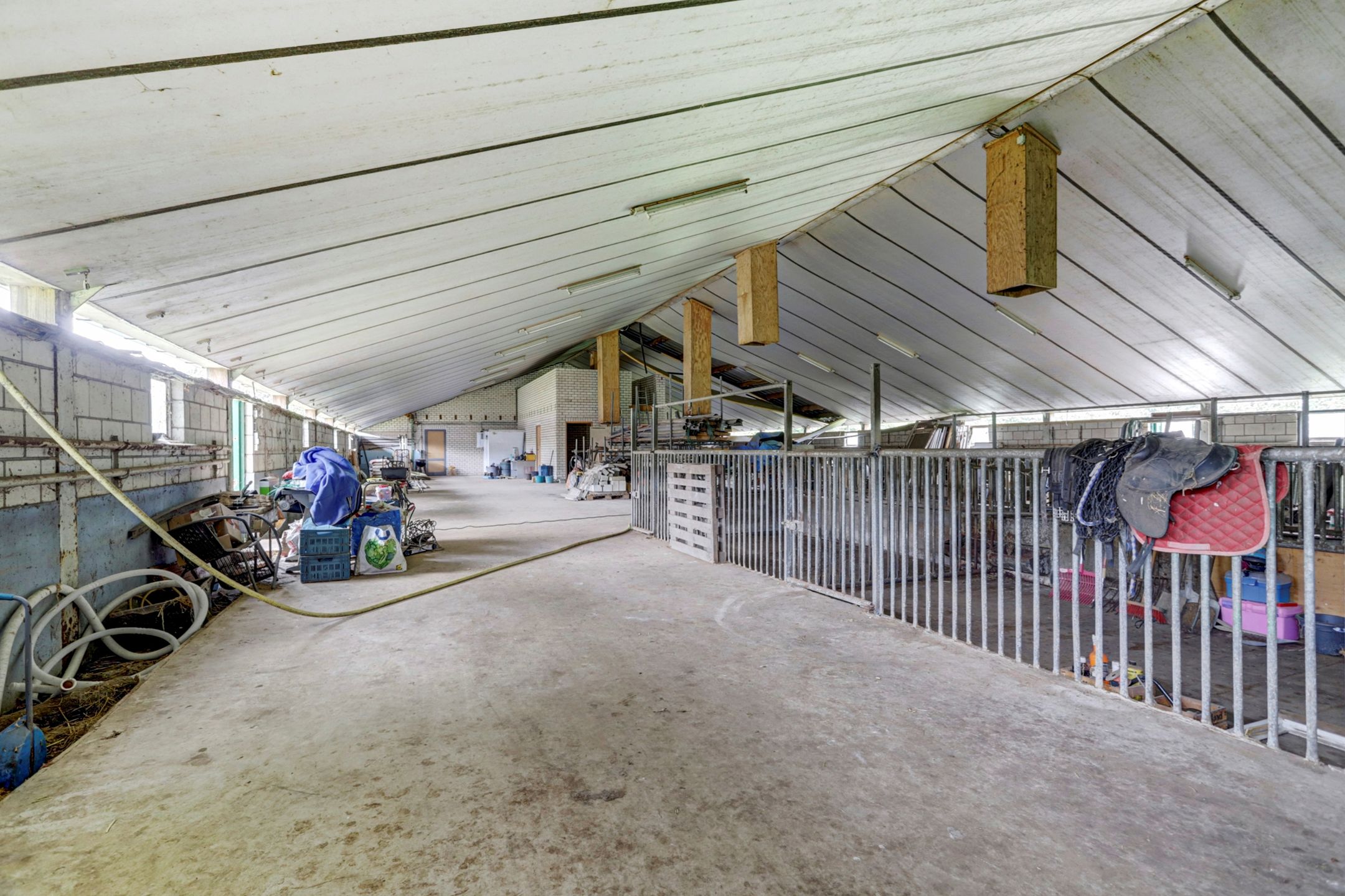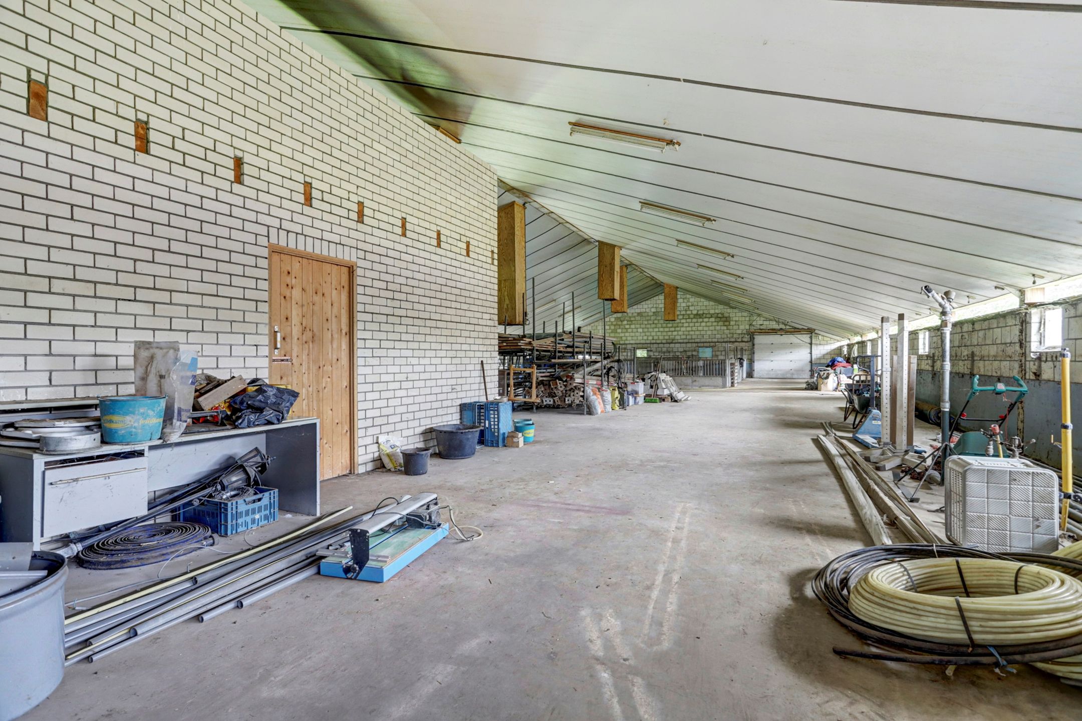 De voormalige varkensstal ligt een stuk achter de woning en een groot gedeelte wordt als opslag gebruikt. In dit gedeelte hebben ook jarenlang paarden gestaan waardoor er een zadelkamer aanwezig is en een werkplaats. In een hoek staat een enorme diepvriescel die wel nog even nagekeken moet worden om hem weer werkend te krijgen. Onder dit gedeelte van de stal ligt een gierkelder. Naast de normale stroomvoorziening is er ook krachtstroom aanwezig. De waterleiding die van de stal naar het bijgebouw loopt is bovengronds en van elektrische draad voorzien om bevriezing te voorkomen.