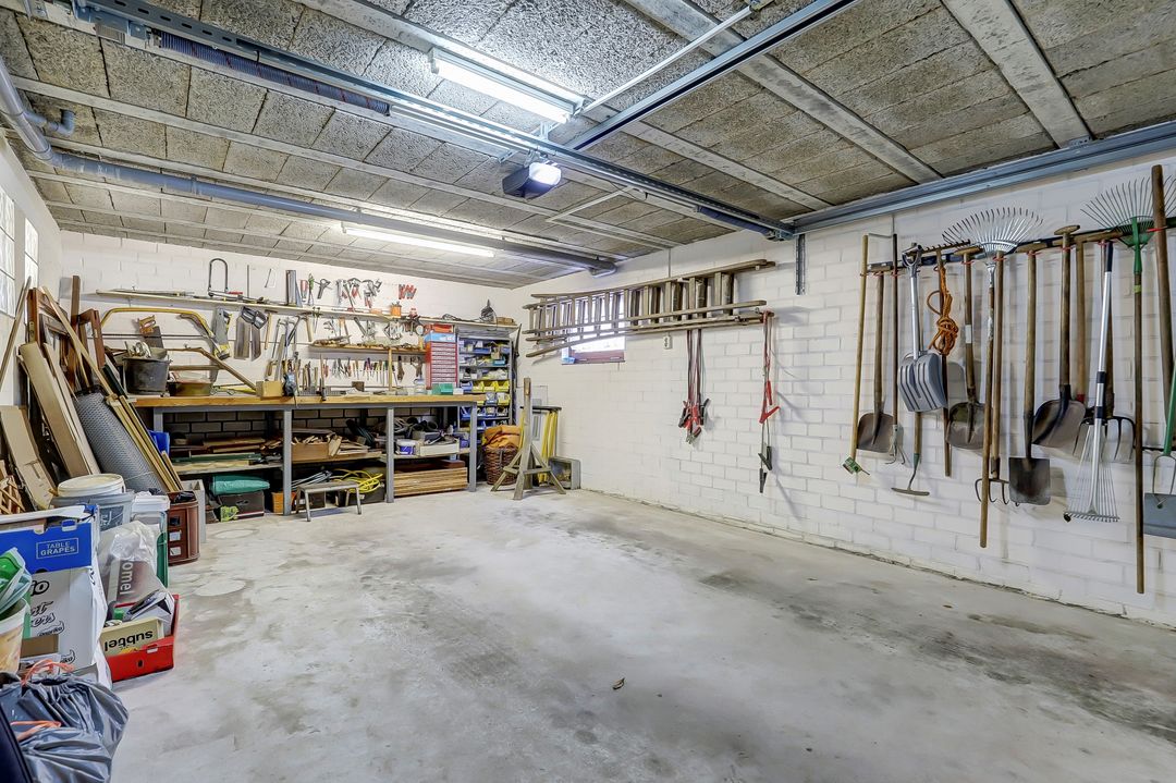 Via de berging heb je directe toegang tot de garage. Deze is voorzien van een elektrische sectionaalpoort, waardoor een auto eenvoudig naar binnen kan. De garage biedt niet alleen parkeergelegenheid, maar beschikt ook over een werkplaats en een wateraansluiting, wat het een ideale ruimte maakt voor klussen en onderhoudswerkzaamheden. Dit souterrain is een functionele en goed ingedeelde uitbreiding van de woning, perfect voor wie op zoek is naar extra ruimte en veelzijdigheid.