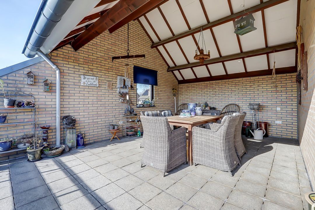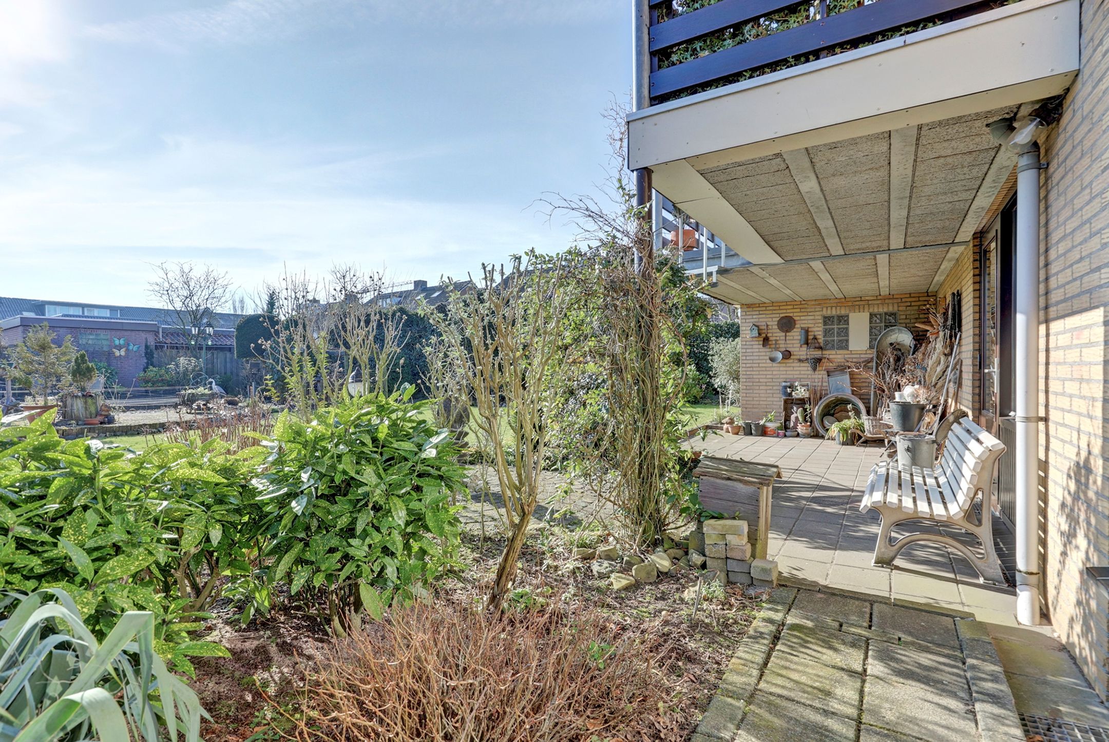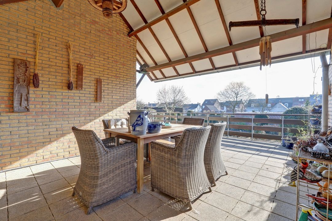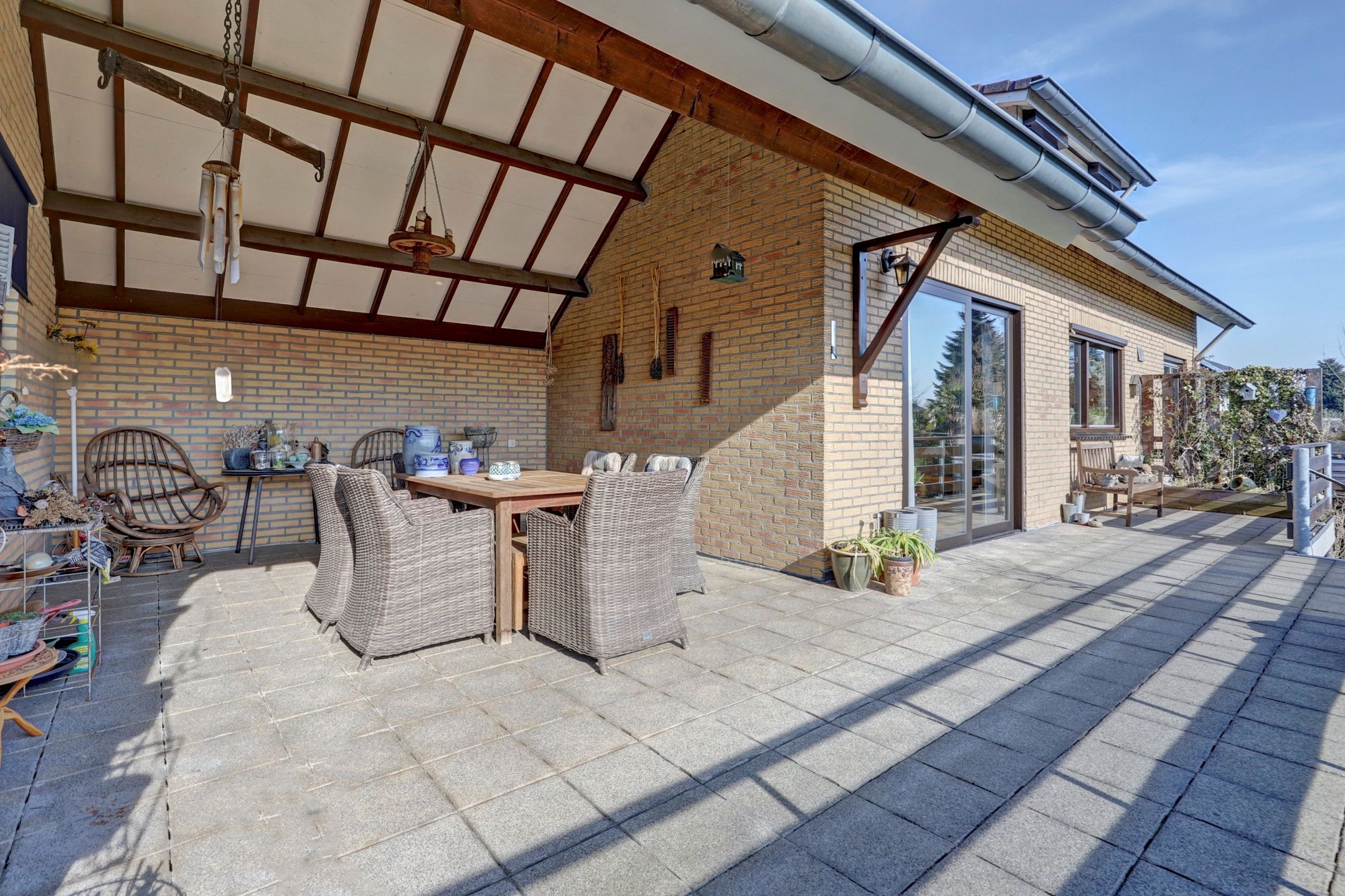 Het verhoogde terras aan de achterkant van de woning is direct vanuit de woonkamer te betreden. Je hebt vanaf hier een fantastisch uitzicht over de lager gelegen tuin die middels een wenteltrap te bereiken is. Op het terras is voldoende ruimte voor een eettafel, loungeset en een barbecue waardoor je de mogelijkheid hebt om het buitenleven in alle seizoenen te ervaren. Of het nu zomer is en je geniet van een gezellige barbecue, of de wintermaanden wanneer je knus op het terras zit met een warme deken, het is een plek die altijd uitnodigt om buiten te zijn.