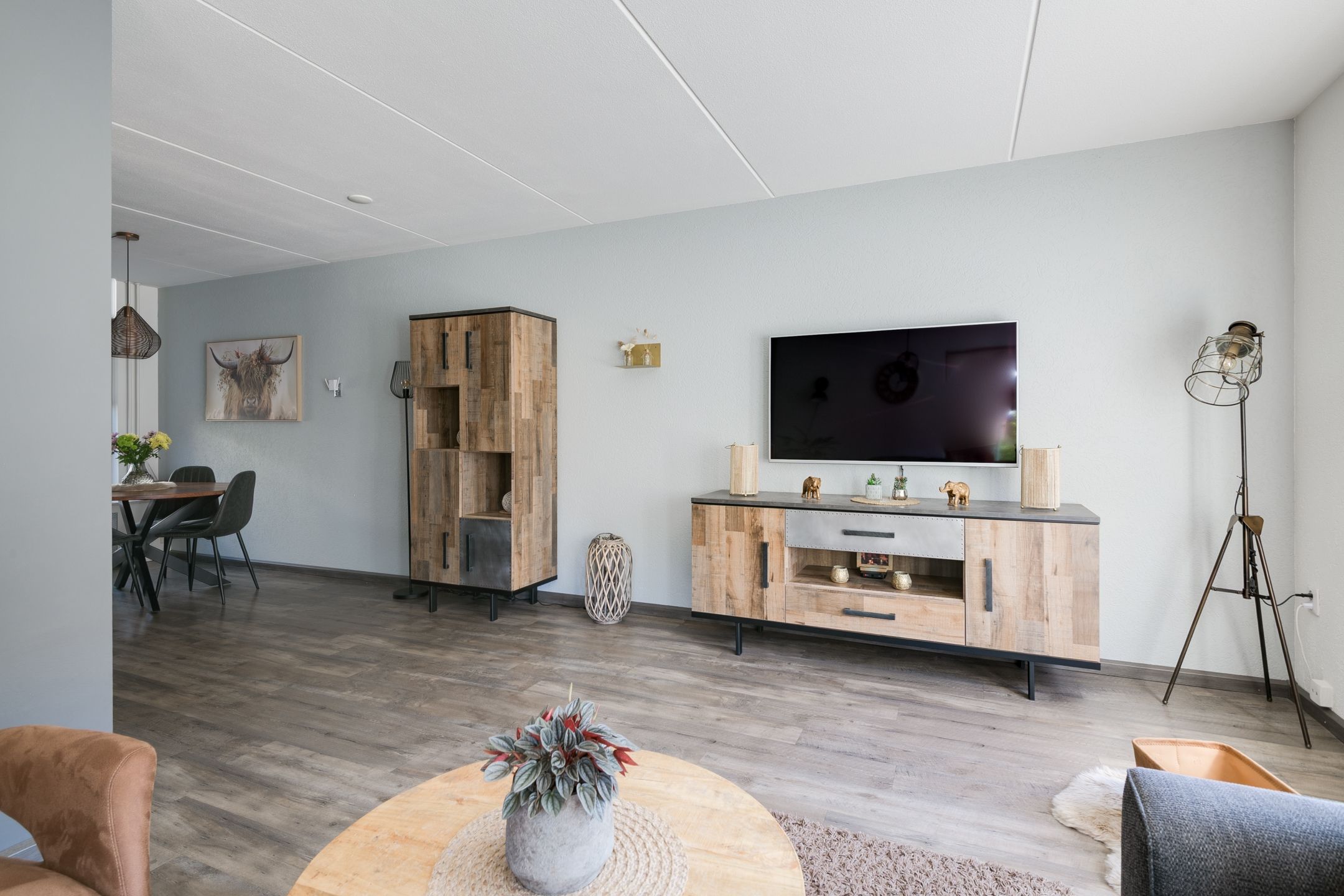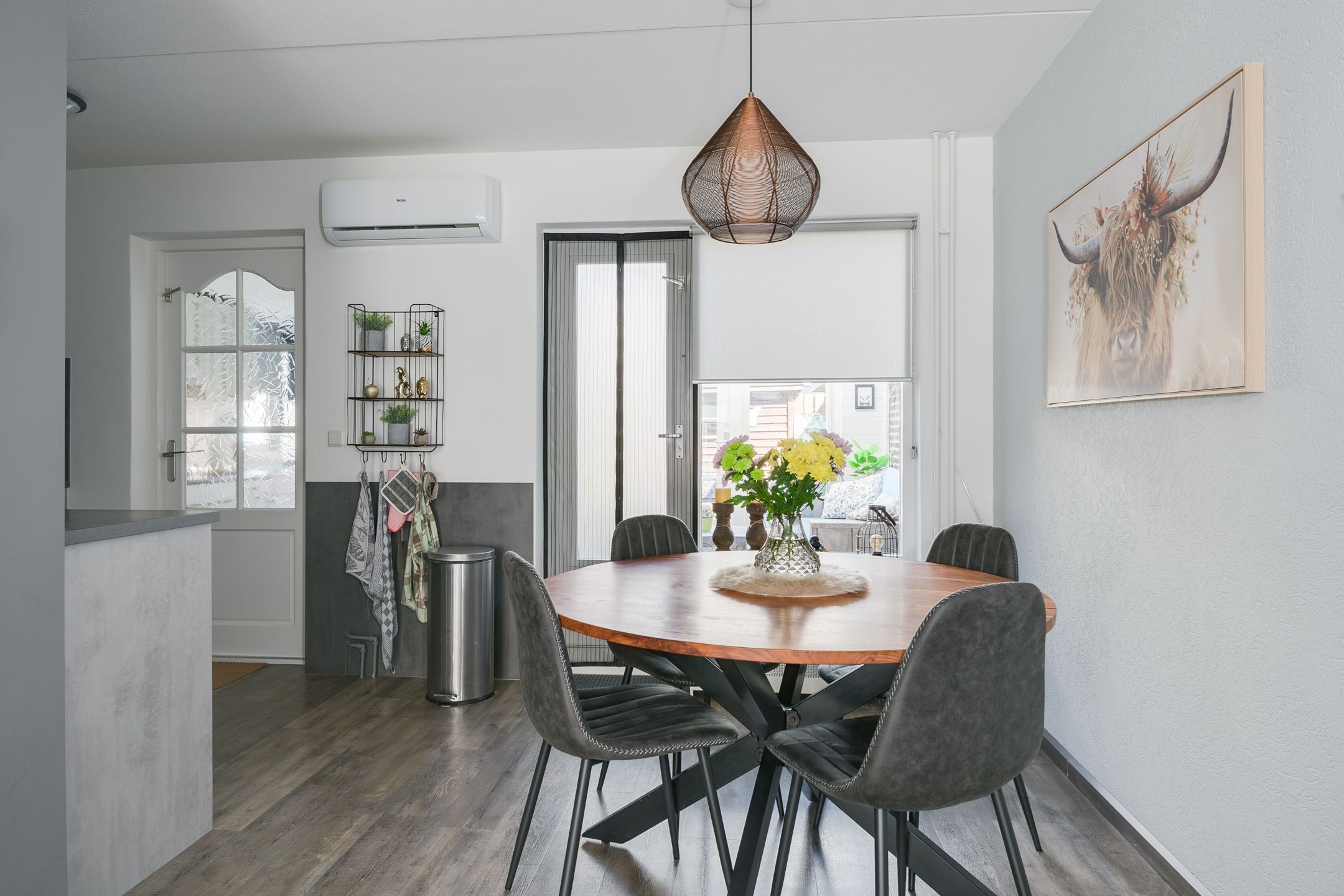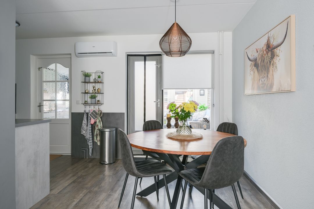De ruime en lichte woonkamer vormt de centrale leefruimte van de woning. Dankzij de grote raampartijen geniet u van optimale lichtinval. De strakke afwerking met neutrale wandkleuren vormt een tijdloze basis voor uw eigen inrichting. Door de open verbinding met de keuken ontstaat een prettige leefruimte waar koken en ontspannen natuurlijk samenkomen. Een bijzonder prettig detail is de in 2022 geplaatste airconditioning die zowel kan koelen als verwarmen. Dit zorgt het hele jaar door voor optimaal wooncomfort in zowel de woonkamer als de keuken.