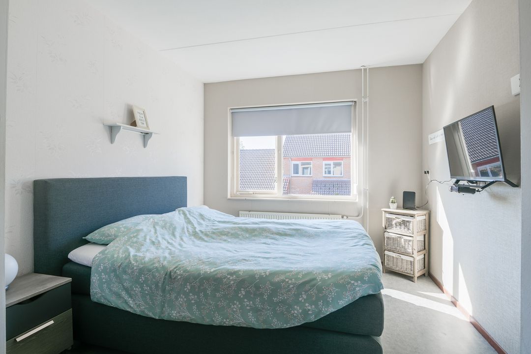 De tweede slaapkamer is gelegen aan de achterzijde van de woning en biedt een mooie lichtinval door het grote raam. Deze veelzijdige ruimte leent zich uitstekend voor verschillende doeleinden: denk aan een kinderkamer, tienerkamer of een rustige werkkamer. De neutrale afwerking maakt het eenvoudig om de kamer helemaal naar eigen wens in te richten.