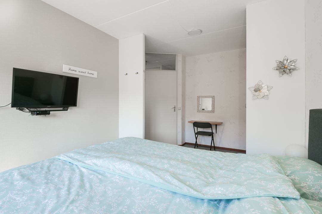 De hoofdslaapkamer bevindt zich aan de voorzijde van de woning en biedt voldoende ruimte voor een groot tweepersoonsbed. Het grote raam zorgt voor prettige lichtinval, terwijl de praktische inbouwkast voor veel bergruimte zorgt. De neutrale afwerking laat alle ruimte voor uw persoonlijke touch.