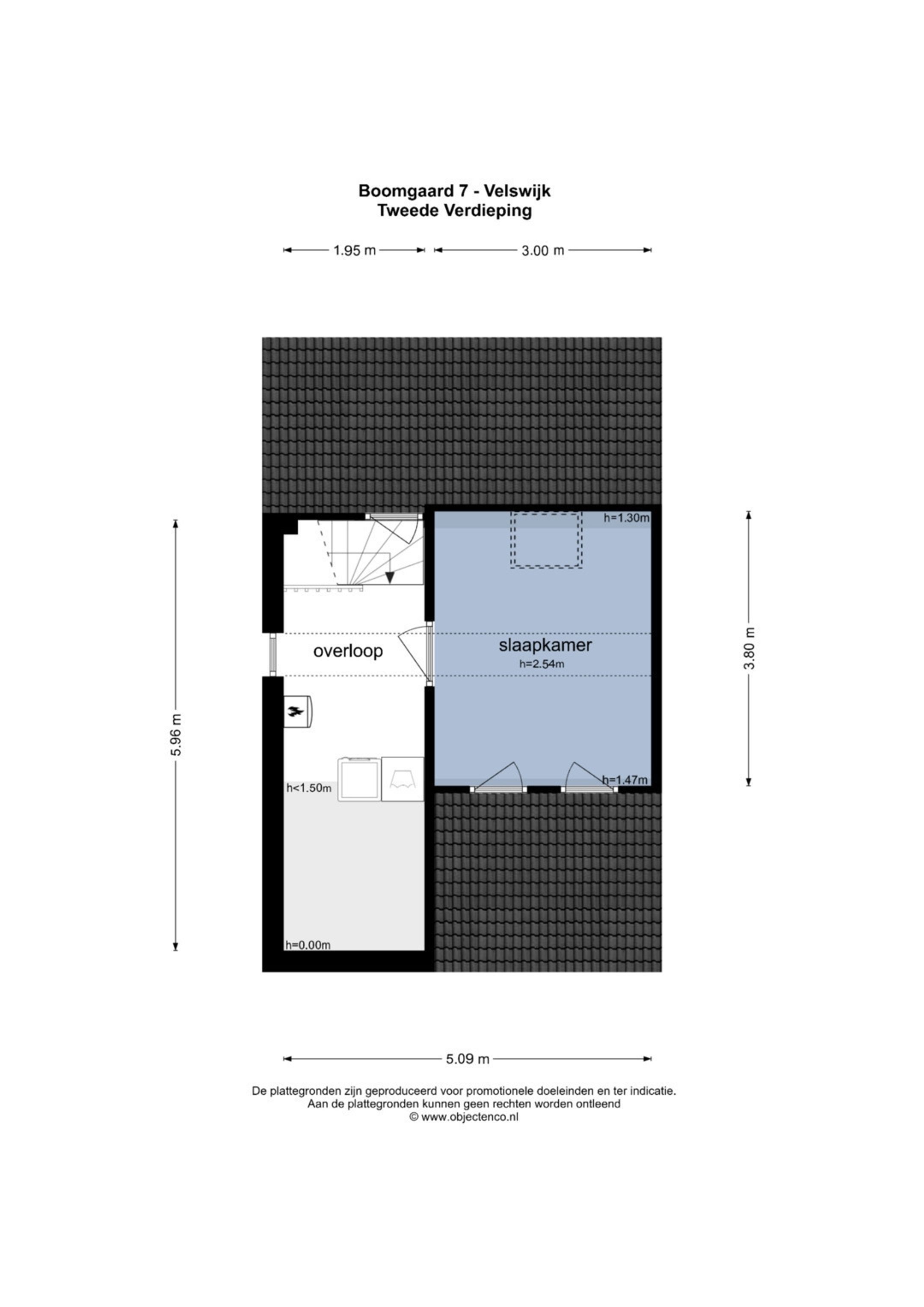 Via de vaste trap bereikt u de tweede verdieping waar zich de vierde slaapkamer bevindt. Op de overloop bevinden zich ook de witgoedaansluiting en de cv-installatie.