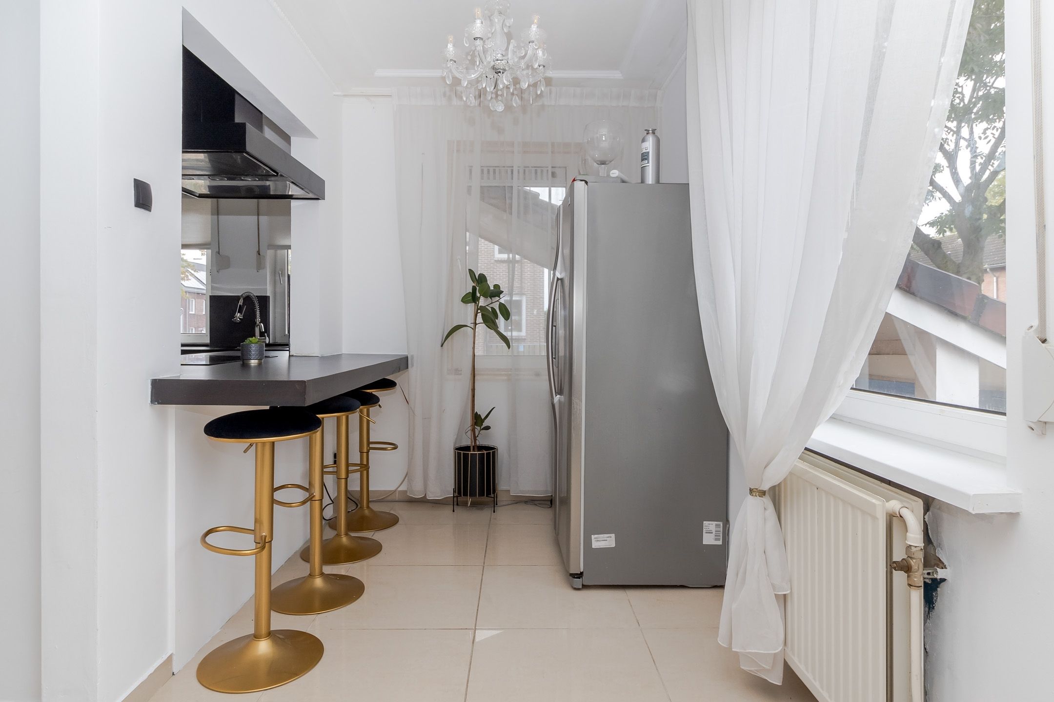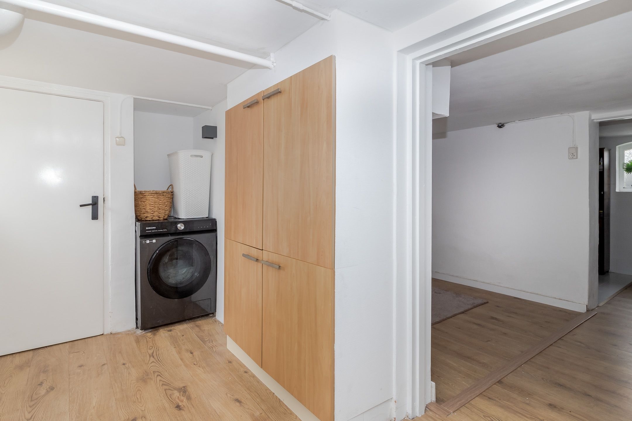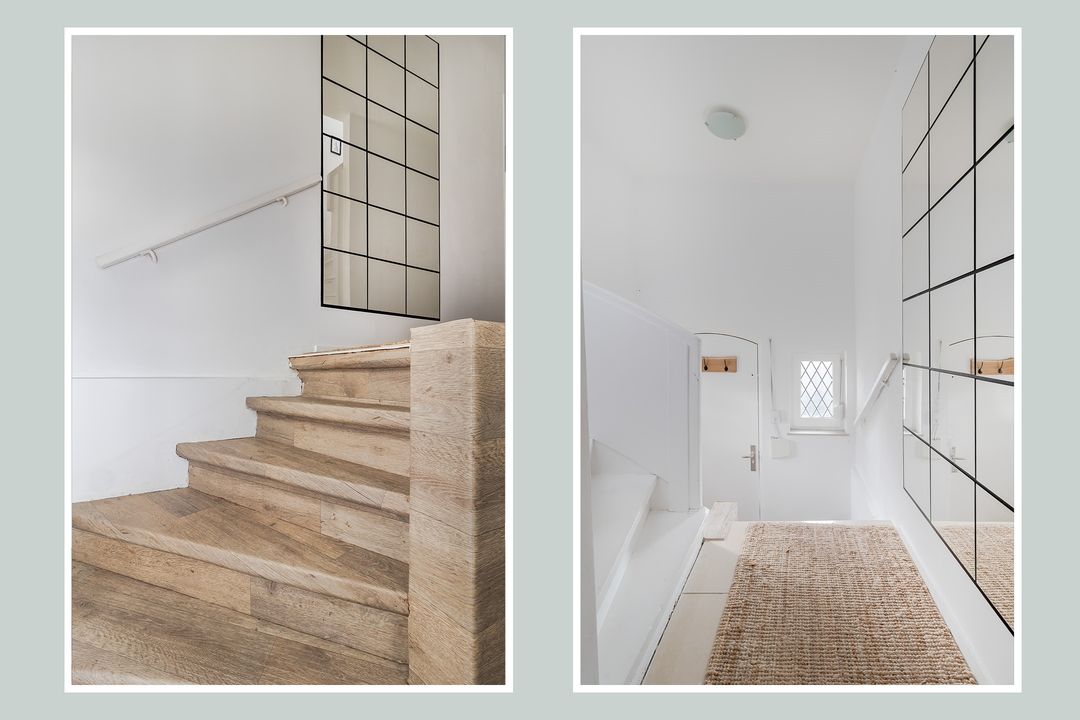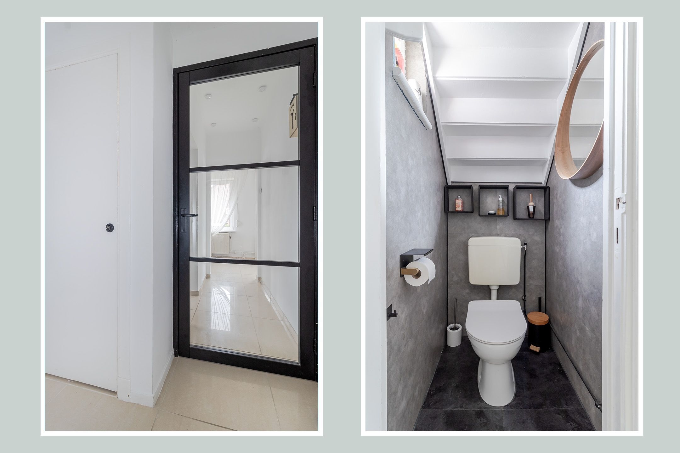 Een paar trapjes op en je bereikt de voordeur aan de voorkant van de woning. Van hieruit kom je in de hal met toegang tot het toilet, de meterkast en de keuken. Verderop heb je een aparte trap naar de zijingang van de woning, de trap naar de eerste verdieping én naar het souterrain.