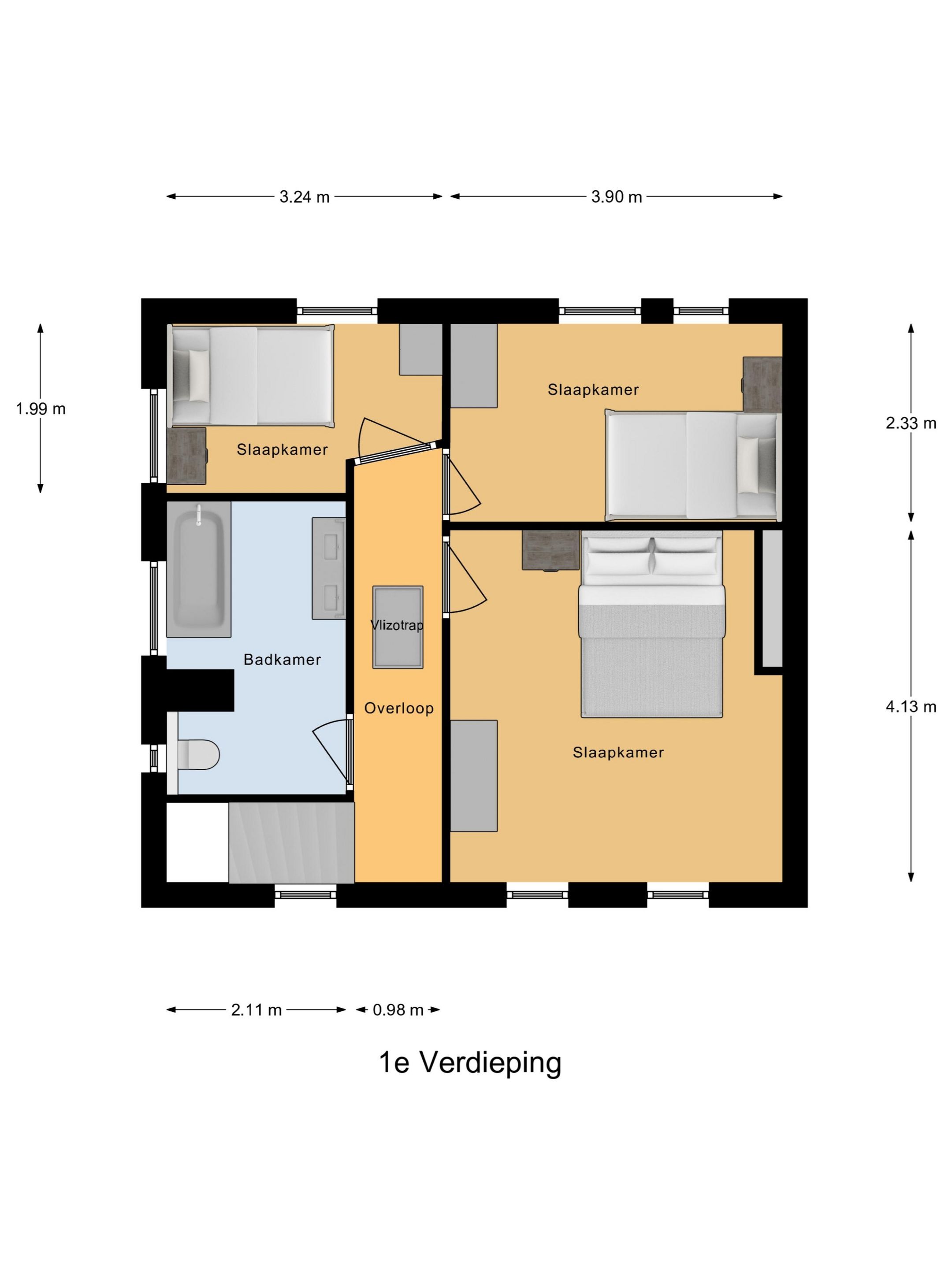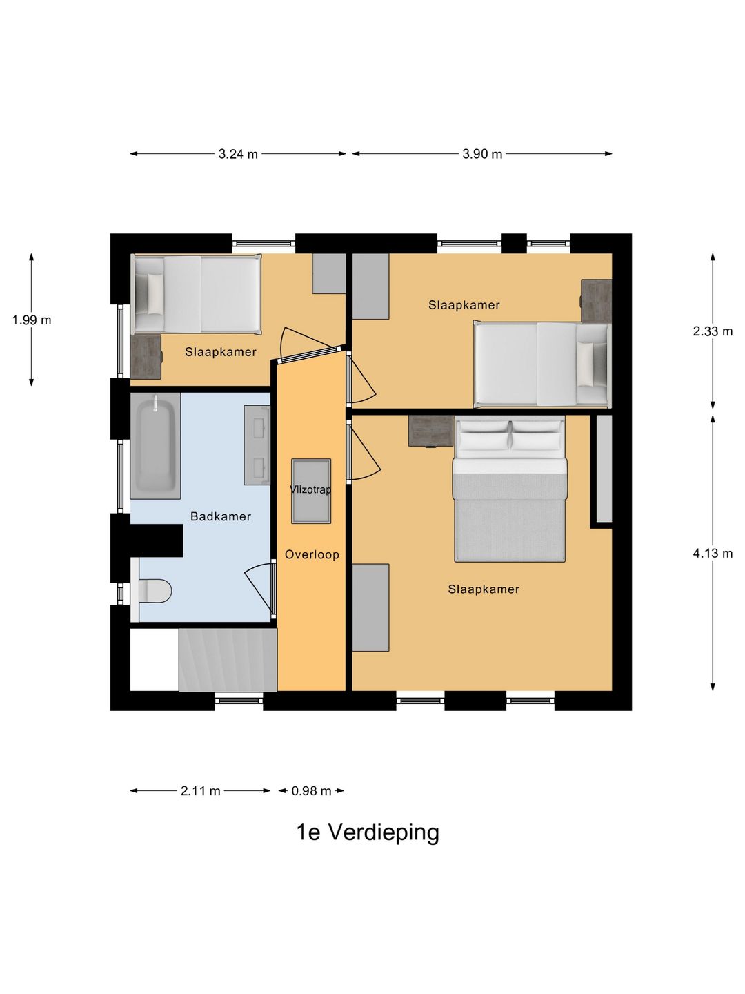 Op de eerste verdieping liggen 3 slaapkamers en de mooie badkamer (2021).