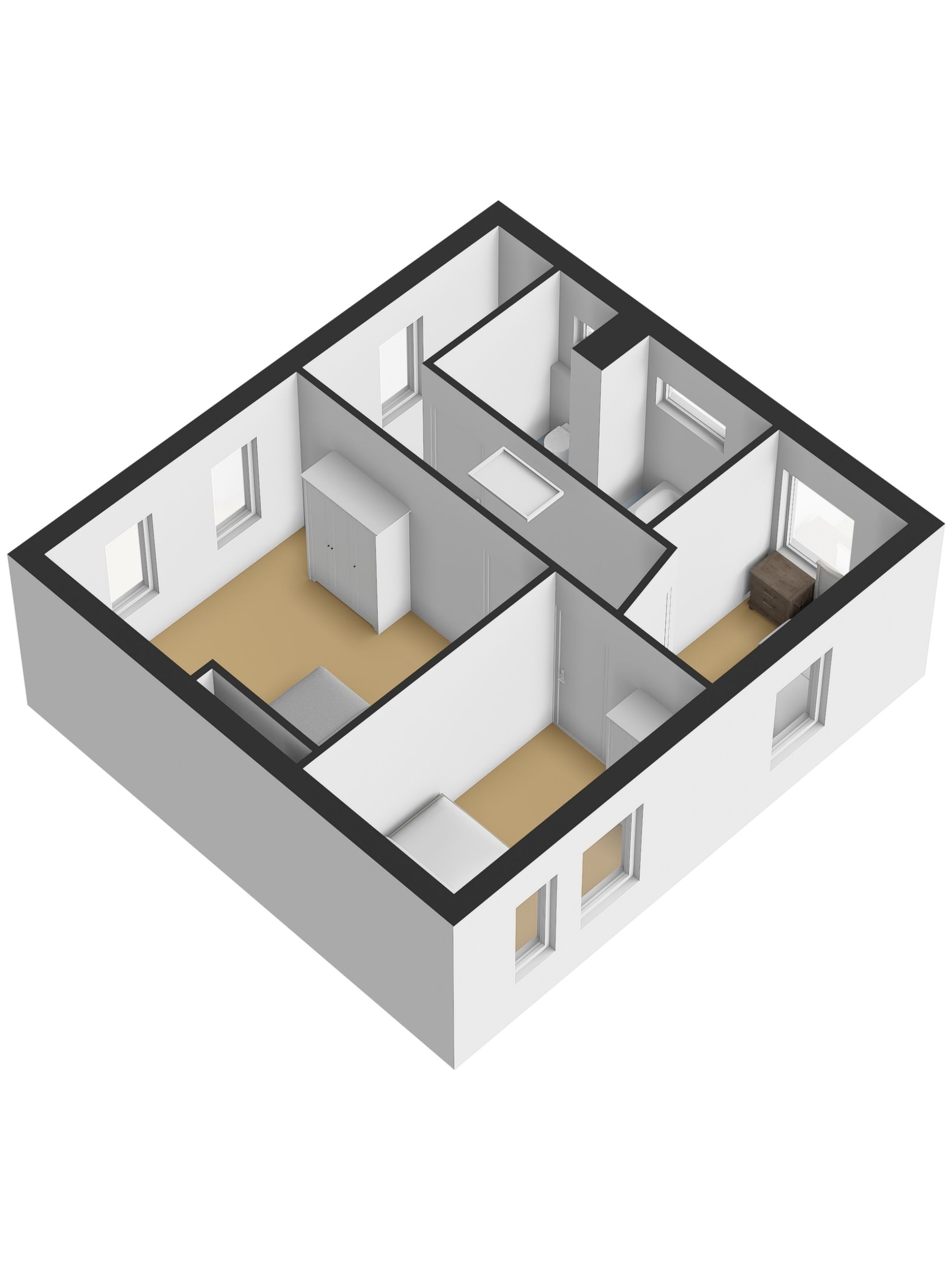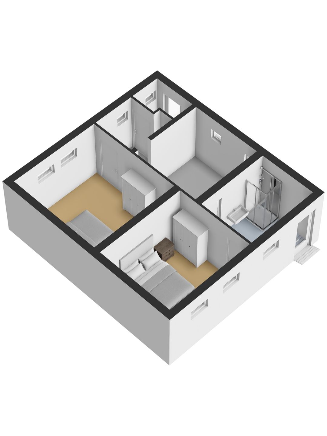 Ook aan de achterkant ligt de derde slaapkamer. Deze is iets kleiner dan de tweede, maar is ruim genoeg voor een kinderslaapkamer of logeerkamer.