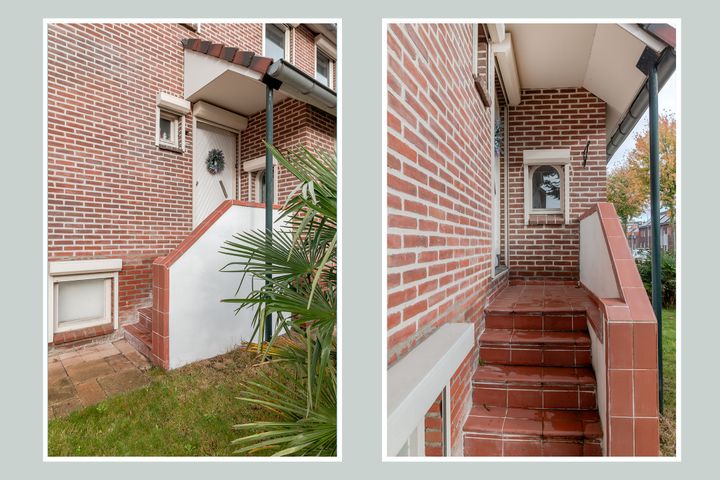 Het huis aan de Bredeweg 350 in het Roermondse Veld is een ‘trapjeswoning’. Je bereikt de voor- en achterdeur via een trap.
