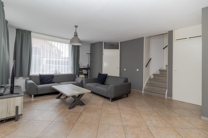 De woonkamer met tegelvloer biedt genoeg ruimte voor gezellige onderonsjes met het gezin, familie of vrienden. En wat heel fijn is: je krijgt nooit meer koude voeten door de vloerverwarming.