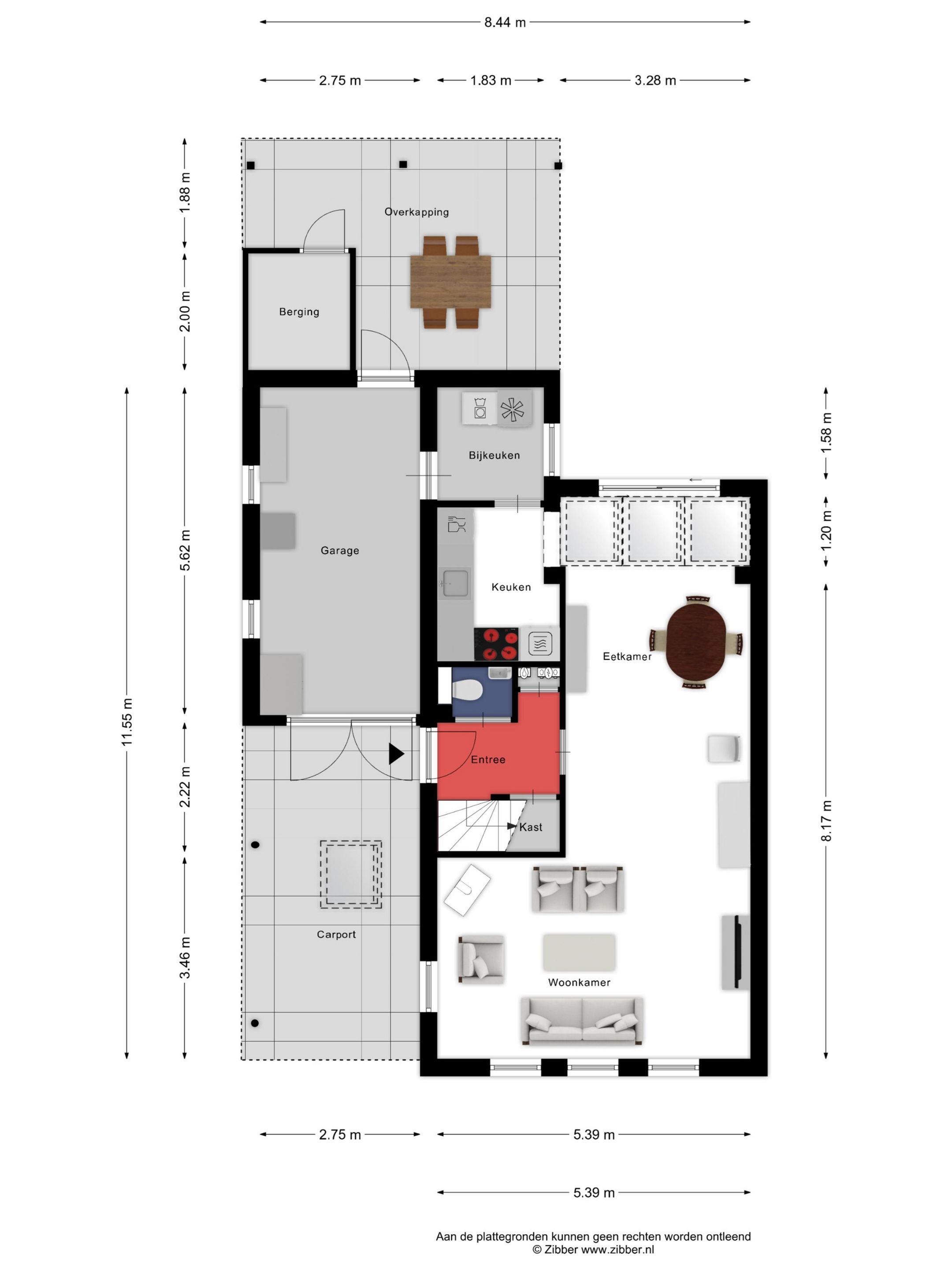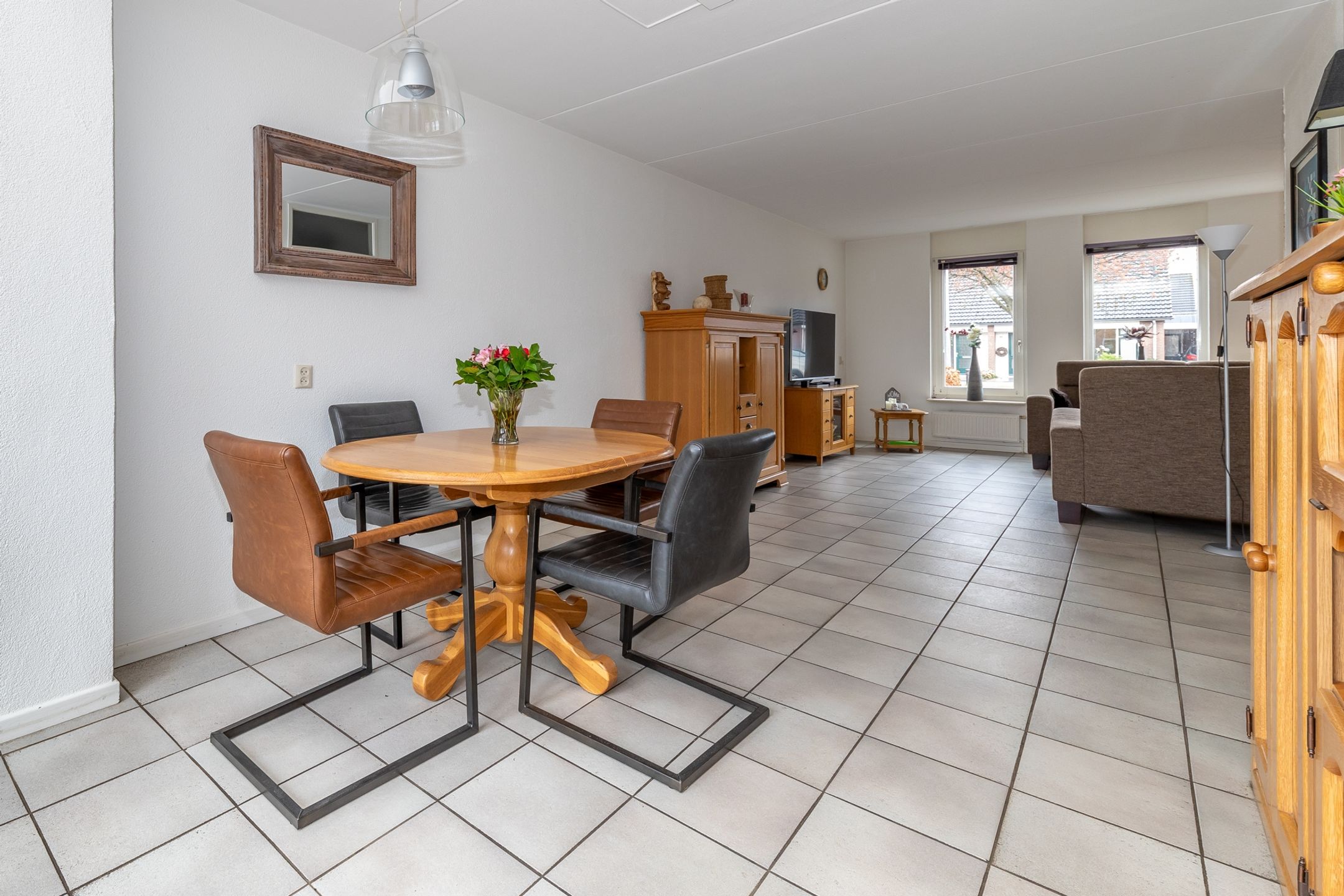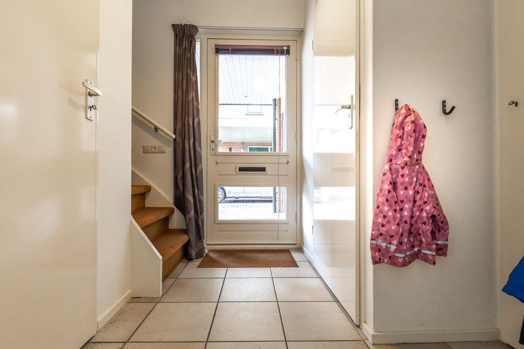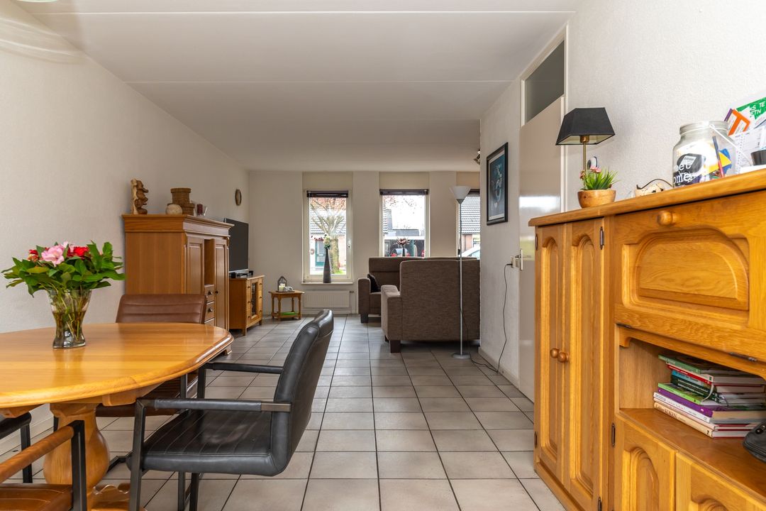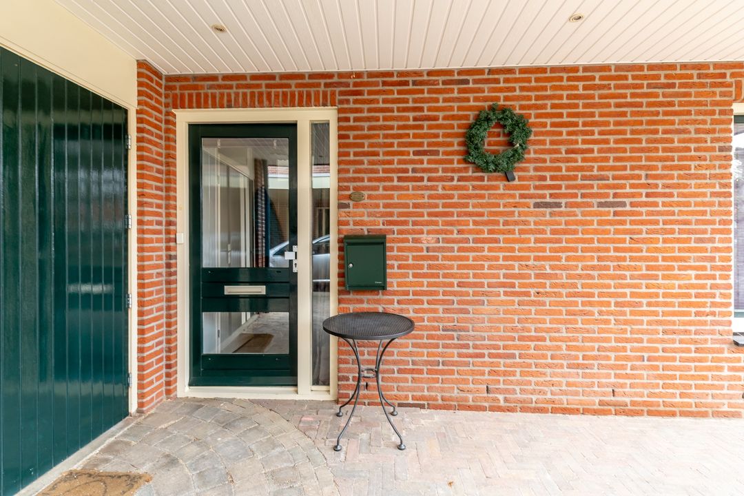 Op de oprit is ruimte voor twee auto’s, waaronder één onder de carport. Via de overdekte entree komt u in de hal, die toegang biedt tot de woonkamer en het toilet. De plavuizen vloer die u hier aantreft, loopt door in de woonkamer en keuken, wat zorgt voor een mooie eenheid op de begane grond.