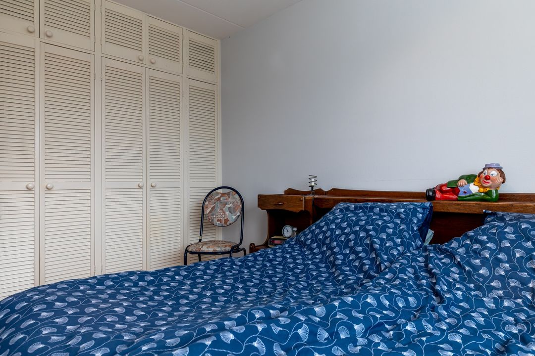De hoofdslaapkamer is ruim opgezet en voorzien van een grote inbouwkast die de hele wand beslaat. Deze kamer biedt meer dan voldoende ruimte voor een tweepersoonsbed en extra meubilair. De lichte wanden vormen een mooie basis die u naar eigen smaak kunt aankleden.