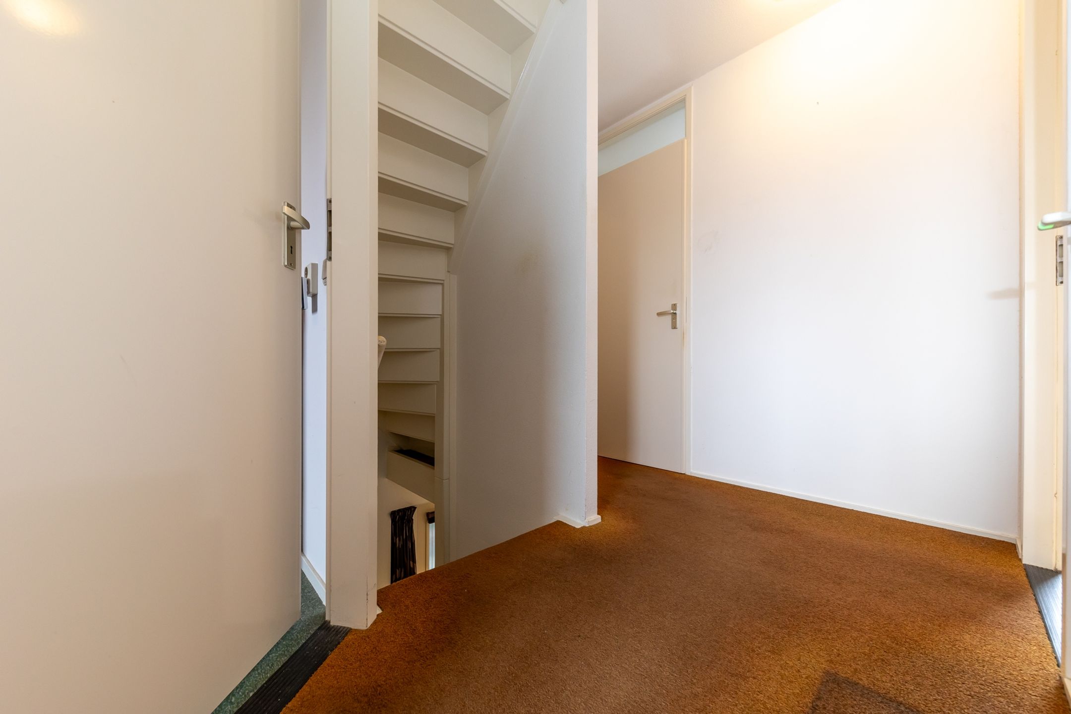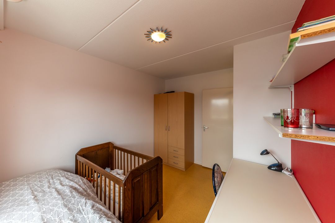 De tweede slaapkamer bevindt zich aan de achterzijde van de woning. Deze slaapkamer is uitstekend geschikt als kinderkamer of logeerkamer, maar ook als thuiswerkplek. Met een bureau onder of bij het raam creëert u bijvoorbeeld een fijne werkplek met natuurlijk daglicht.