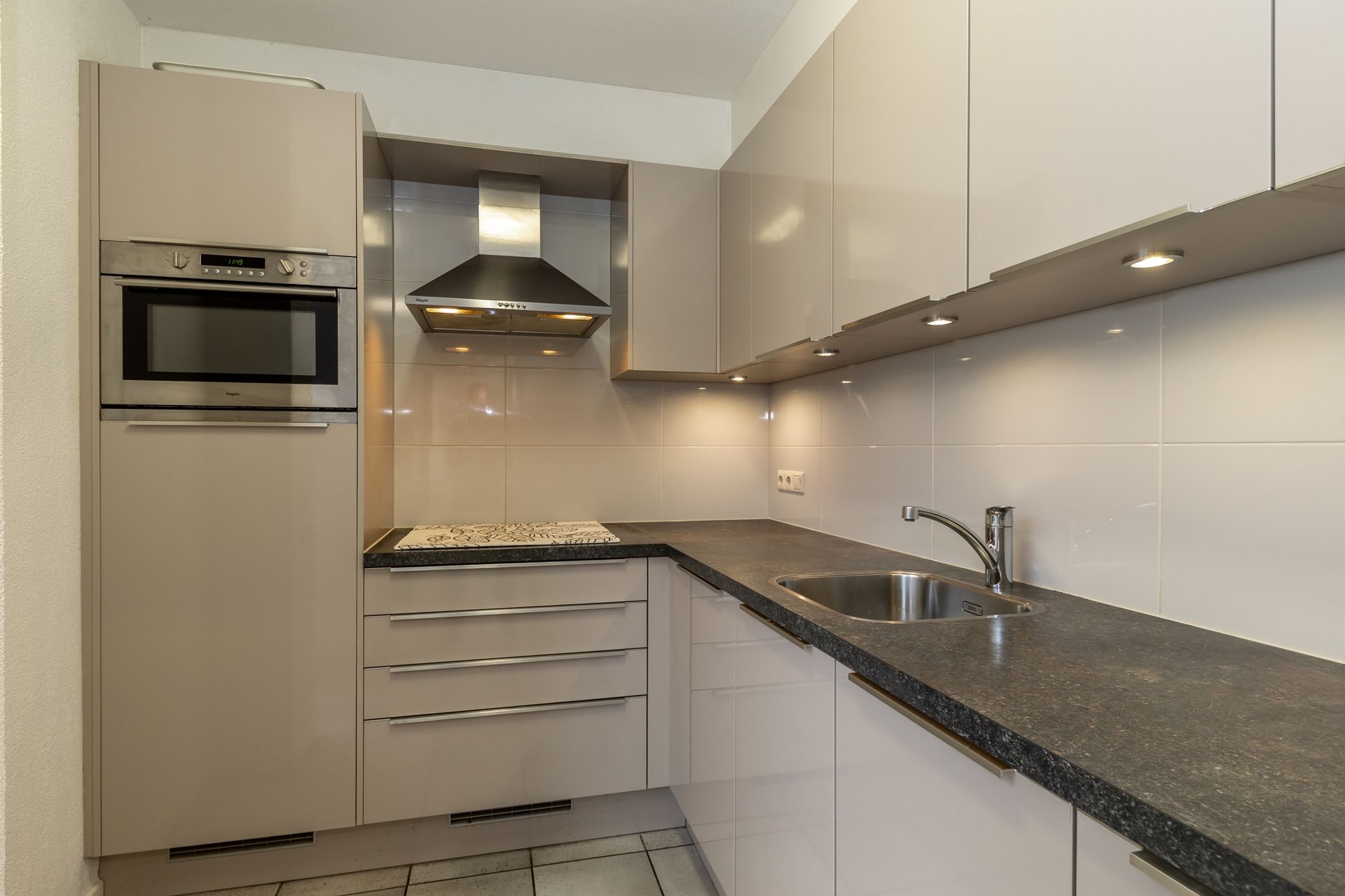 De keuken uit 2018 is een fijne plek om te kokkerellen. Het granieten werkblad geeft de keuken een verzorgde uitstraling en alle benodigde apparatuur is aanwezig: een inductiekookplaat, vaatwasser, koelkast, afzuigkap en combimagnetron. De praktische indeling zorgt ervoor dat alles binnen handbereik is.