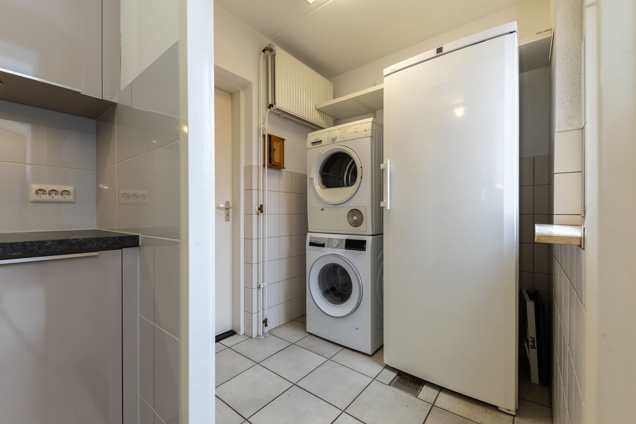 Aangrenzend aan de keuken vindt u de bijkeuken met wasmachineaansluiting – handig om de was direct uit het zicht te hebben. Via deze praktische ruimte heeft u toegang tot zowel de garage als de tuin. Een doordachte indeling die het dagelijks leven nét wat makkelijker maakt.