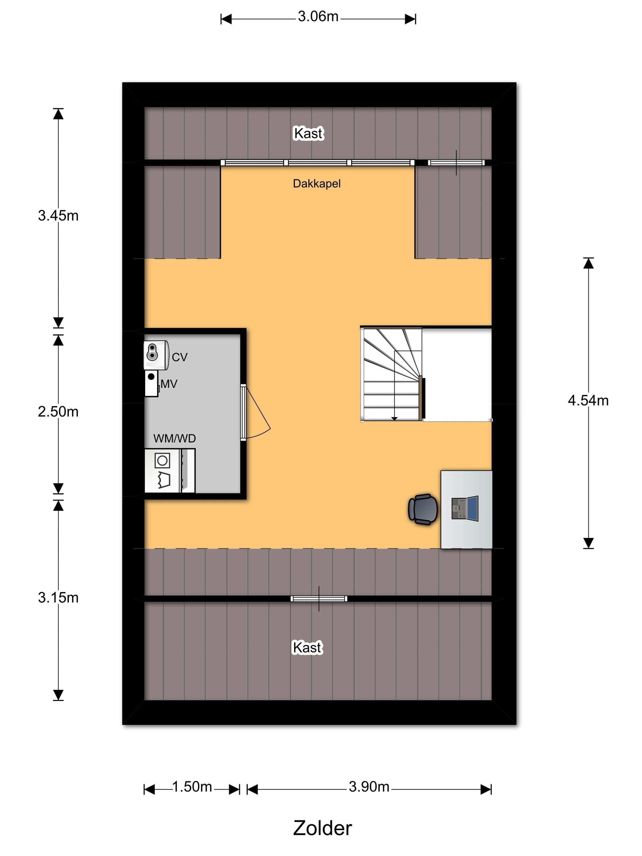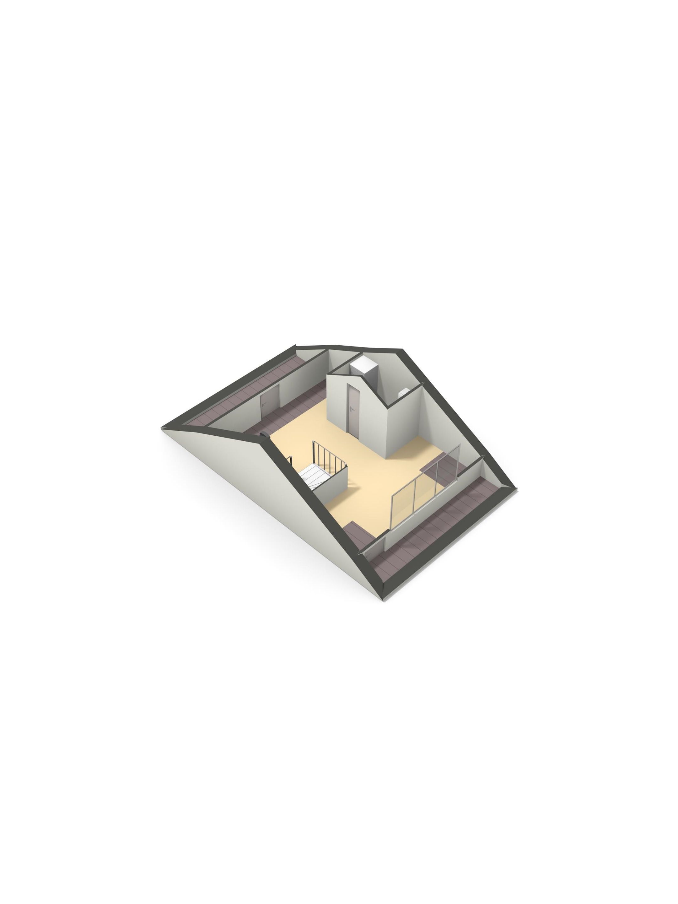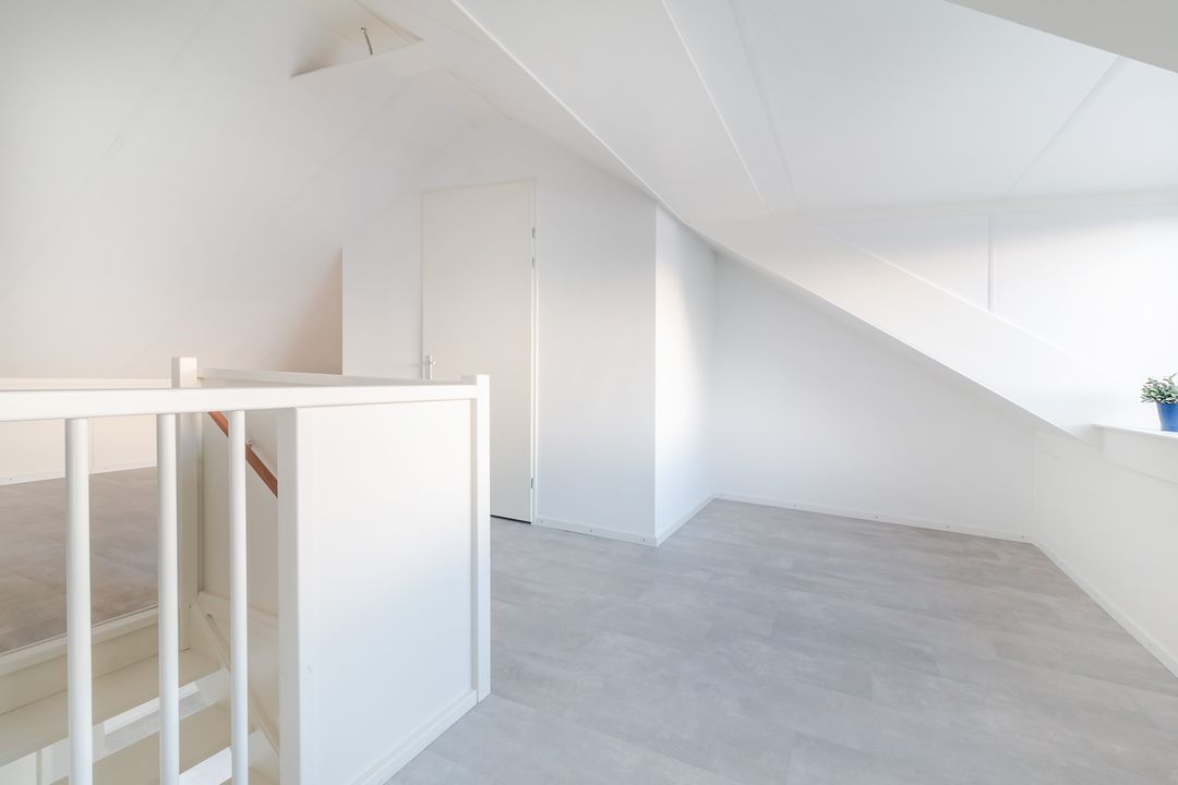 Je bereikt de tweede verdieping via een vaste trap. Hier vind je een grote dakkapel die niet alleen zorgt voor voldoende licht maar ook meer ruimte waardoor de zolder zeer geschikt is als werkplek, hobbyruimte of vierde slaapkamer.