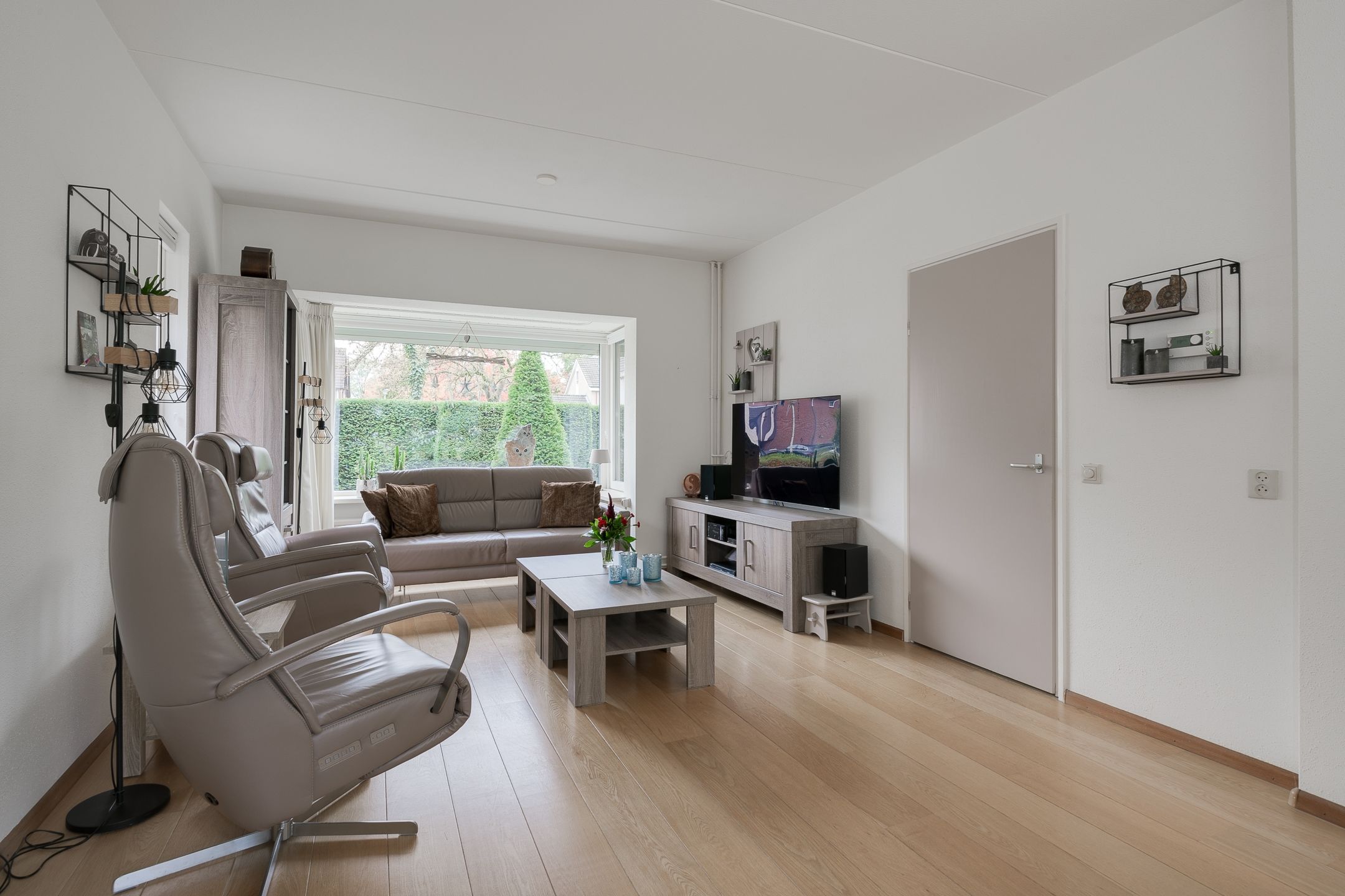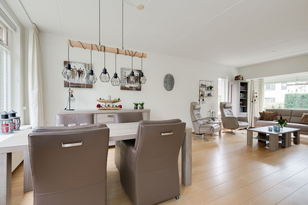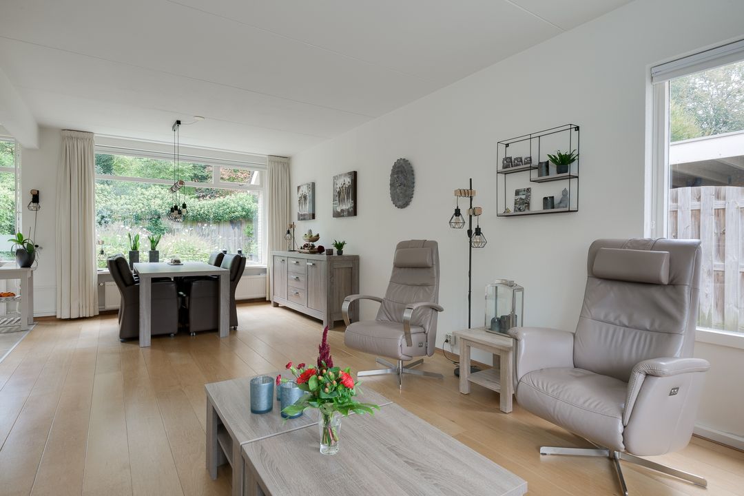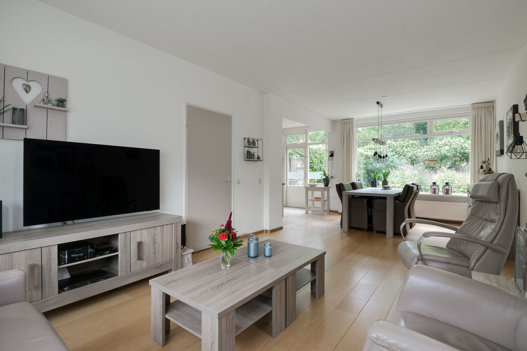 De lichte woonkamer vormt het hart van de woning. Door de grote raampartijen geniet u hier van optimale lichtinval en een fraai uitzicht op de tuin. De strakke parketvloer en witte wanden creëren een tijdloze basis die u naar eigen smaak kunt aankleden. De ruimte biedt volop mogelijkheden voor een gezellige zithoek en een royale eettafel.