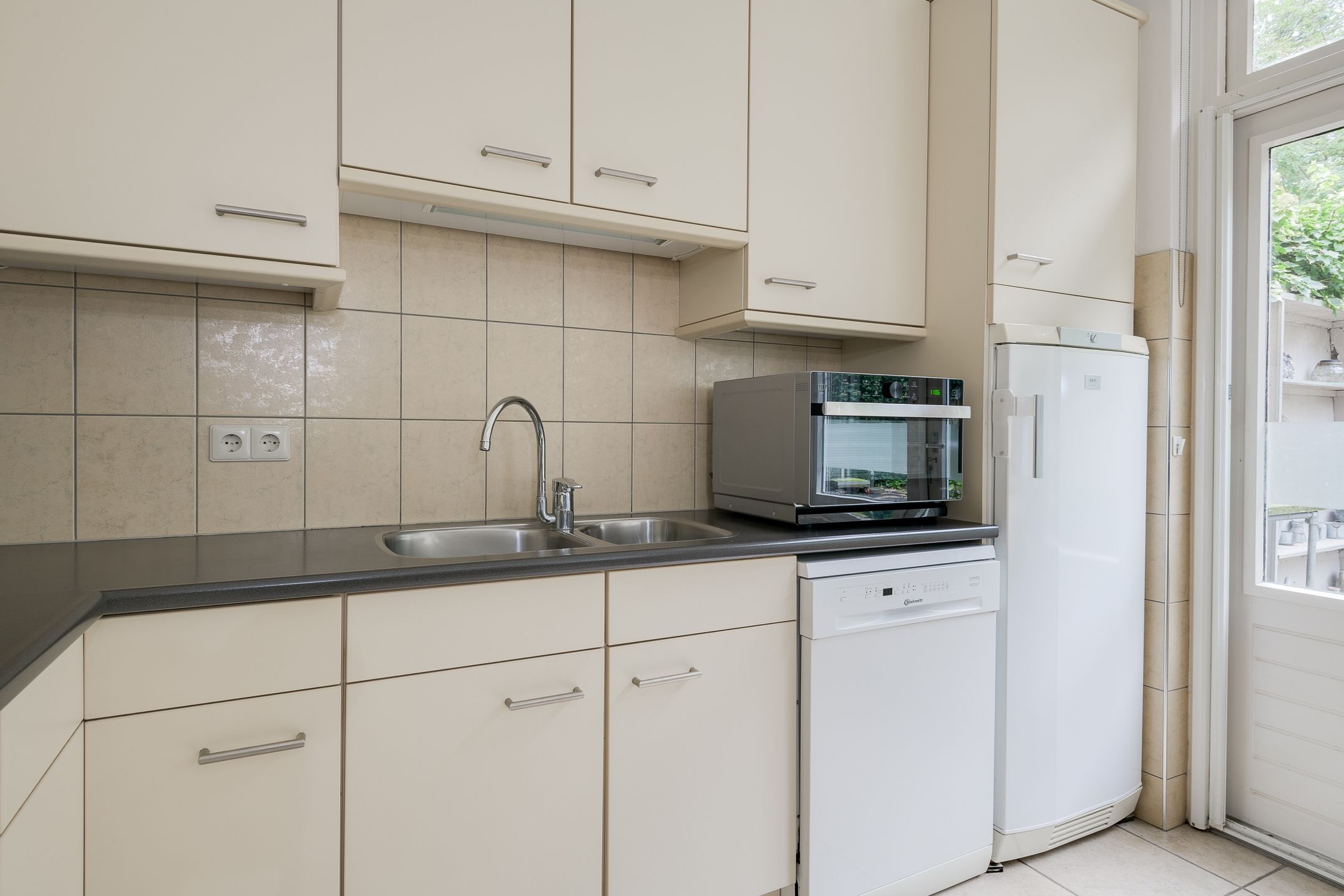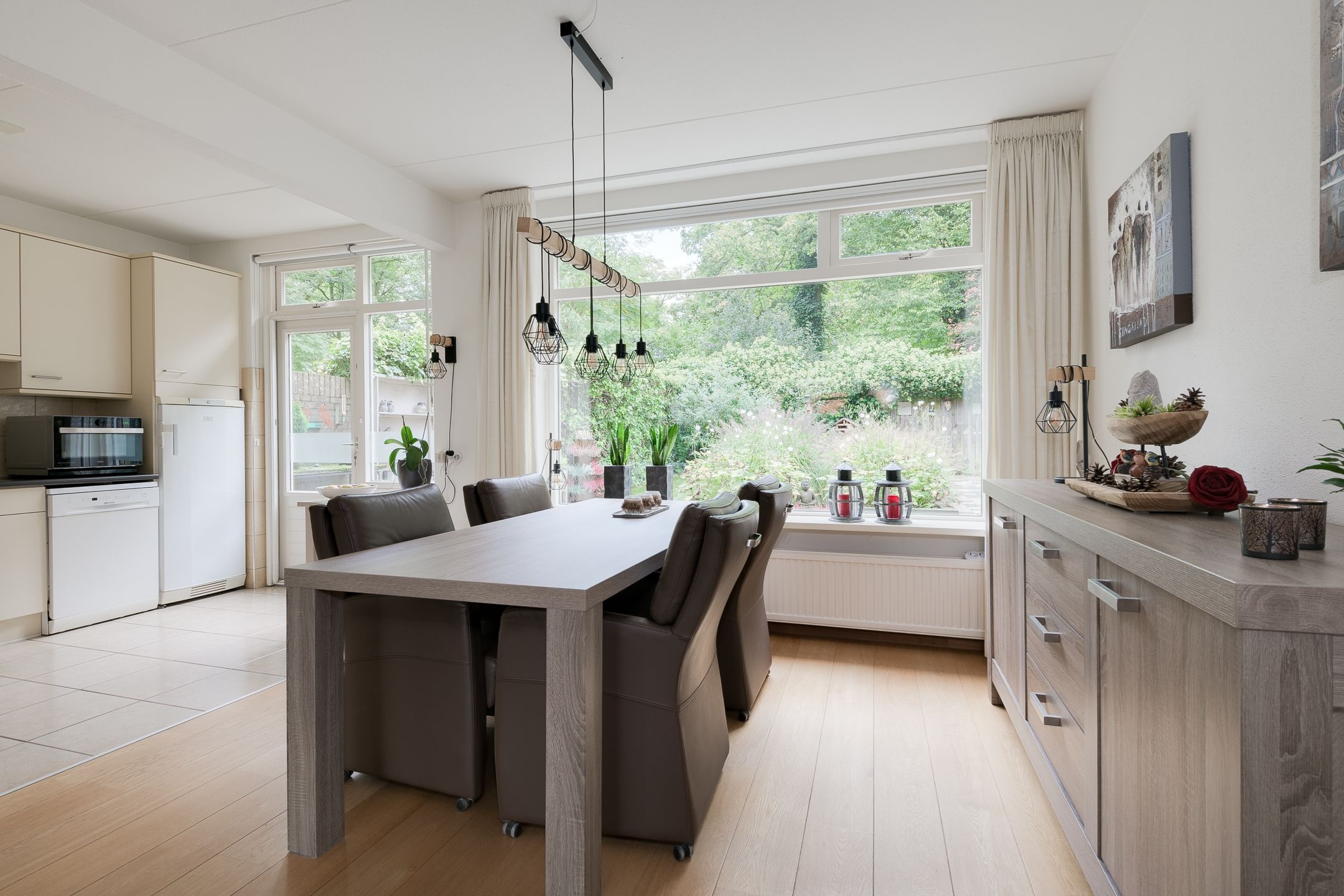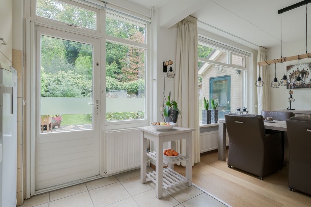 De open keuken is voorzien van alle moderne gemakken, zoals een inductiekookplaat, vaatwasser en koelkast. Via de achterdeur heeft u direct toegang tot de tuin – ideaal voor een kopje koffie in de zon of een gezellige barbecue op zomeravonden. De lichte tegelvloer is niet alleen praktisch maar geeft de keuken ook een frisse uitstraling.