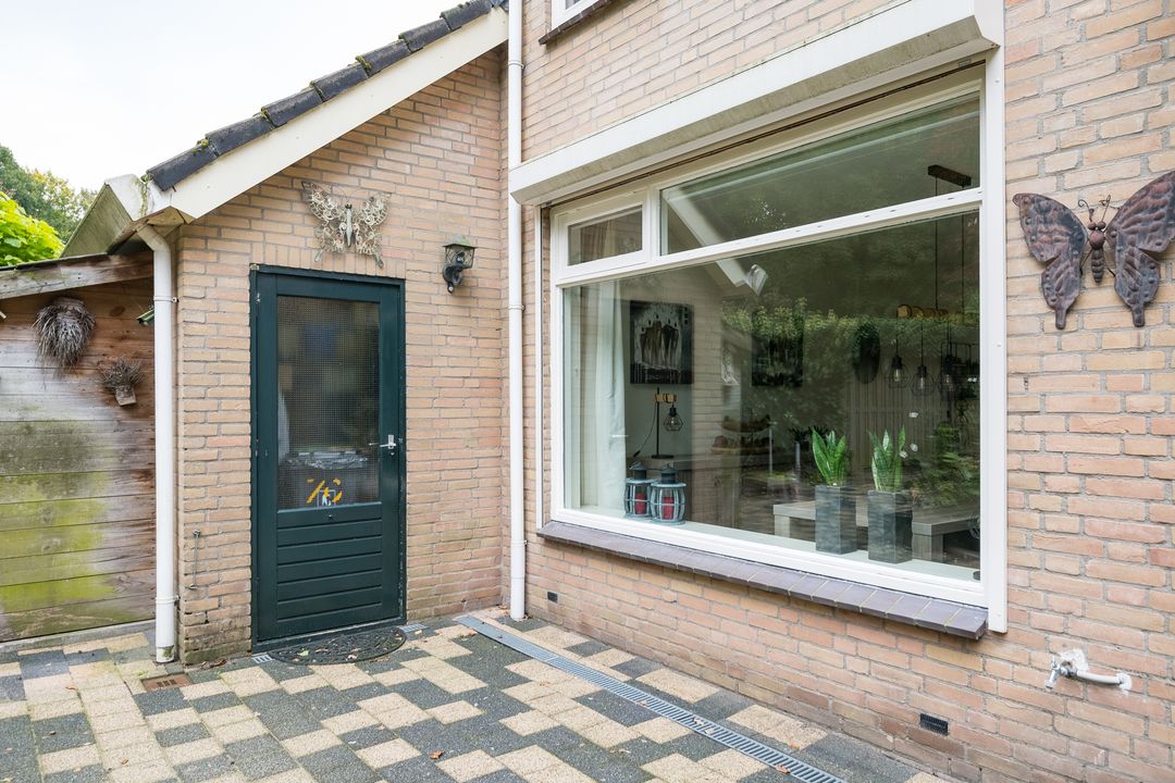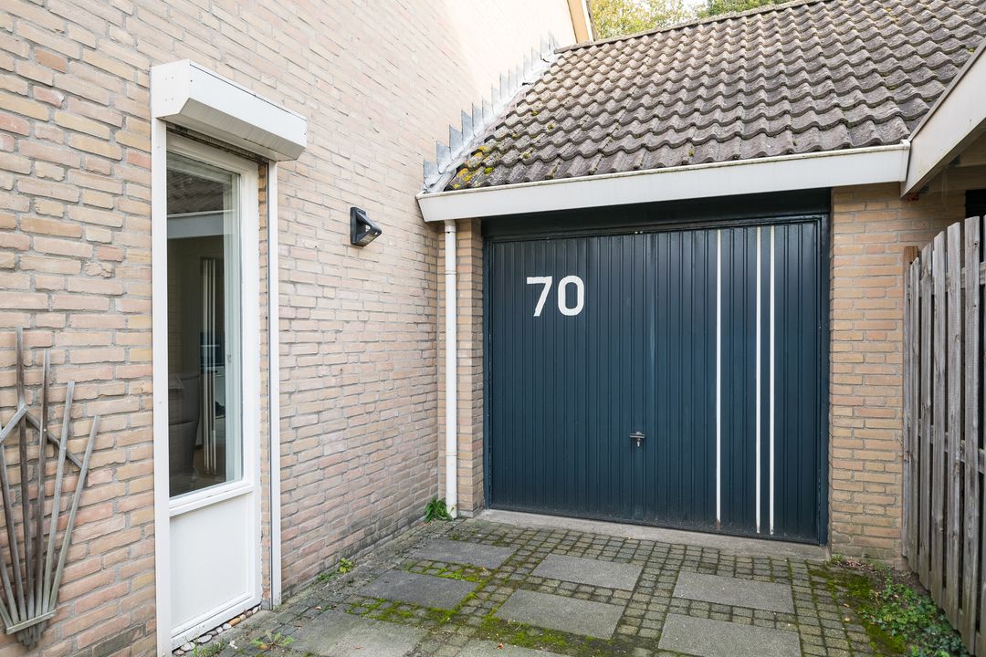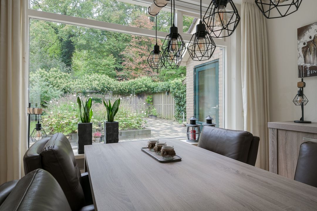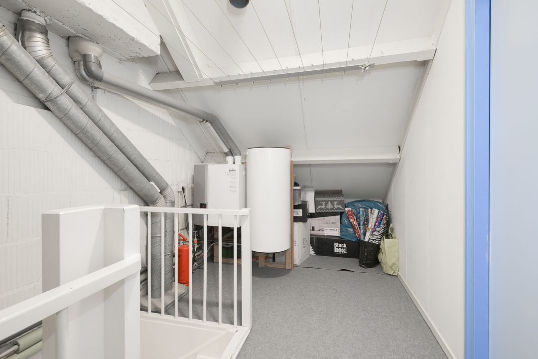 De garage biedt niet alleen parkeergelegenheid, maar ook extra opbergruimte. Via hier heeft u tevens een praktische achterom naar de achtertuin. De vliering in de garage is een uitkomst voor het opbergen van seizoensgebonden spullen zoals kerstversiering of kampeerspullen. Alles blijft hier droog en binnen handbereik. Voor de garage ligt een ruime oprit waar met gemak een tweede auto kan staan, handig wanneer er visite komt of als u zelf meerdere auto's heeft.