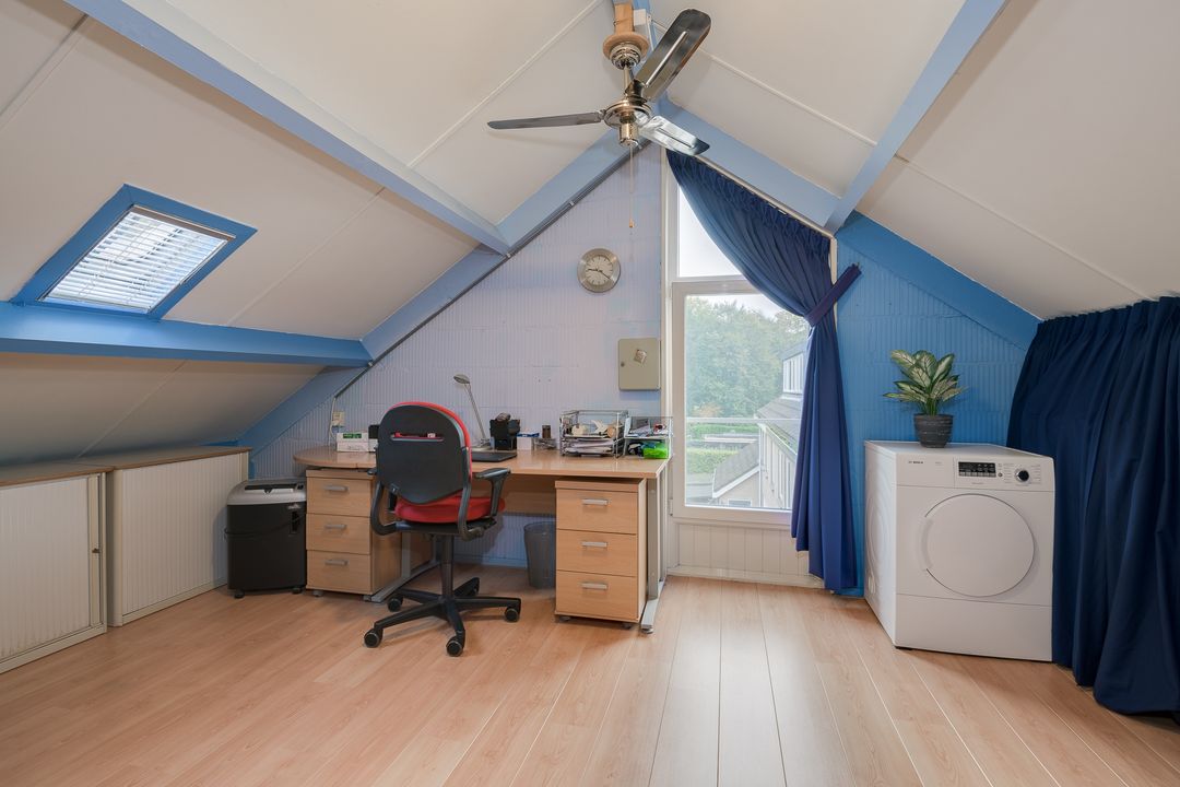 Via de vaste trap bereikt u de tweede verdieping waar u de vierde slaapkamer aantreft. Deze lichte zolderkamer met dakraam is multifunctioneel inzetbaar - of u nu een extra werkplek, speelkamer of slaapkamer zoekt. De overloop biedt extra bergruimte en huisvest onder andere de cv-ketel.