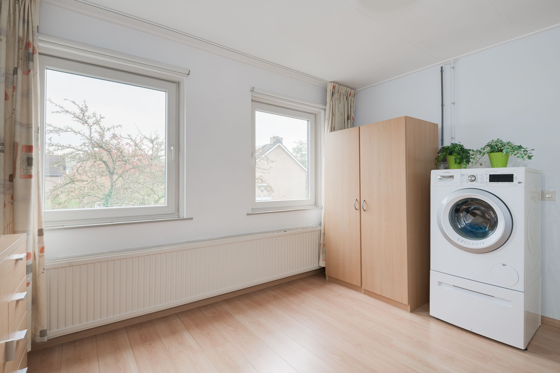 De tweede slaapkamer bevindt zich aan de voorkant van het huis. Hier bevindt zich de witgoedaansluiting – handig, zo heeft u vuile was vanuit de aangrenzende badkamer meteen bij de wasmachine in de buurt. Wilt u de kamer liever als slaapkamer gebruiken? Dat kan natuurlijk ook – de witgoedaansluiting kan eventueel naar de ruime zolder worden verplaatst, waar voldoende ruimte is voor een washoek.