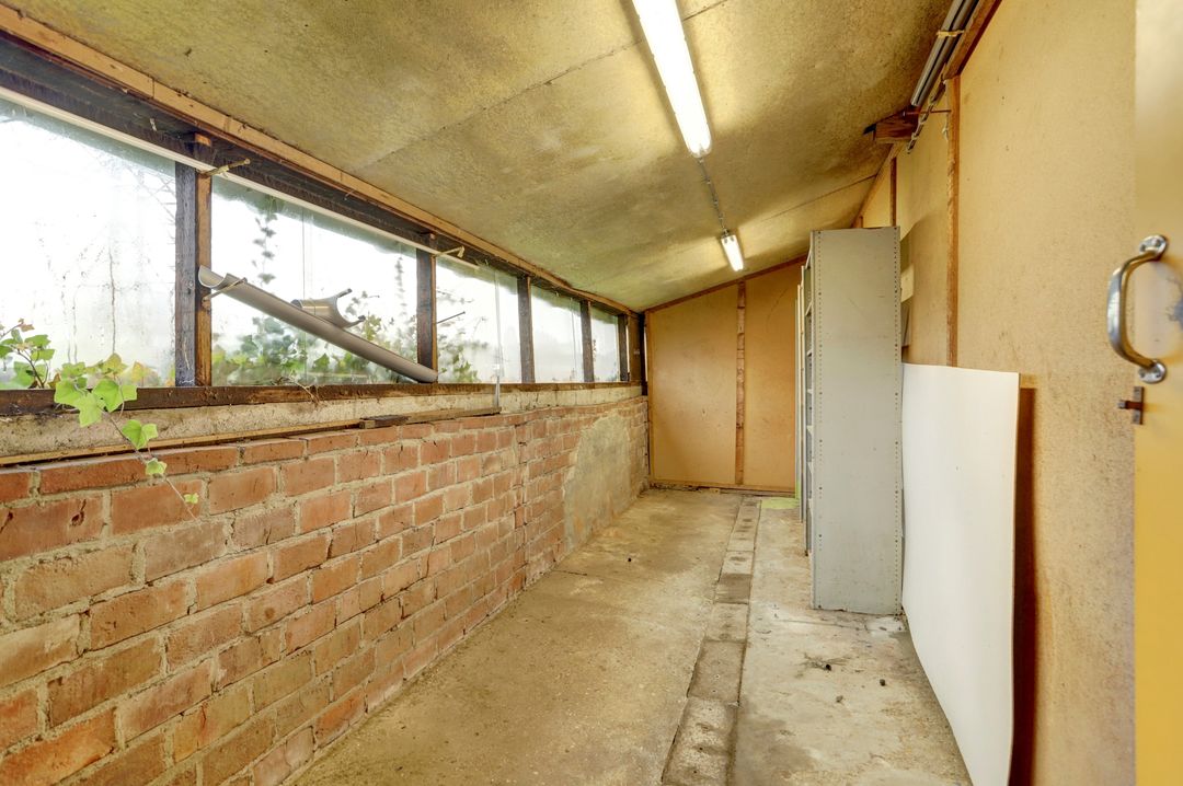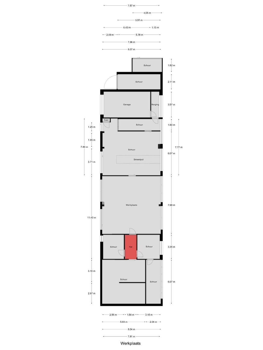 Het linker bijgebouw is zeer veelzijdig en opgedeeld in meerdere functionele ruimtes. Tegen de buitenzijde bevindt zich eerst een hondenhok. Vervolgens kom je bij een berging met schuifdeur, ideaal voor gereedschap, fietsen of opslag. Daarna volgen vier garages/schuren. De eerste garage beschikt over een smeerput en een elektrisch bedienbare kantelpoort, perfect voor sleutelaars of het onderhoud van voertuigen. Ook de tweede garage is voorzien van een smeerput. In de derde en vierde ruimte vind je onder andere houtopslag en kleinere hokken. Alle compartimenten zijn uitgerust met houten schuifdeuren wat het geheel een authentieke, agrarische uitstraling geeft. Deze schuur biedt daarmee volop mogelijkheden: van het houden van dieren en het realiseren van stallen tot klussen, opslag of zelfs het starten van een bedrijf aan huis waarvoor veel opslag en buitenruimte nodig is.