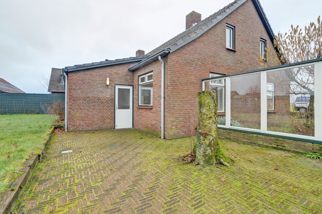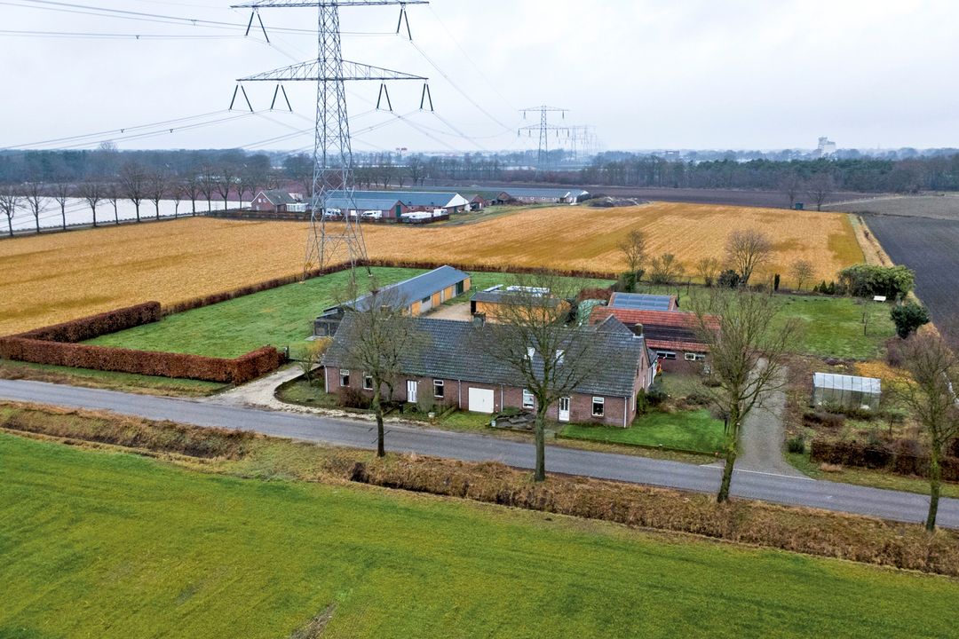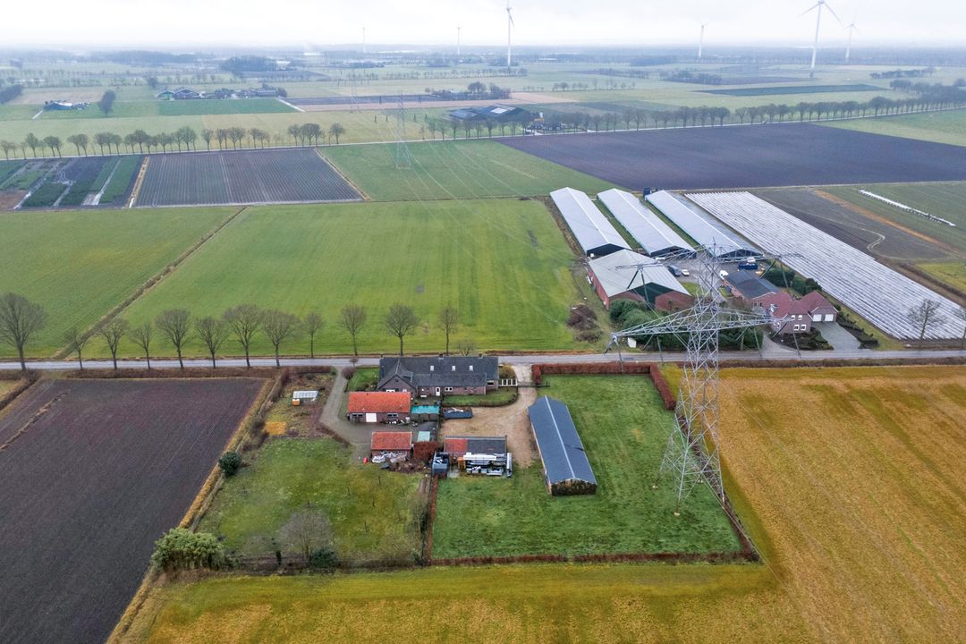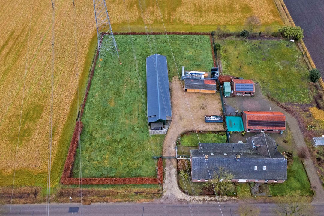 Naast de woning loopt een brede oprit van kiezelstenen die niet alleen zorgt voor een landelijke uitstraling maar ook volop parkeerruimte biedt. De oprit voert door naar de twee grote buitengebouwen. Het gehele terrein is rondom afgesloten met een hekwerk van gaas en stroomdraad en bereikbaar via een elektrisch te bedienen stalen schuifpoort, praktisch en veilig.