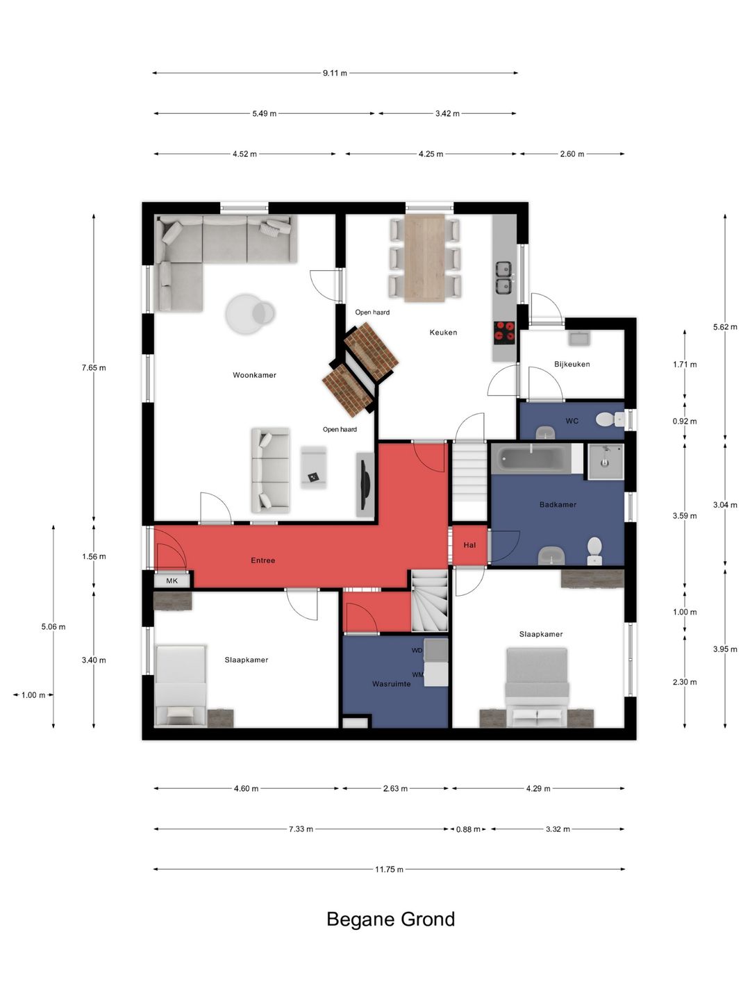 Tot slot is er nog een aparte wasruimte met de witgoedopstelling en een praktische trapkast voor extra opslag. Samen maken deze ruimtes de begane grond compleet: comfortabel, karaktervol en helemaal ingericht op het gemak van het dagelijks leven in het buitengebied.