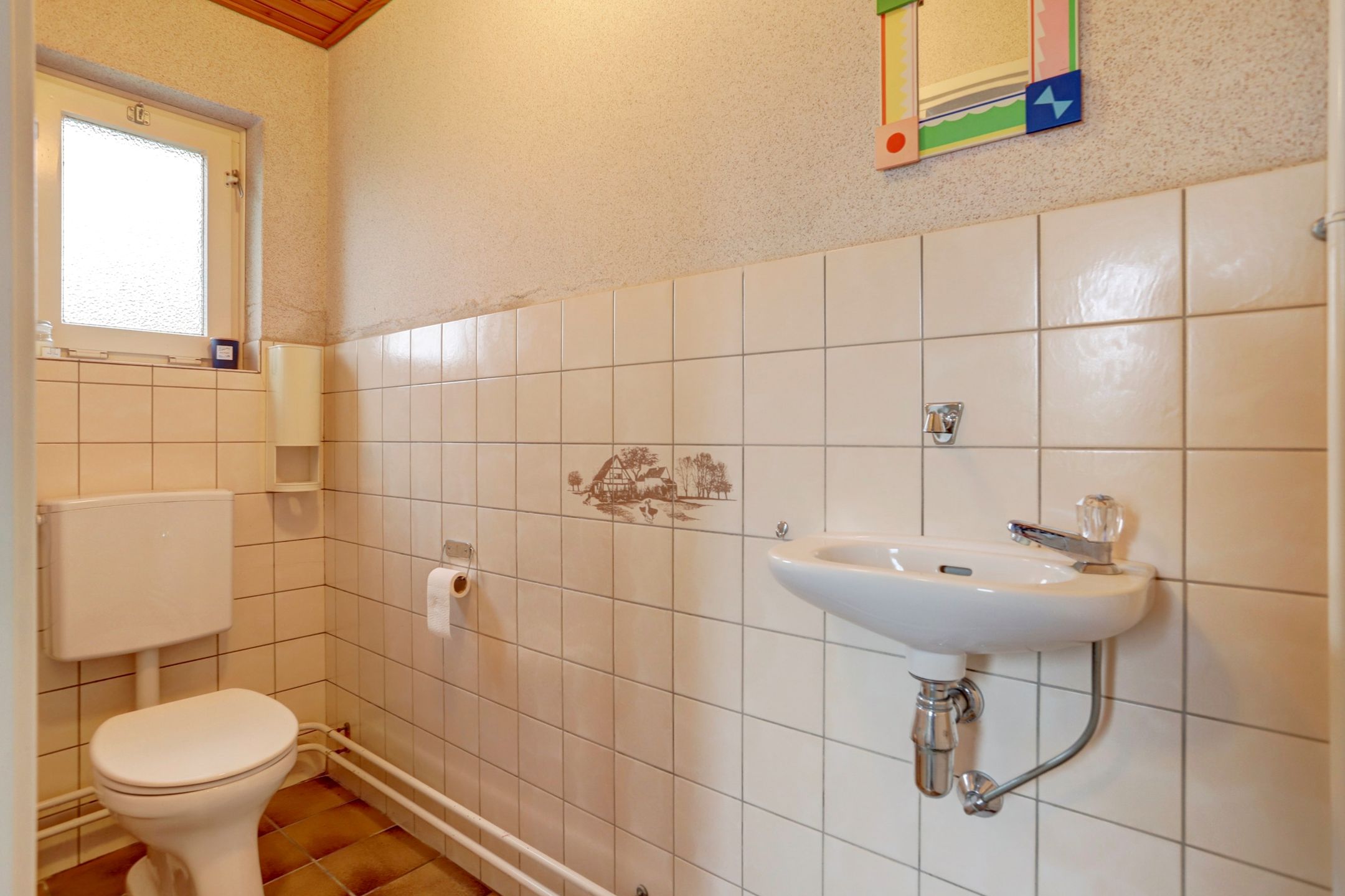 Binnenkomst is in de praktische bijkeuken: een fijne, functionele ruimte die perfect past bij het buitenleven. Hier is volop plaats voor een extra koelkast, vriezer of een ruime bergkast en garderobe. Dankzij de aanwezige wasbak en de separate toiletruimte kun je na het klussen of tuinieren gemakkelijk even opfrissen zonder het hele huis door te hoeven.