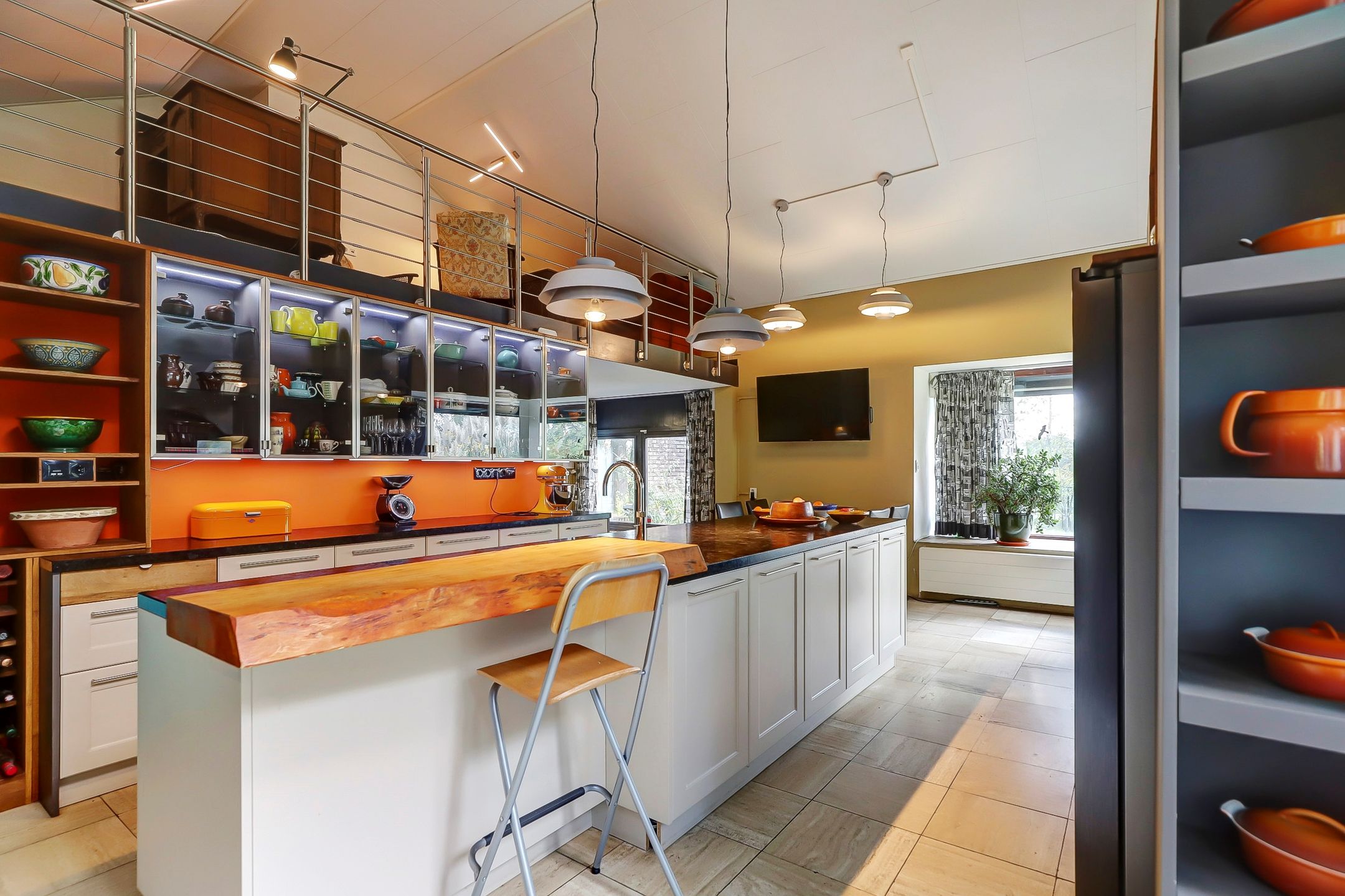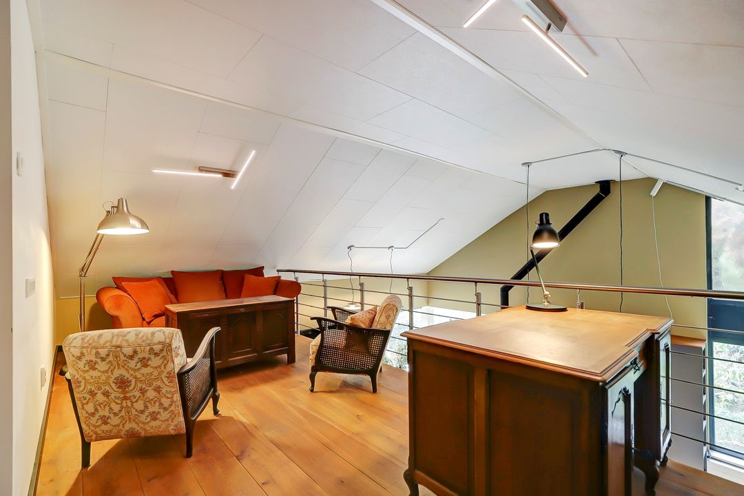 Via de vide kijk je uit over de keuken. Hier is momenteel een fijne werkplek ingericht maar deze ruimte zou uiteraard ook als extra slaapkamer kunnen dienen.