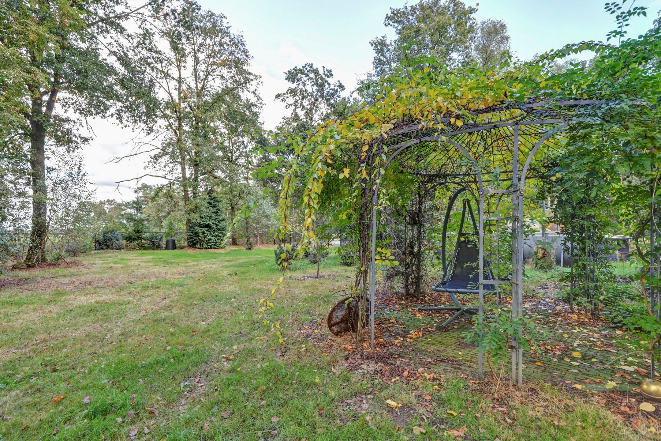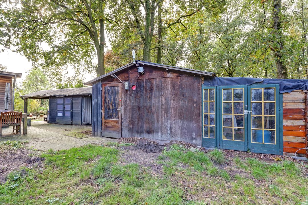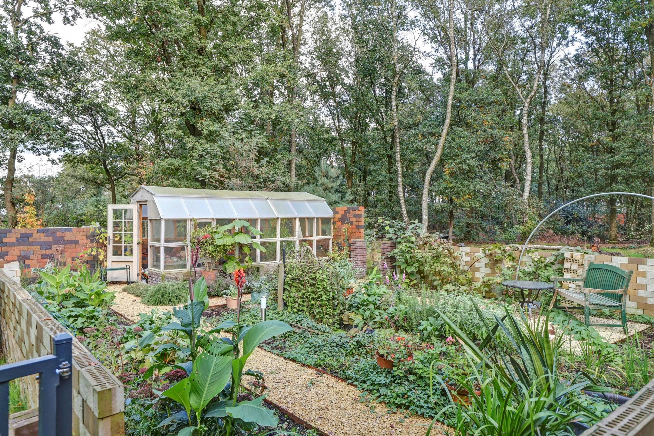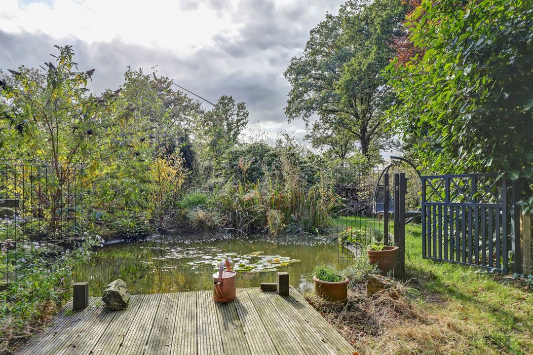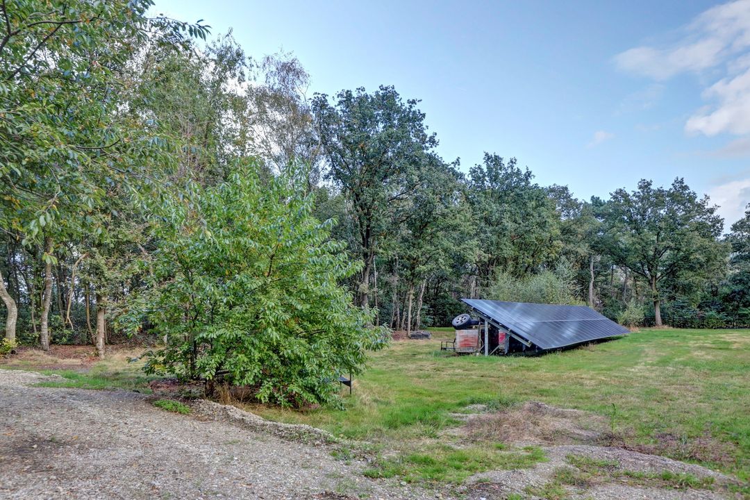 De tuin is eigenlijk te groot om een gewone tuin te noemen, bij deze woning hoort een heel park! Je kunt hier heerlijk door je eigen bos wandelen en even stil staan bij de vijver waar veel vogeltjes en andere dieren op af komen om even te drinken of zich te wassen. In de achtertuin kun je actief aan de slag in de moestuin en de bijbehorende tuinderskas. Er staan ook nog verschillende fruitbomen en aan de zijkant van de woning vind je een tweede vijver. Daarna kun je heerlijk ontspannen in het grote zwembad met een verwarmingspomp. Direct achter de woning ligt een groot terras met daarnaast een hondenkennel, een werkplaats en een houtopslag. Het terrein is geheel omheind met gaashekwerk en vier poorten waarvan de hoofdpoort met een afstandsbediening te openen is. Om deze tuin mooi groen te houden zijn er diverse sproeipunten aanwezig die allemaal zijn aangesloten op de grondwaterpomp. Er is eigenlijk teveel om op te noemen, deze tuin moet je gewoon beleven!