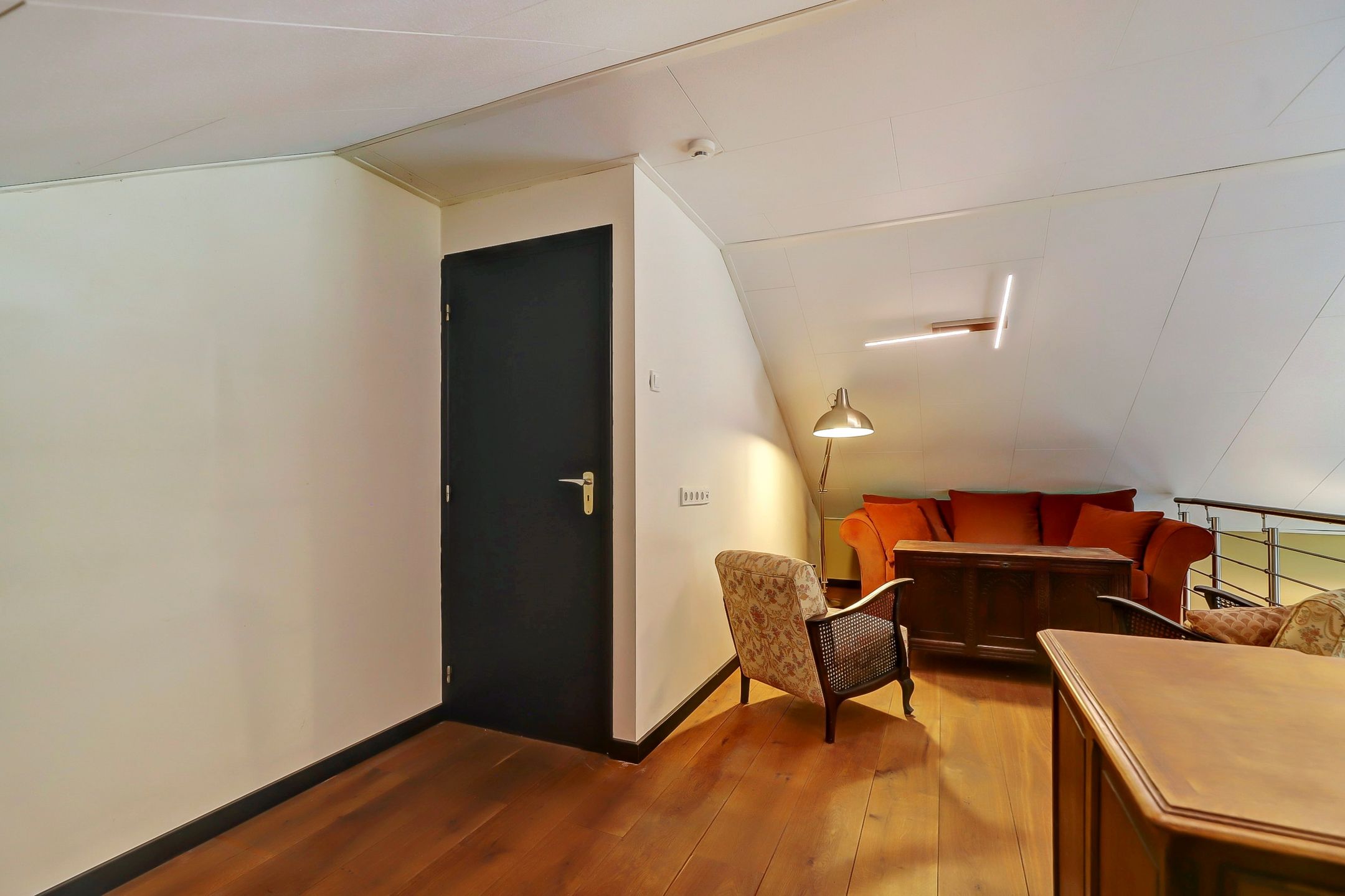De hele verdieping is voorzien van een eikenhouten vloer.