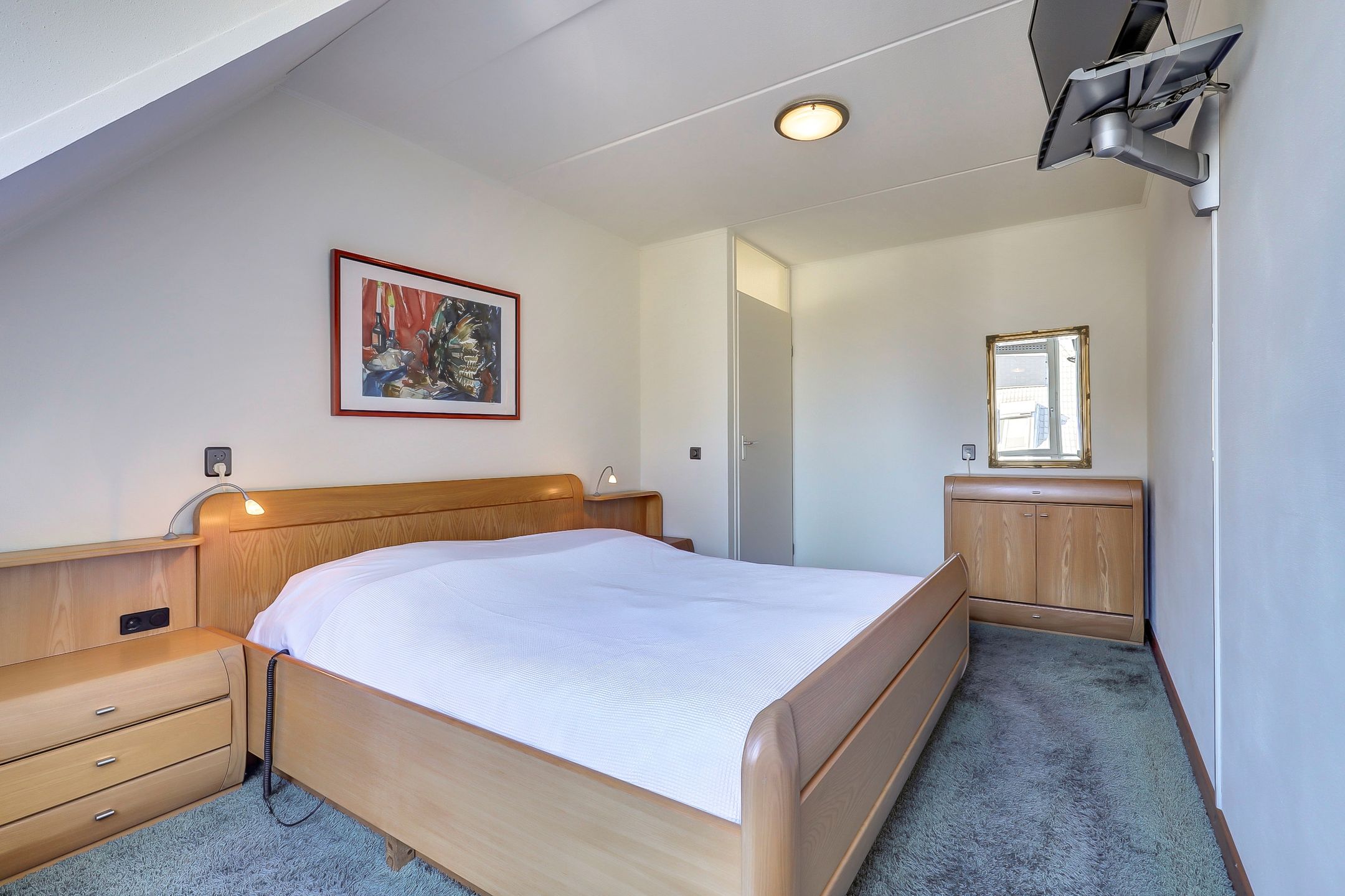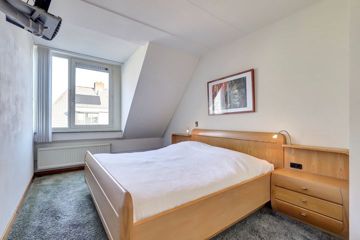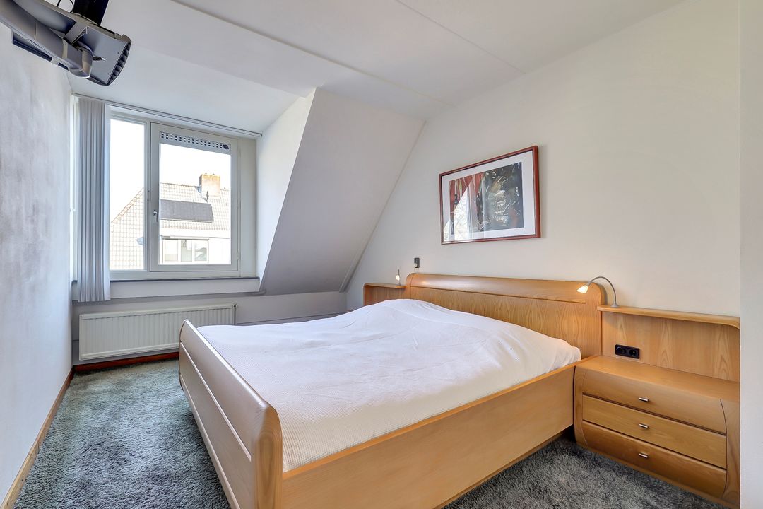 De grootste slaapkamer ligt aan de voorzijde van de woning en is heerlijk ruim opgezet. De dakkapel met draairaam zorgt voor extra licht en ruimtegevoel en maakt ventileren eenvoudig. Op de vloer ligt comfortabele vloerbedekking en er is meer dan voldoende plek voor een groot tweepersoonsbed en een royale kledingkast.