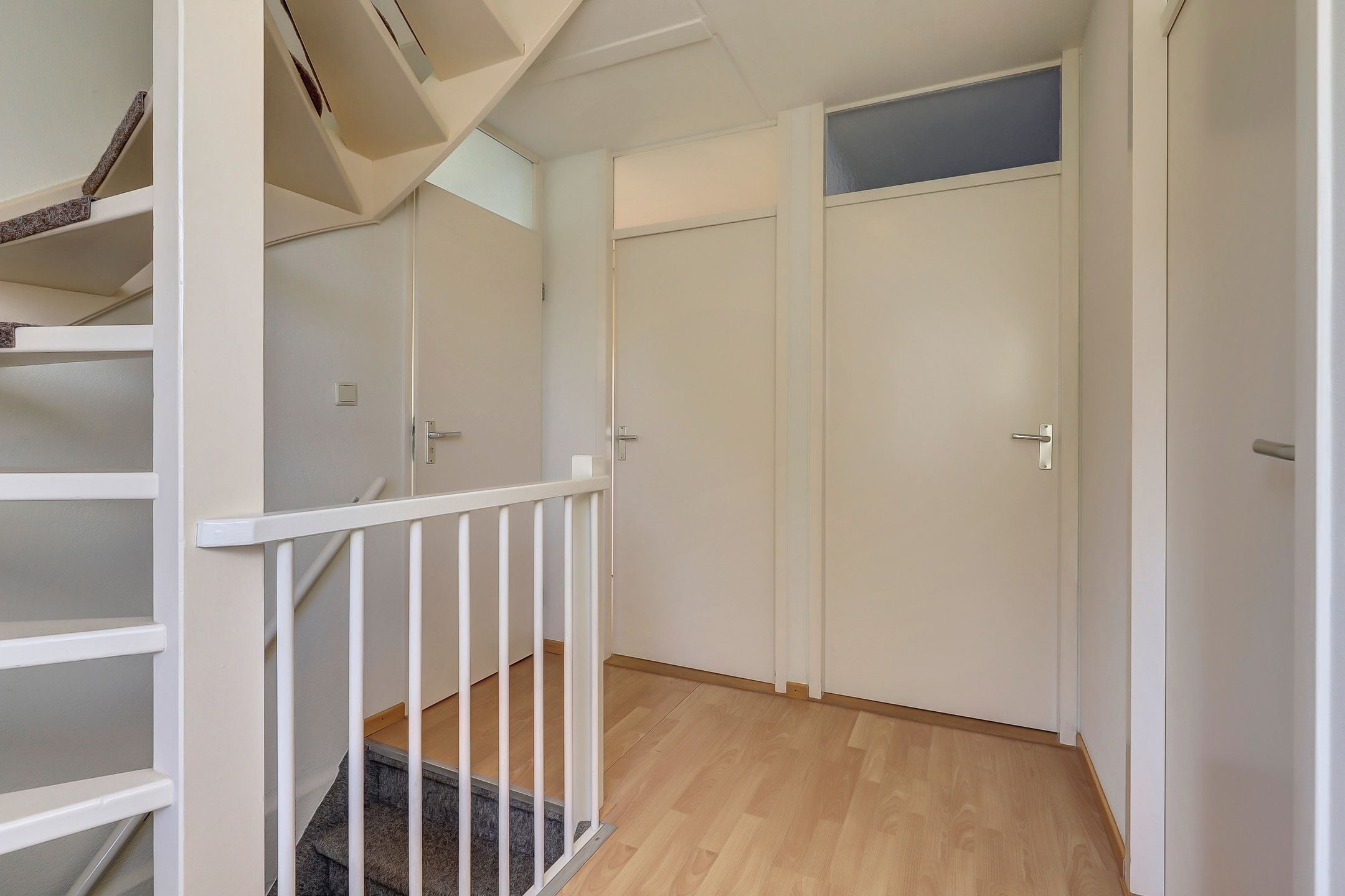 Via een vaste trap, eveneens voorzien van comfortabele halve maantjes, bereik je de zolderverdieping. Deze afwerking zorgt niet alleen voor extra veiligheid en grip maar geeft de trap ook een nette en verzorgde uitstraling.