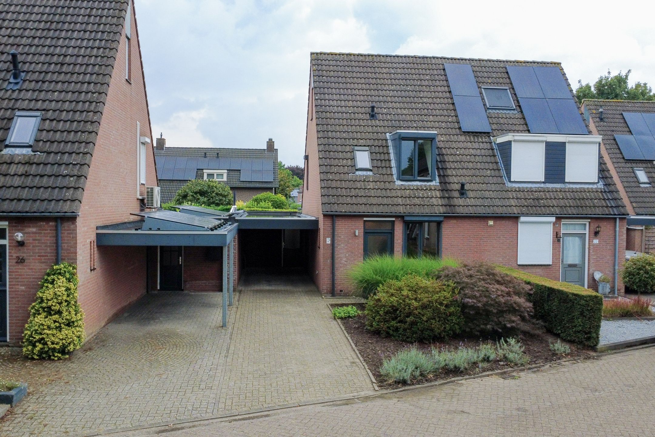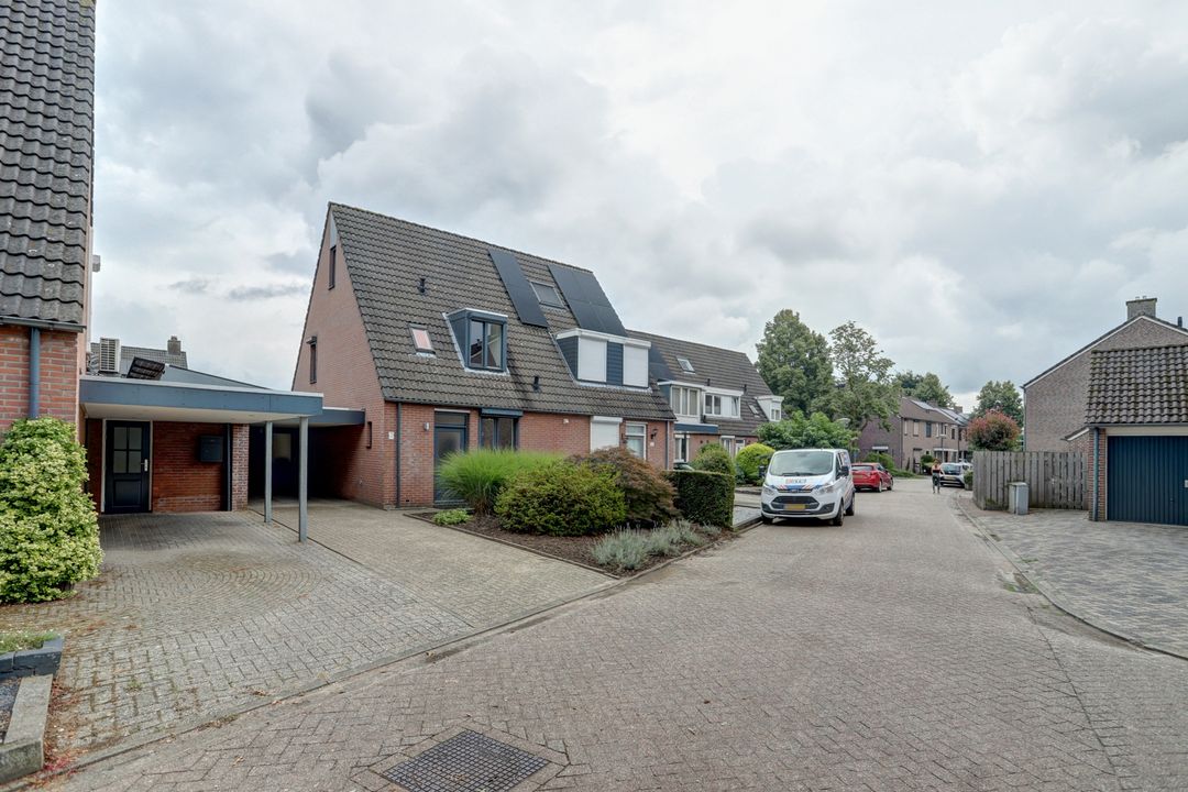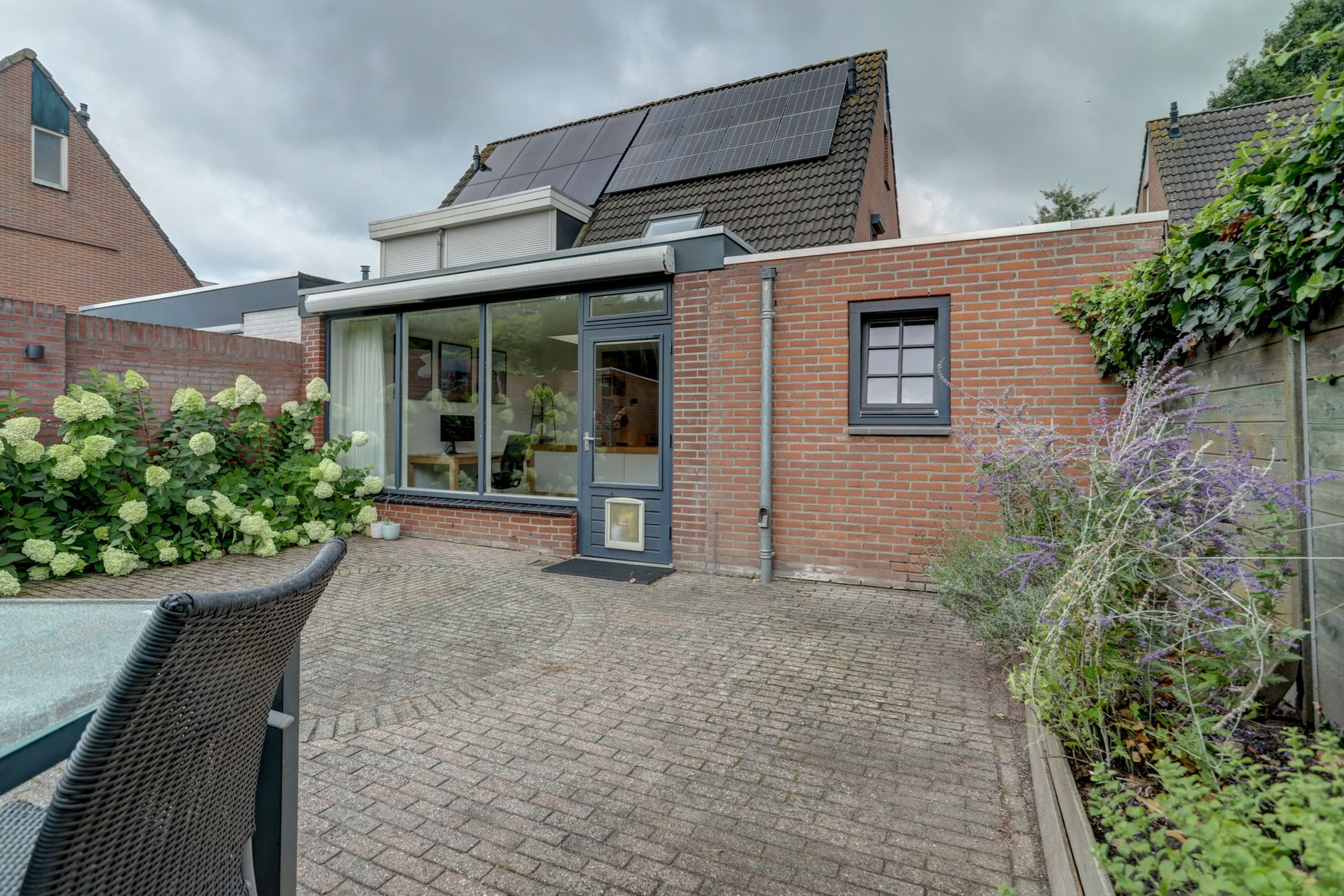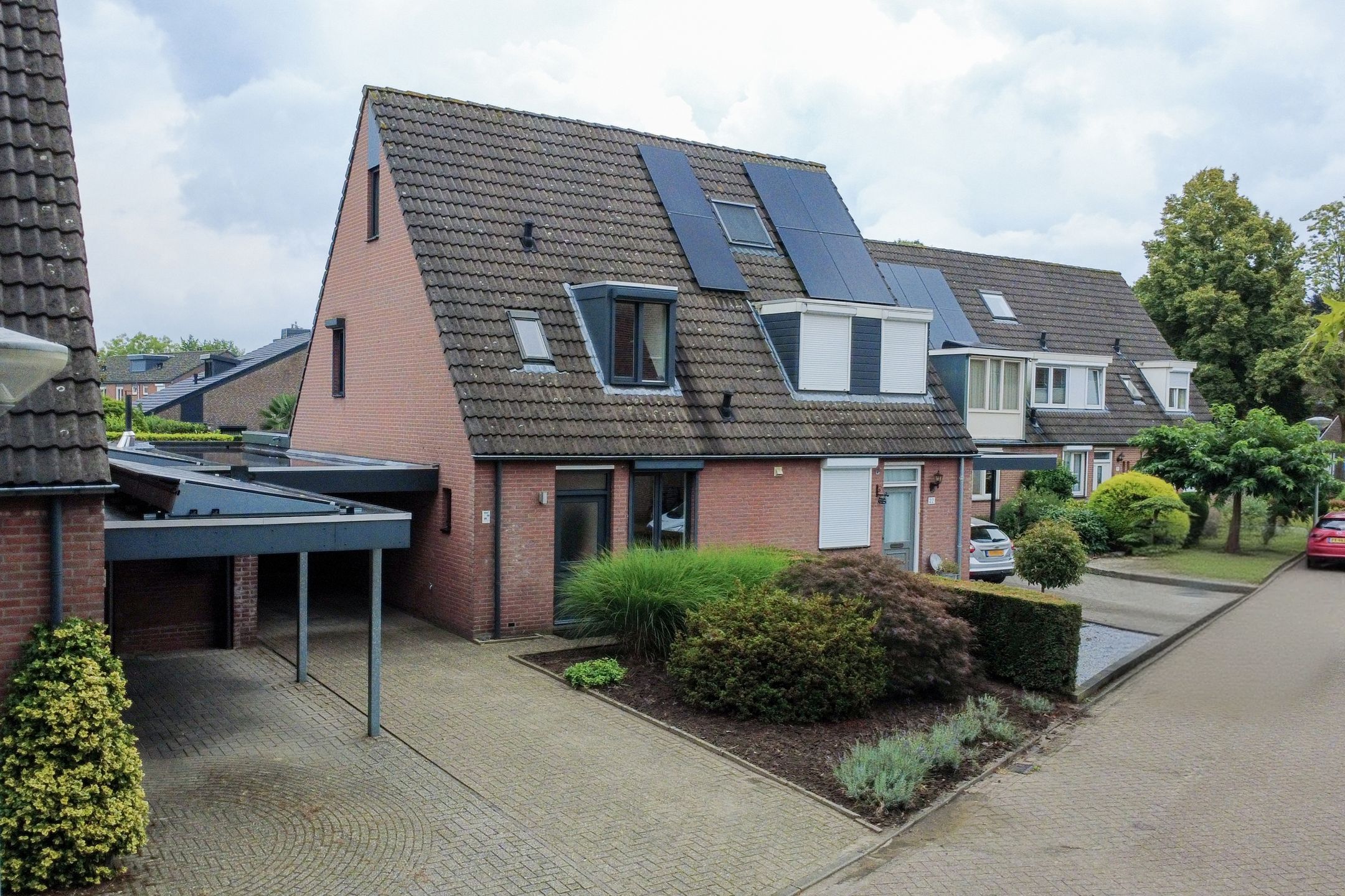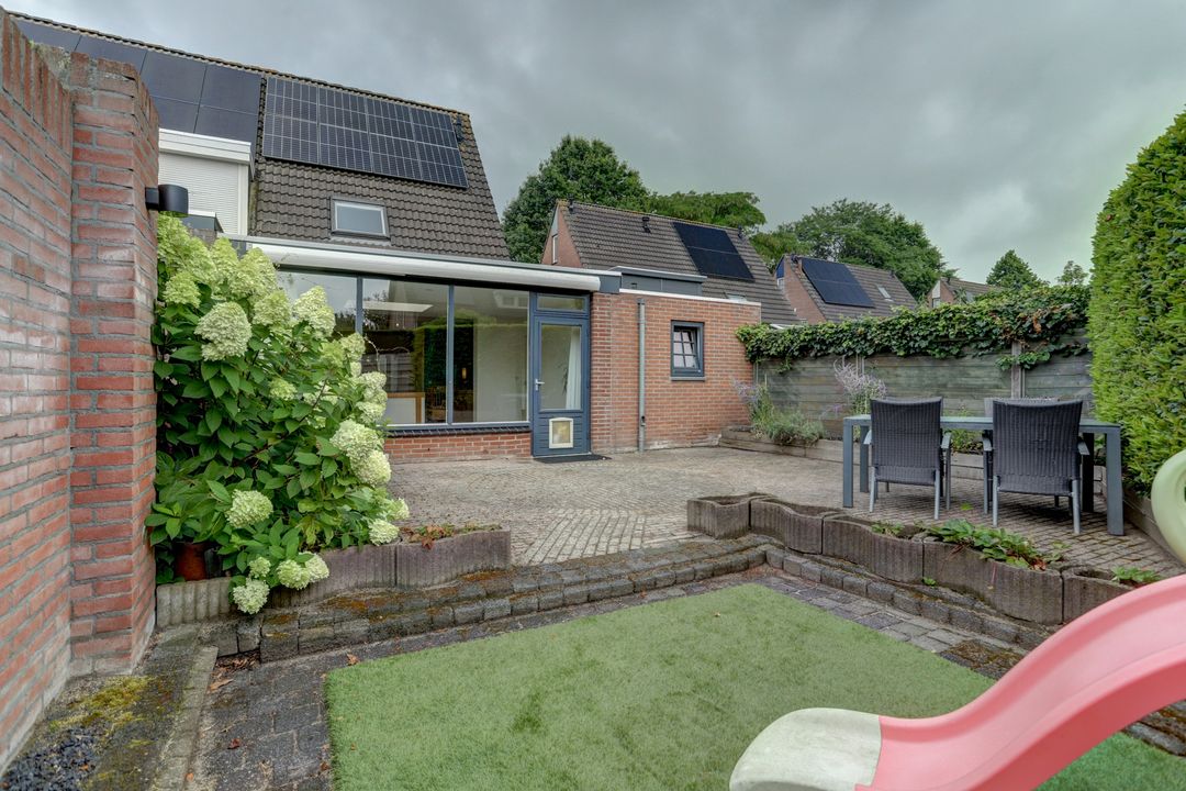 In een rustige en groene woonwijk ligt deze leuke twee onder één kapwoning met geschakelde garage. De begane grond is uitgebreid met een flinke uitbouw met grote ramen en een lichtkoepel in het plafond waardoor dit een heerlijk lichte ruimte is. Op de verdieping liggen drie slaapkamers en een badkamer. De zolder kun je met een vaste trap bereiken en biedt mogelijkheden voor een vierde slaapkamer. De achtertuin is volledig omheind en is voorzien van een elektrisch te bedienen zonnescherm. Op het dak van de woning liggen acht zonnepanelen.