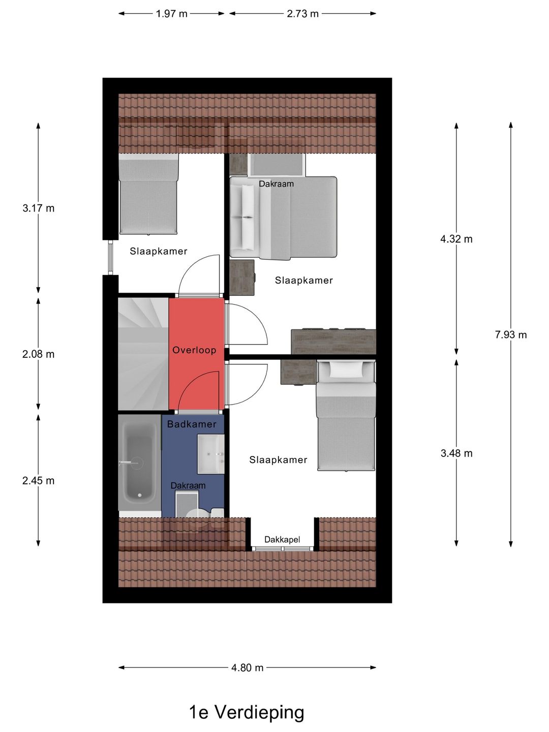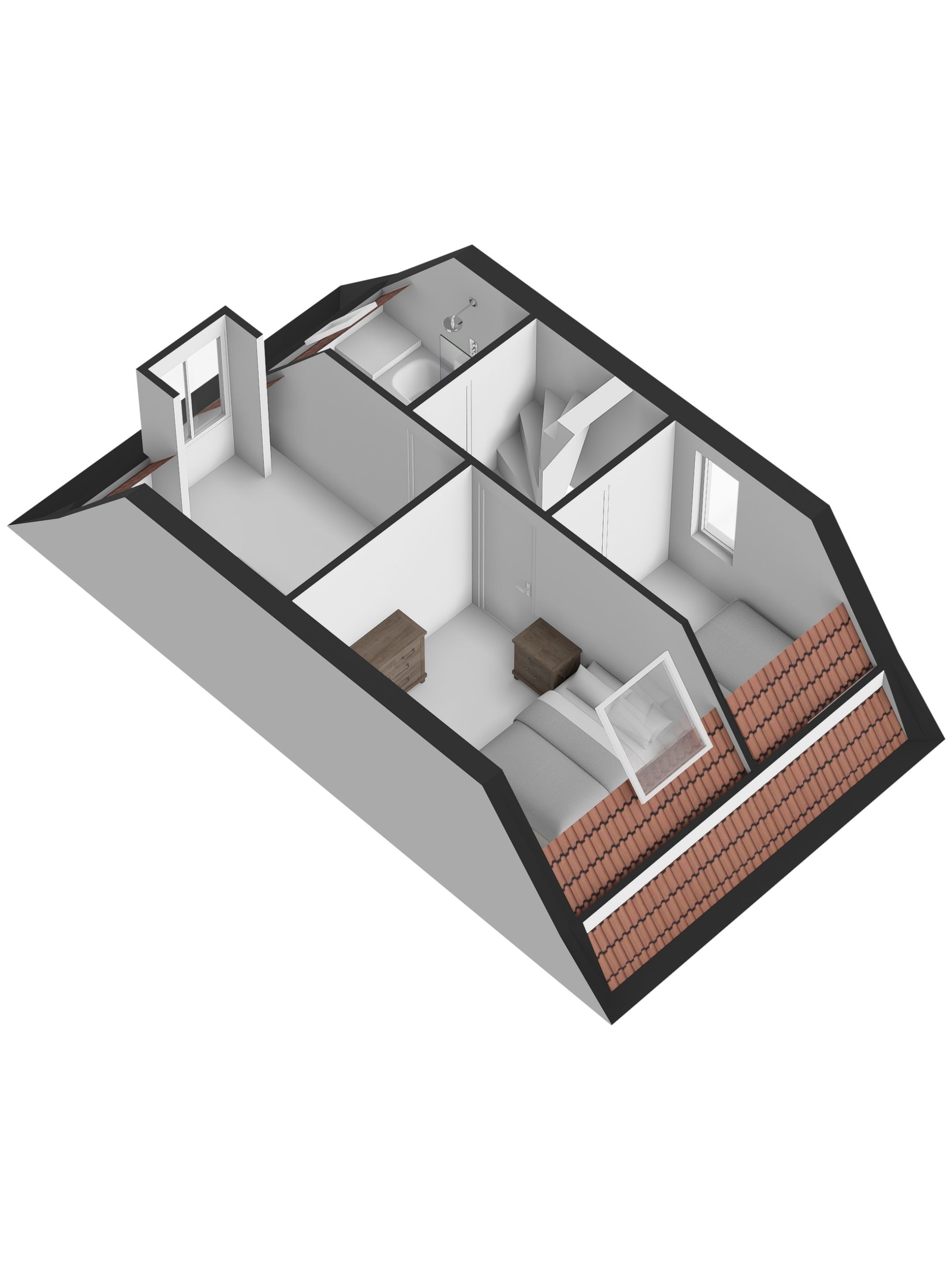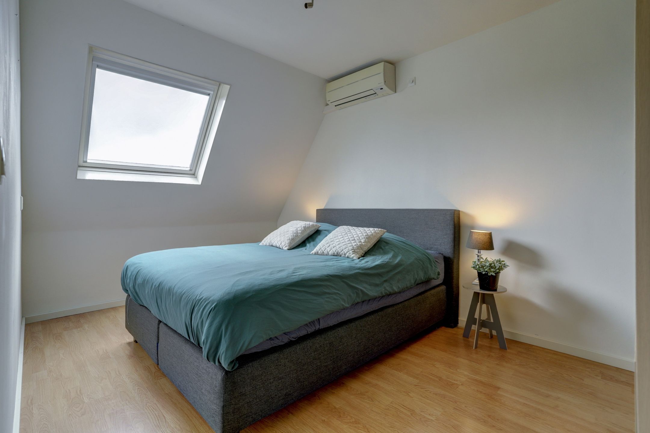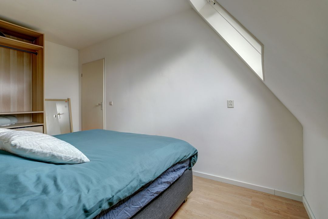 Twee van de drie slaapkamers zijn ruim genoeg om een tweepersoonsbed en een kast in te plaatsen. De slaapkamer aan de voorkant heeft een dakkapel met rolluik en de slaapkamer aan de achterkant beschikt over een Velux dakraam met verduisterend rolgordijn en een vaste airco-installatie. De kleinere slaapkamer is voorzien van een draairaam met rolluik. Alle slaapkamers hebben een laminaatvloer.