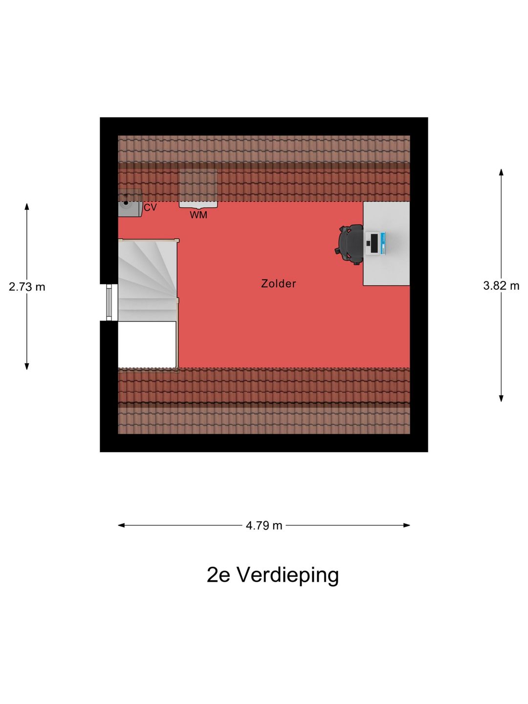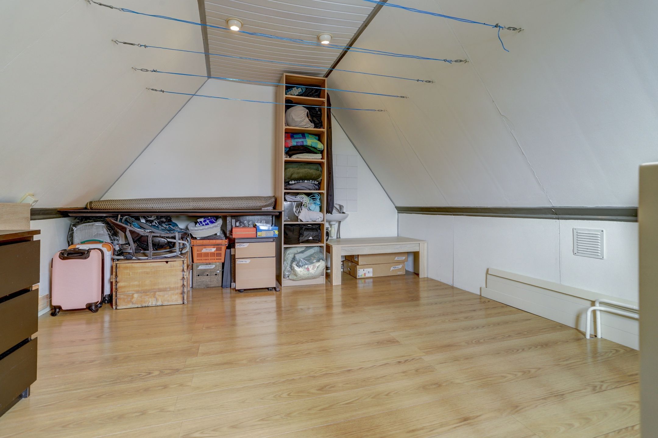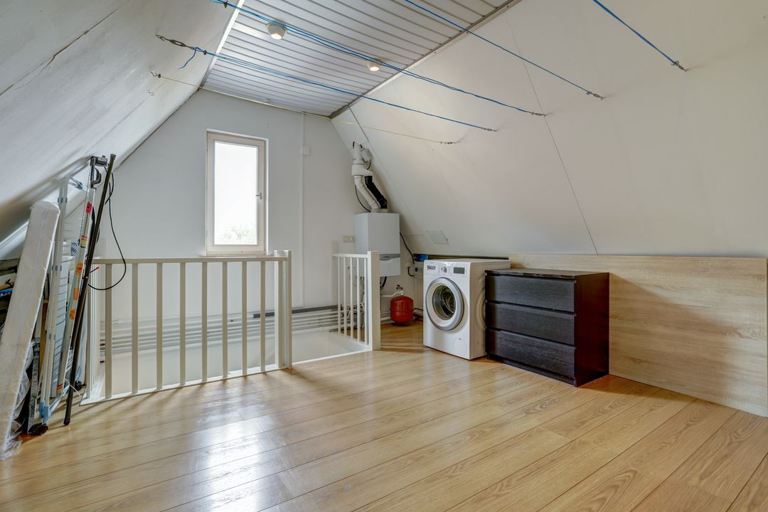 De zolder is bereikbaar met een vaste trap. Hier bevinden zich de witgoedaansluitingen voor zowel een wasmachine als een droger, de Vaillant ketel uit 2021 en de aansluitingen van de zonnepanelen. Op de zolder is een draairaam aanwezig en de vloer is op deze verdieping ook voorzien van laminaat. De zolder is ruim genoeg om een vierde slaapkamer te realiseren.