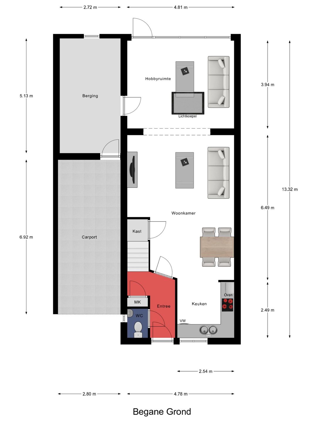 In de garage heb je genoeg plaats voor een werkplaats en daarnaast is er nog ruimte voor het stallen van fietsen en het opbergen van tuingereedschap en tuinmeubels. Voor de garage ligt een carport, die in 2021 vernieuwd is, met daarvoor nog een oprit zodat je twee auto’s op eigen terrein kunt parkeren. De garage is inpandig te bereiken en beschikt, net als de carport, over verlichting met bewegingsmelders.