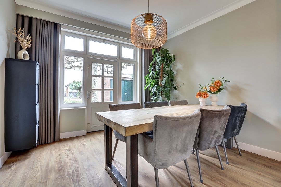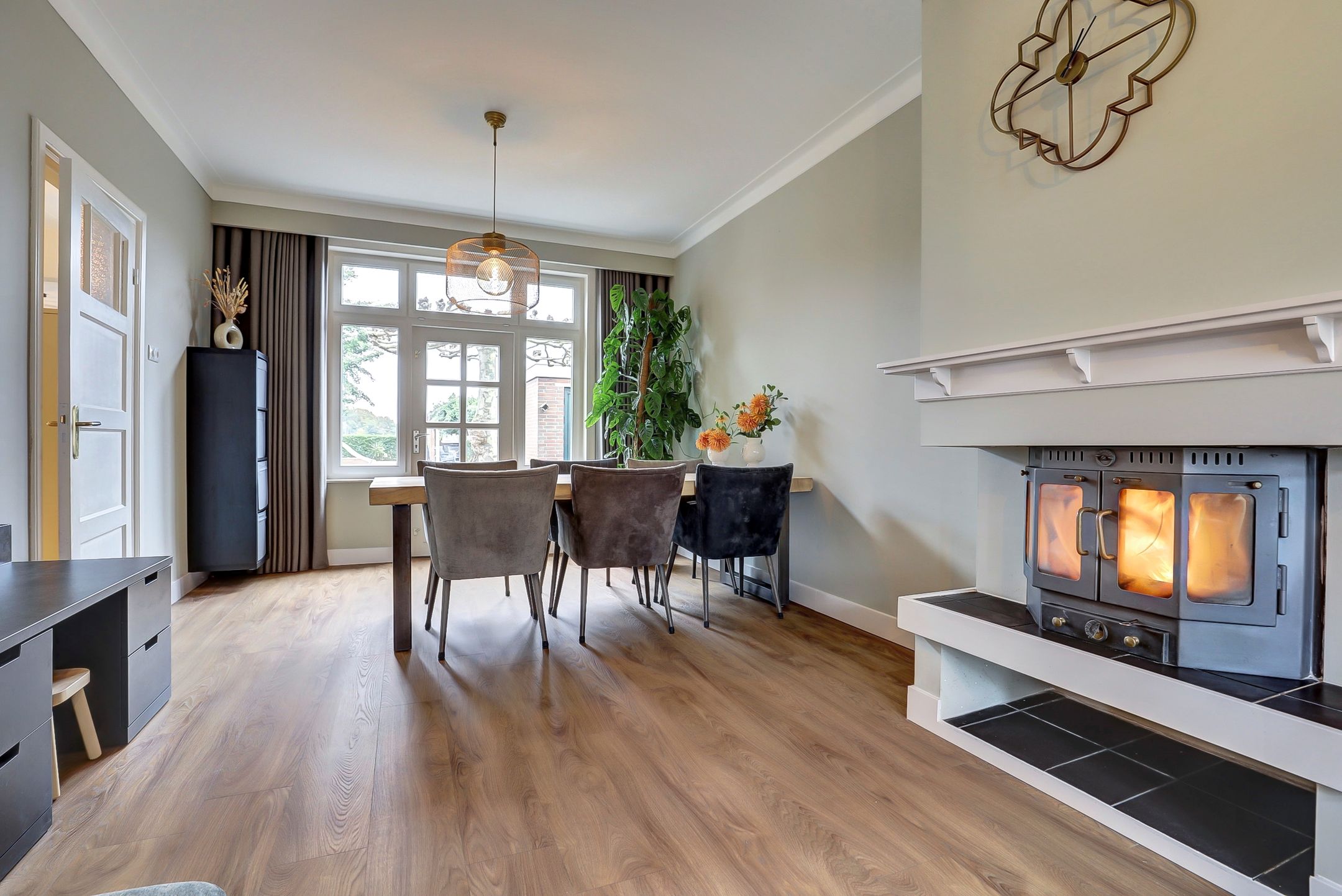 Deze prachtig gerenoveerde jaren ’30 woning combineert authentieke charme met stijl en hedendaags wooncomfort. Vanaf het moment dat je hier binnenloopt, voel je de warme sfeer en zie je het vakmanschap waarmee de woning is gemoderniseerd met behoud van de originele details. De ruime woonkamer ademt karakter dankzij de typische jaren ’30 erker, hoge plafonds en de sfeervolle houtkachel die uitnodigt tot lange avonden bij het haardvuur. Aan de achterzijde ligt de landelijke keuken, voorzien van een gezellige schouw en alle moderne gemakken. Achter de keuken bevindt zich nog een praktische bijkeuken, ideaal met een extra keukenblokje en bergruimte. Op de eerste verdieping liggen drie slaapkamers waarvan twee royale kamers en een derde, compacte kamer die perfect dienst kan doen als werk- of kinderkamer. De badkamer is stijlvol en praktisch ingericht met een inloopdouche en een ligbad, een fijne plek om te ontspannen na een lange dag.