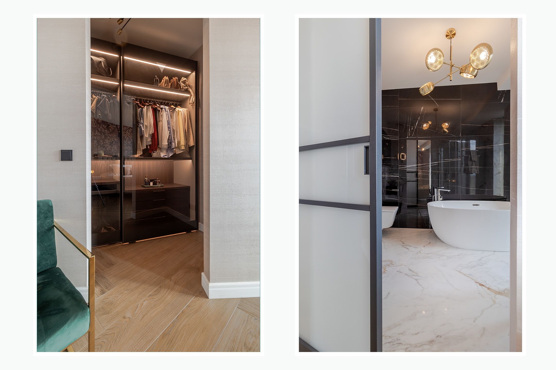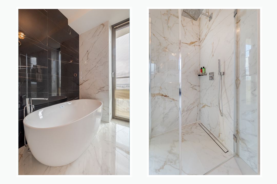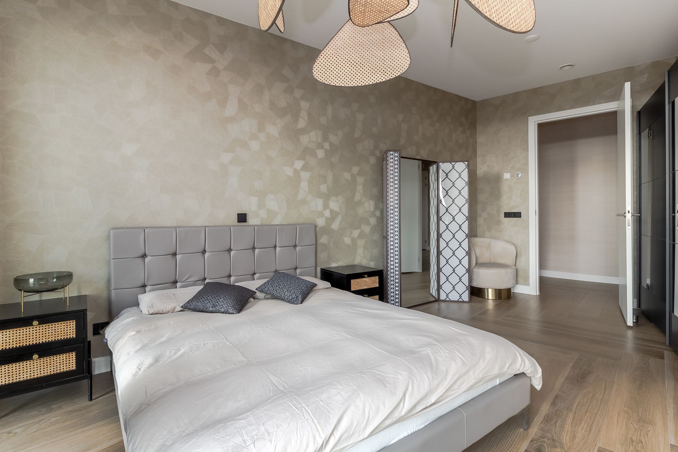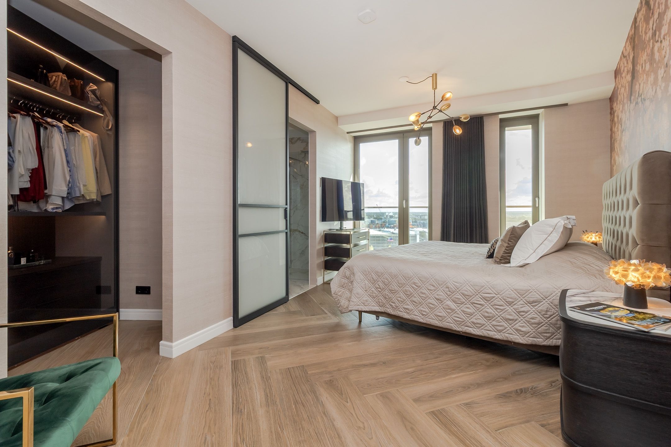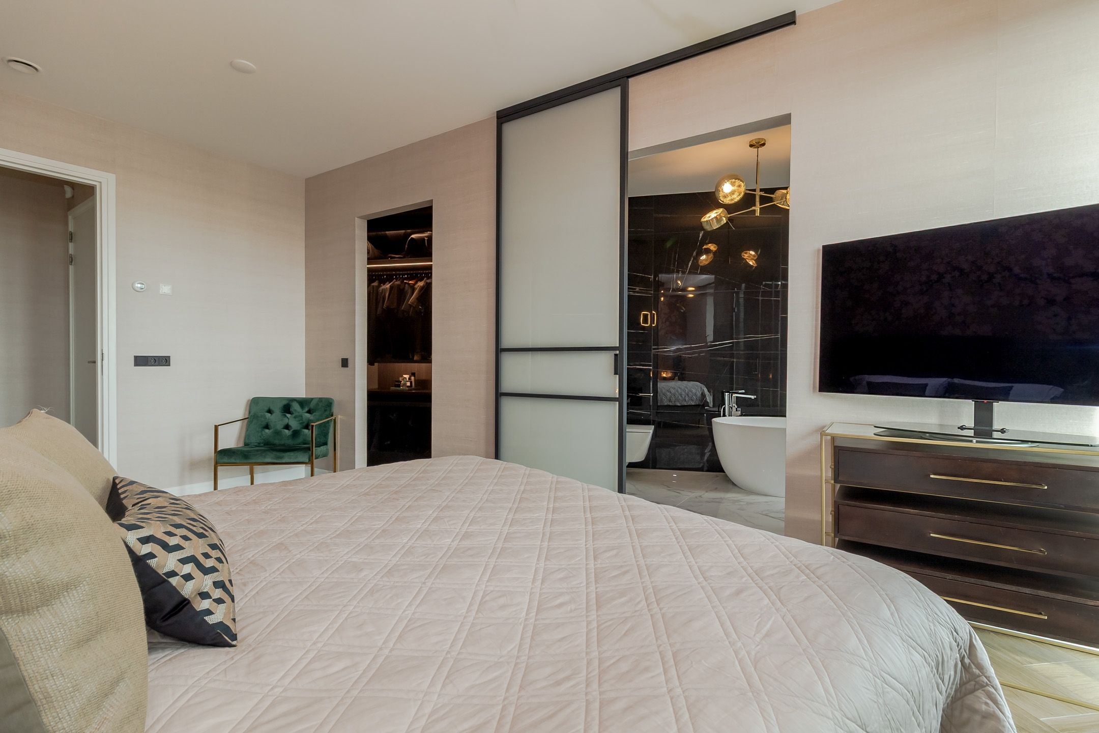 De master bedroom is ruim en heeft een riante inloopkast. Ook heb je toegang tot de eerste, luxe, stijlvolle badkamer.