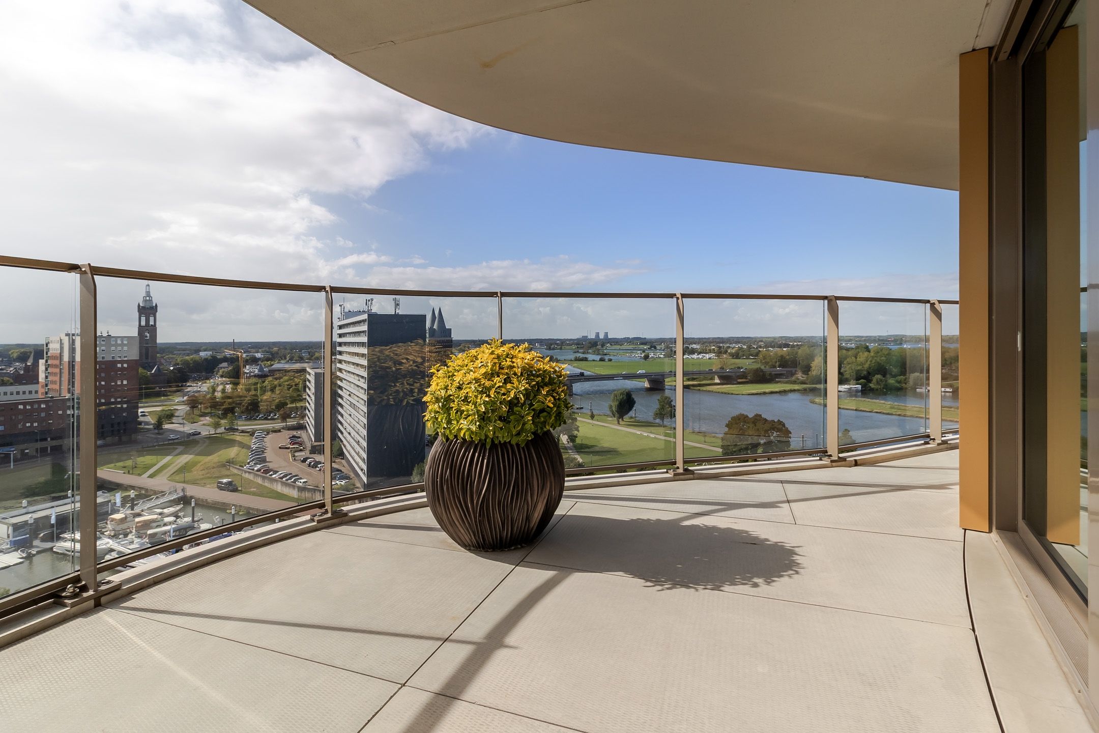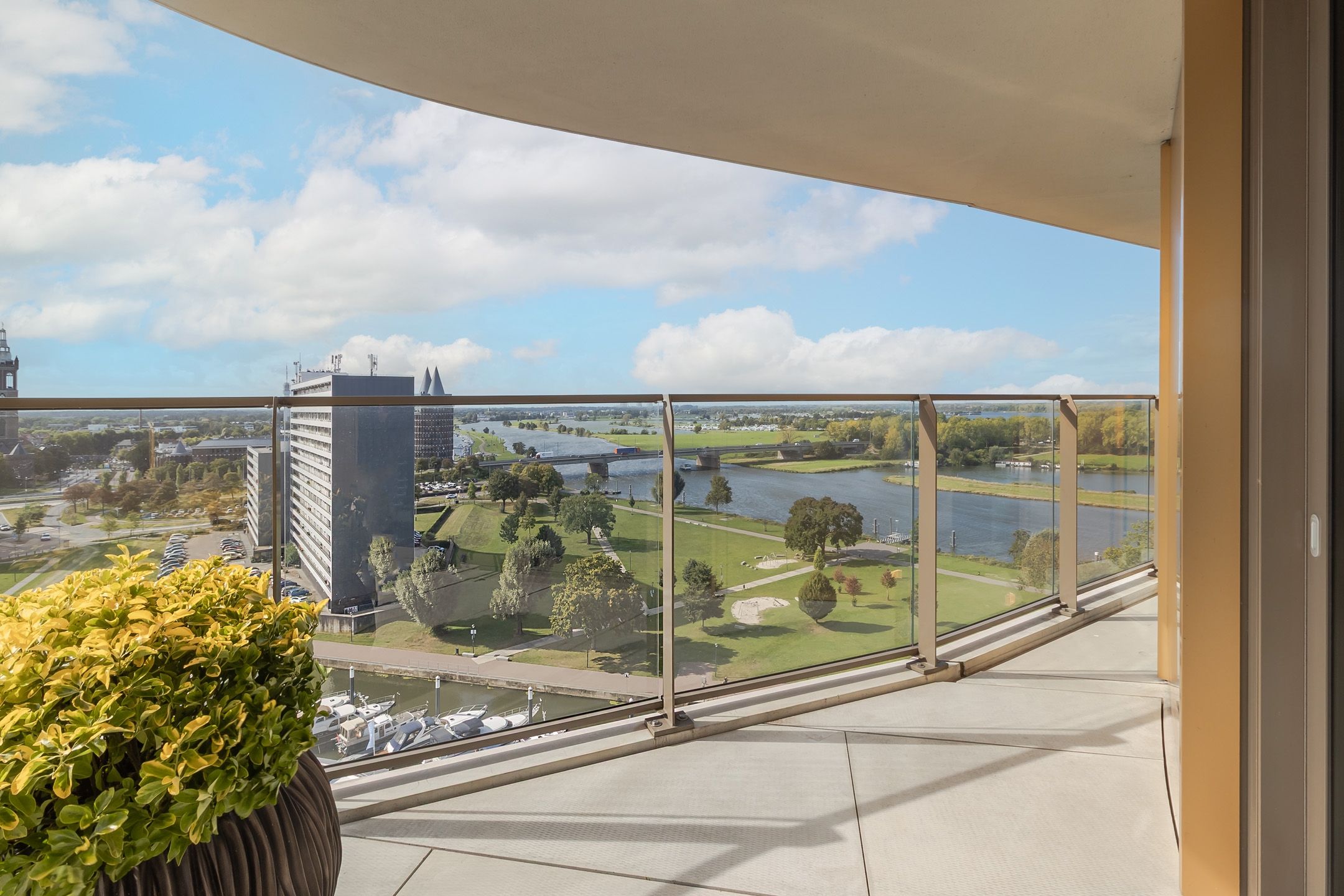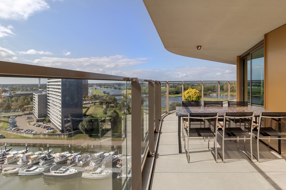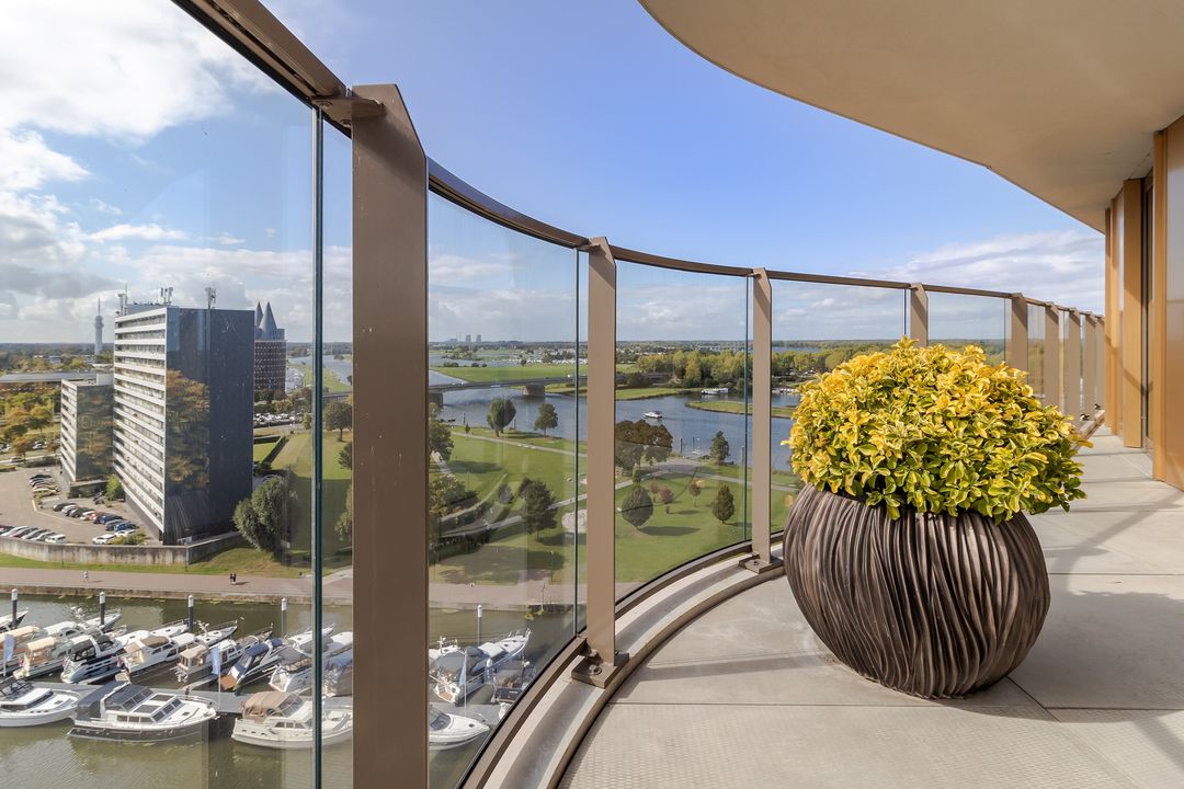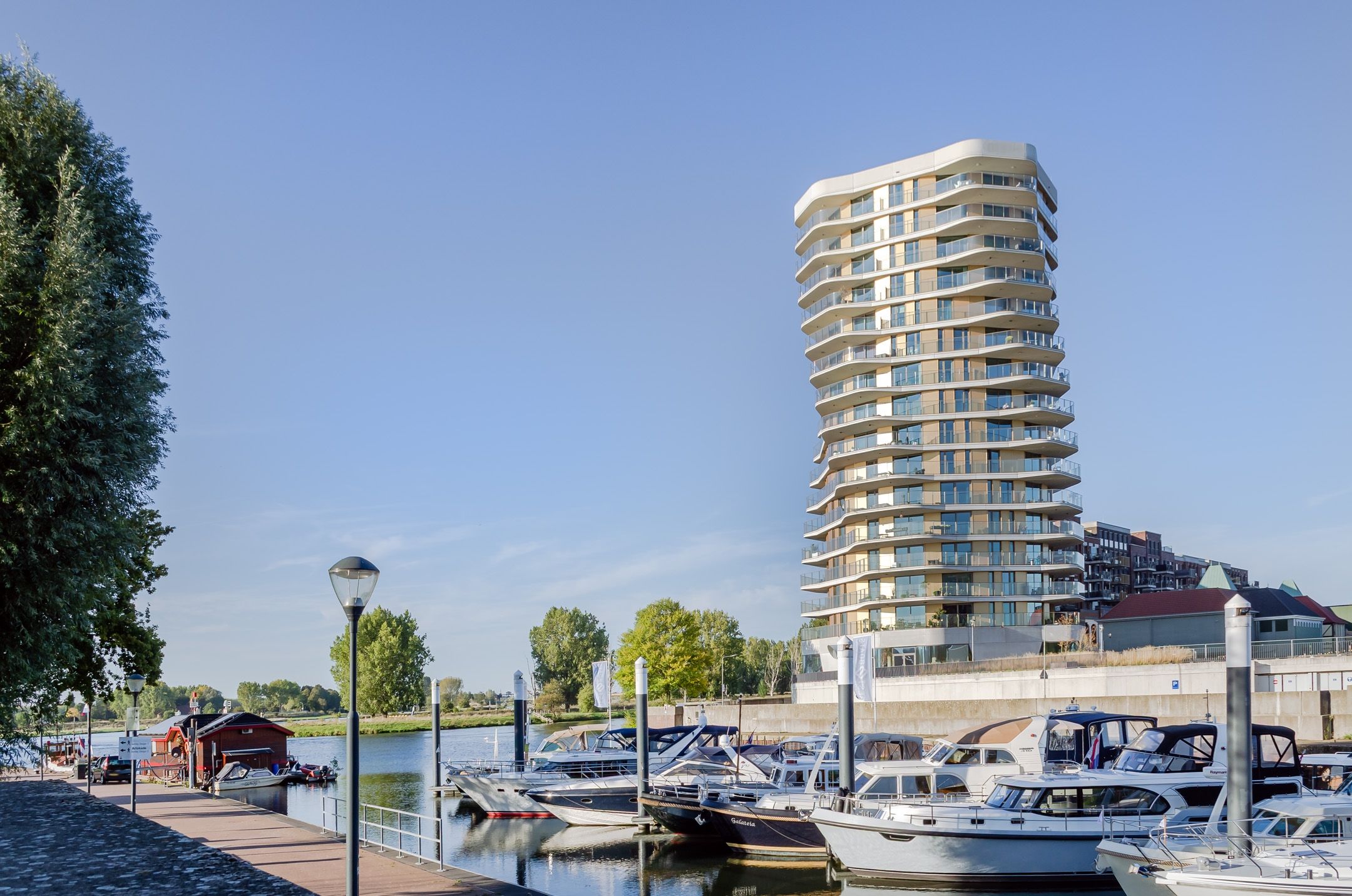 Grote schuifpuien geven toegang tot een ruim balkon met panoramisch uitzicht over de Maasplassen, de haven en de stad. Met 3 slaapkamers, 2 badkamers, een berging en 2 parkeerplaatsen woon je hier royaal én zorgeloos.