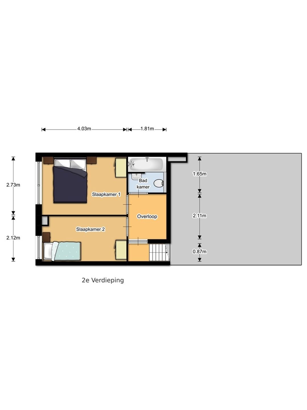 Beide slaapkamers zijn rustig gelegen aan de achterzijde van het appartementencomplex.