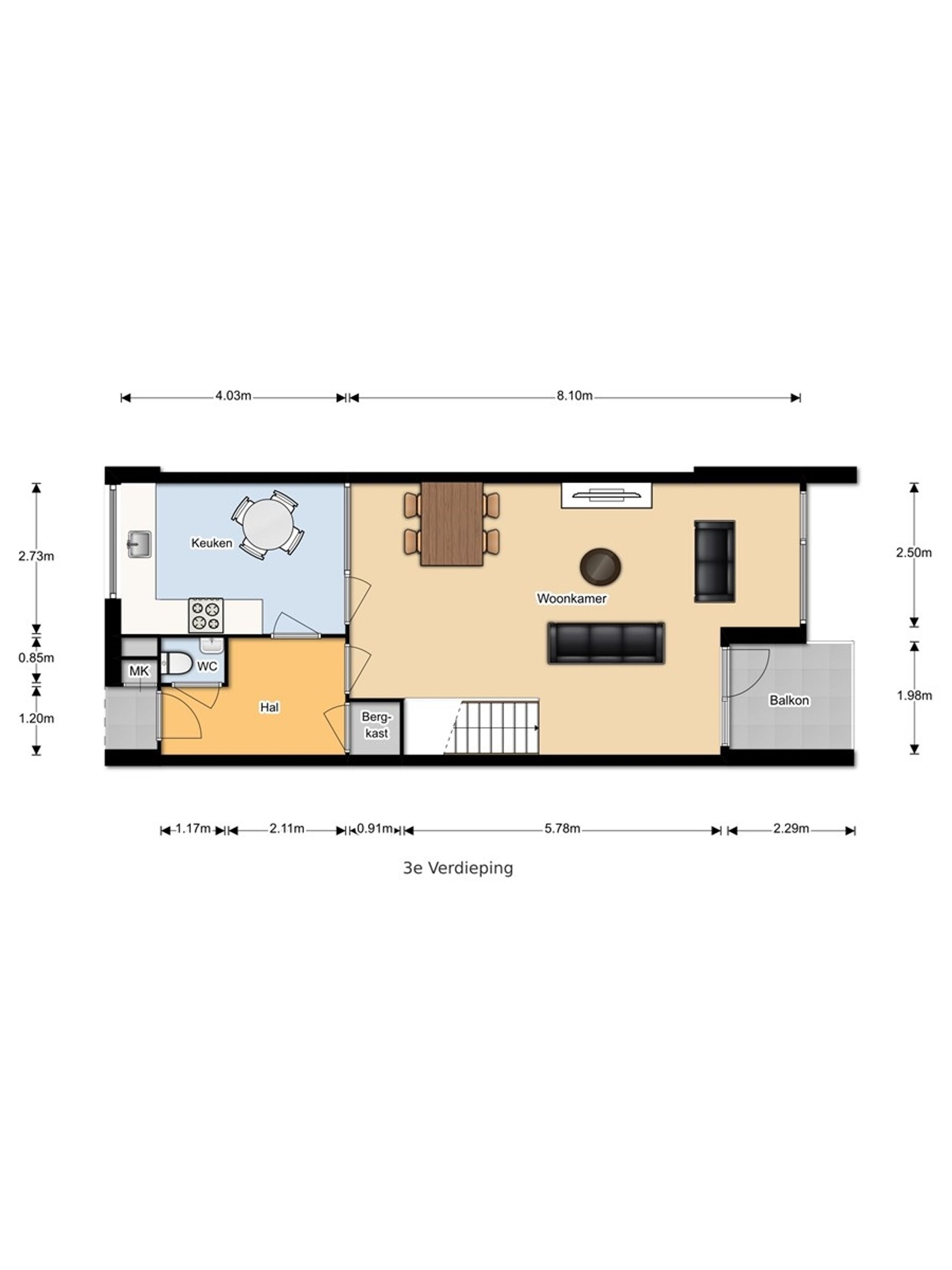 Aansluitend aan de woonkamer komt men op het zonnige balkon (ochtend zon) waar ruimte is voor een knus zitje.