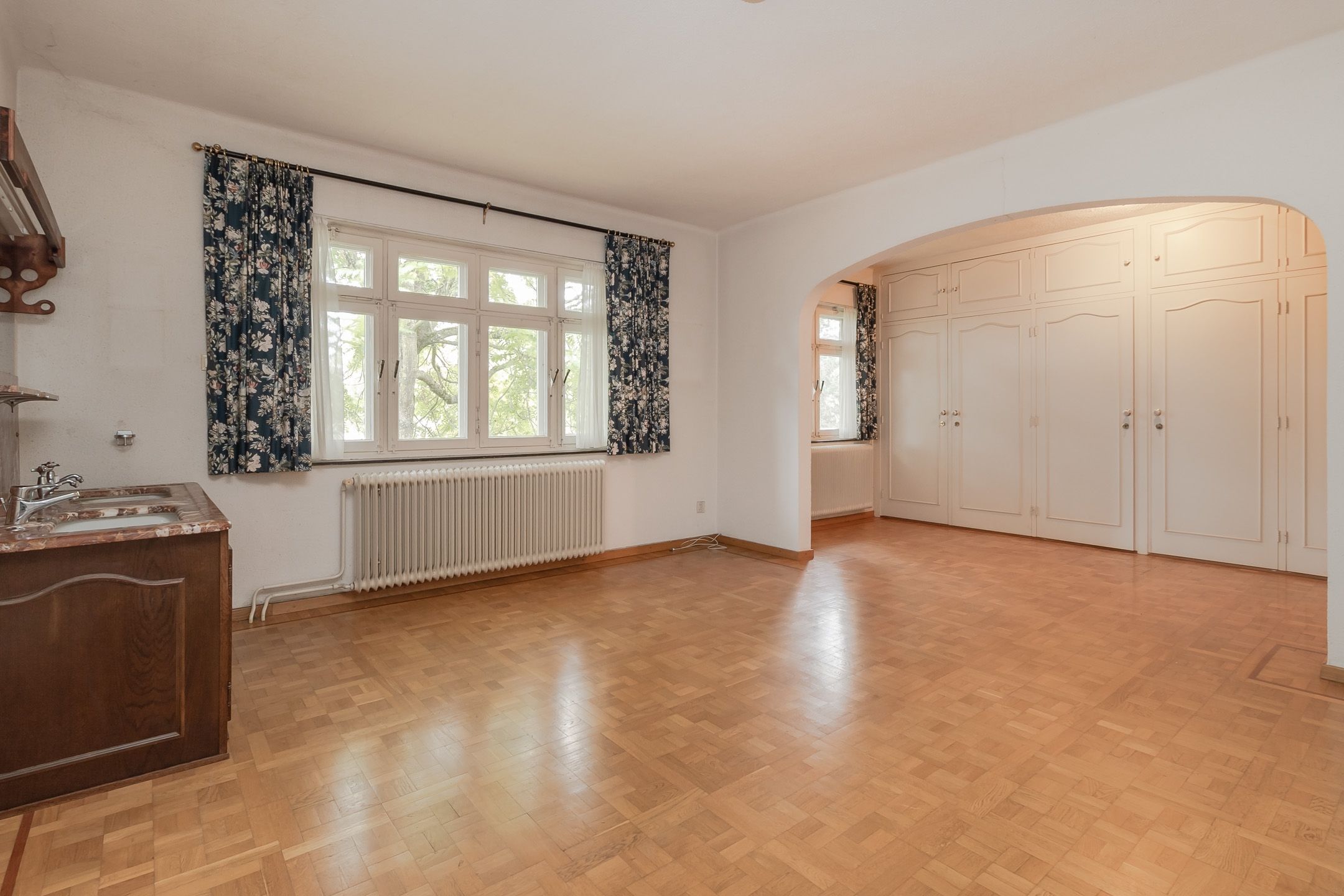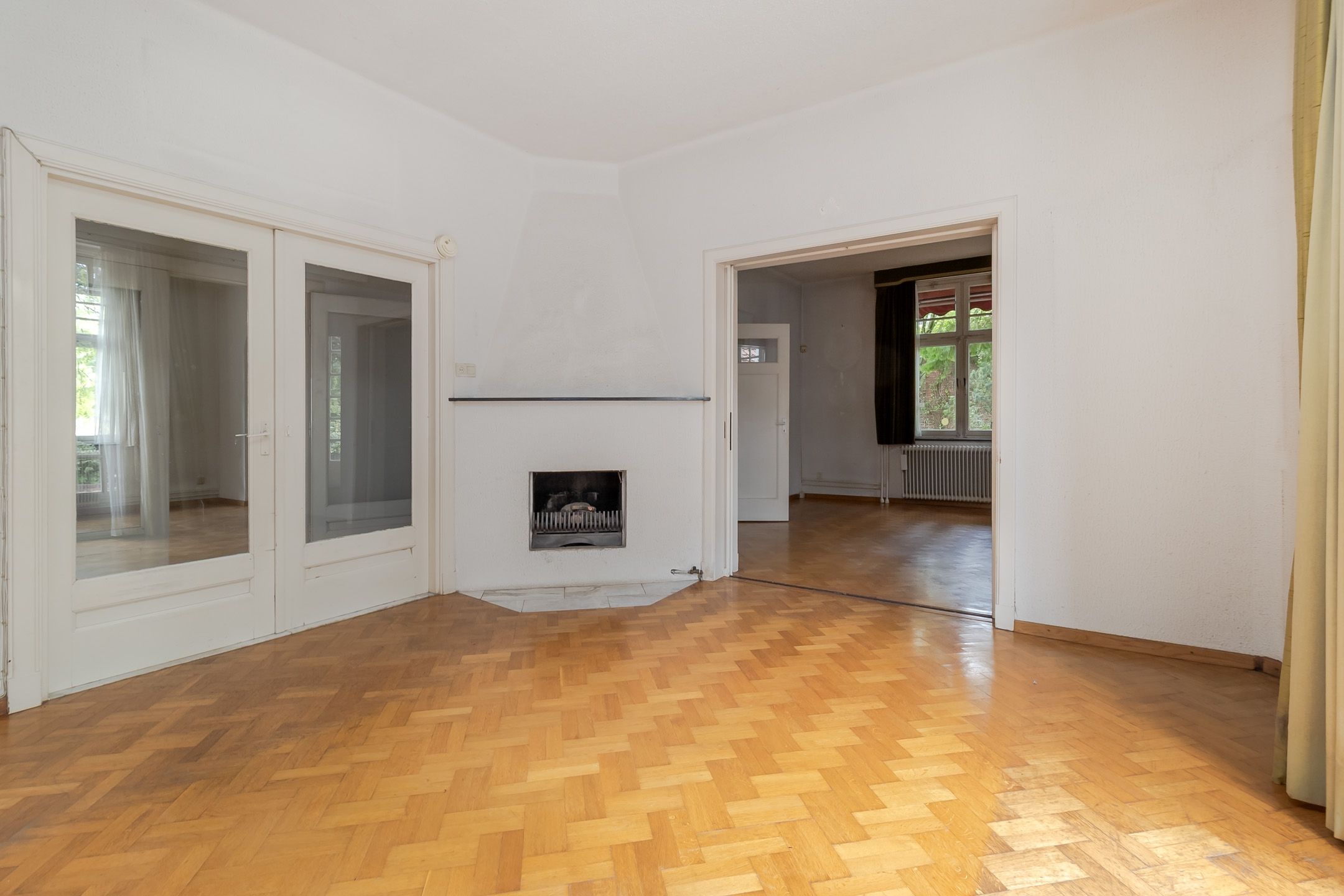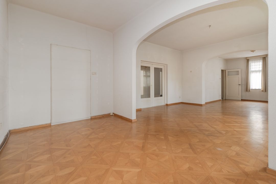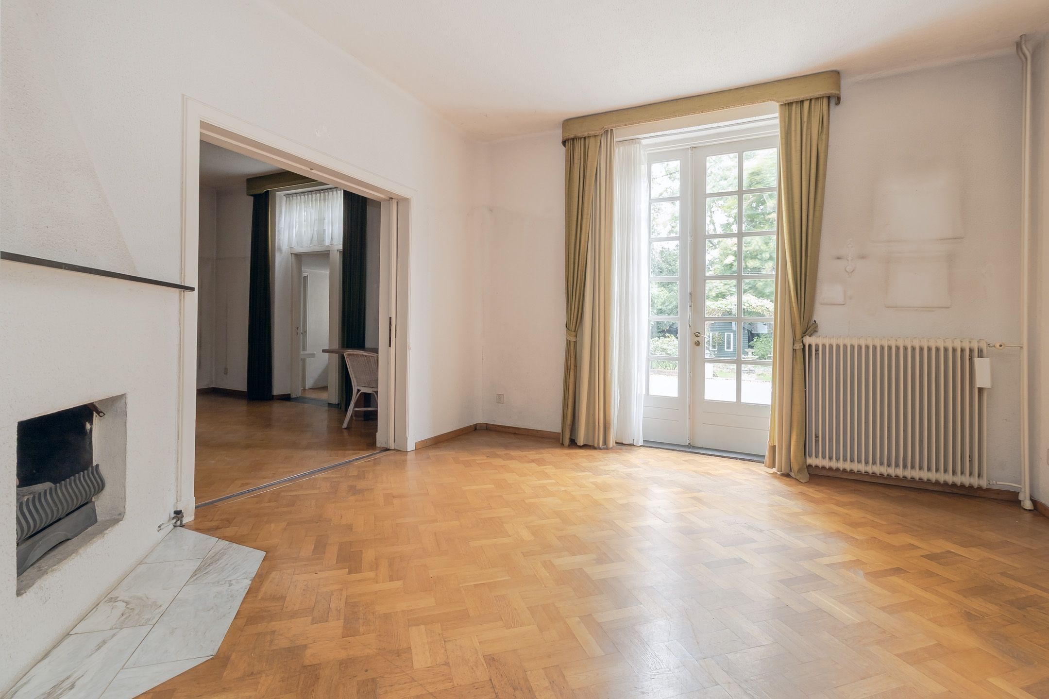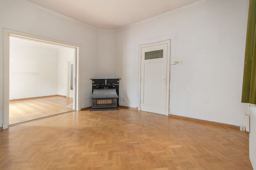 Bij binnenkomst in de woonkamer denk je meteen: wauw. De ruimte is groot en voelt warm en vertrouwd. De sfeervolle afwerking en de parketvloer maken het plaatje compleet. Authentieke details zijn overal bewaard gebleven, wat de woonkamer karakter geeft.