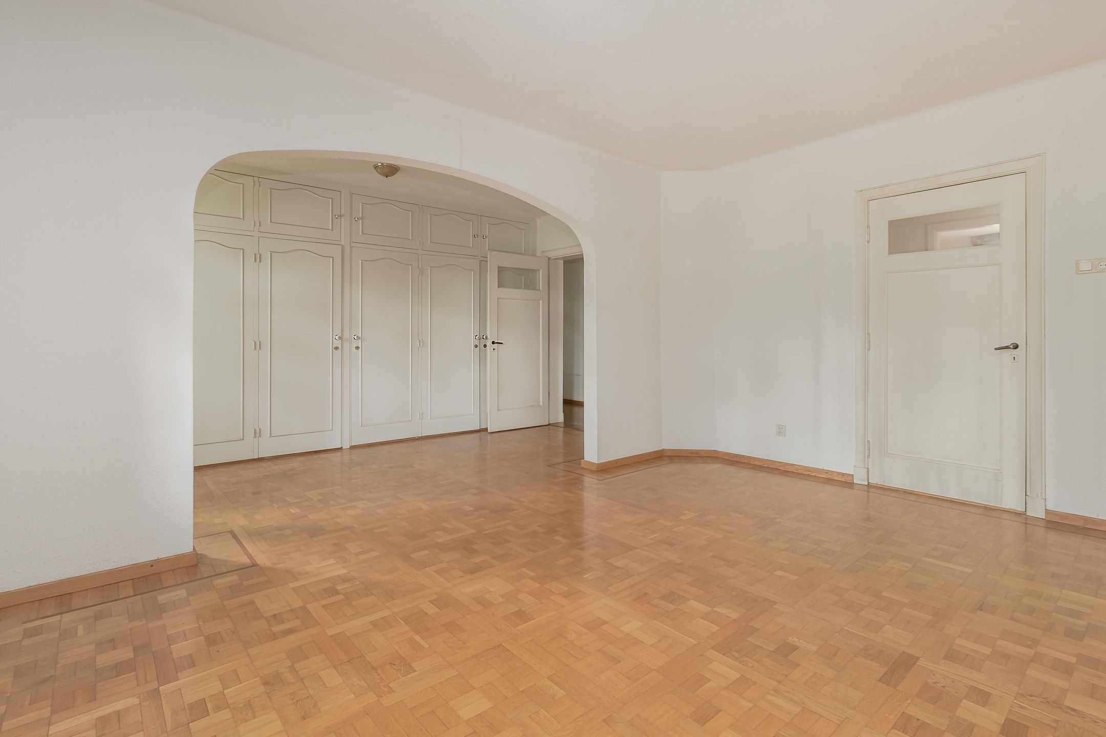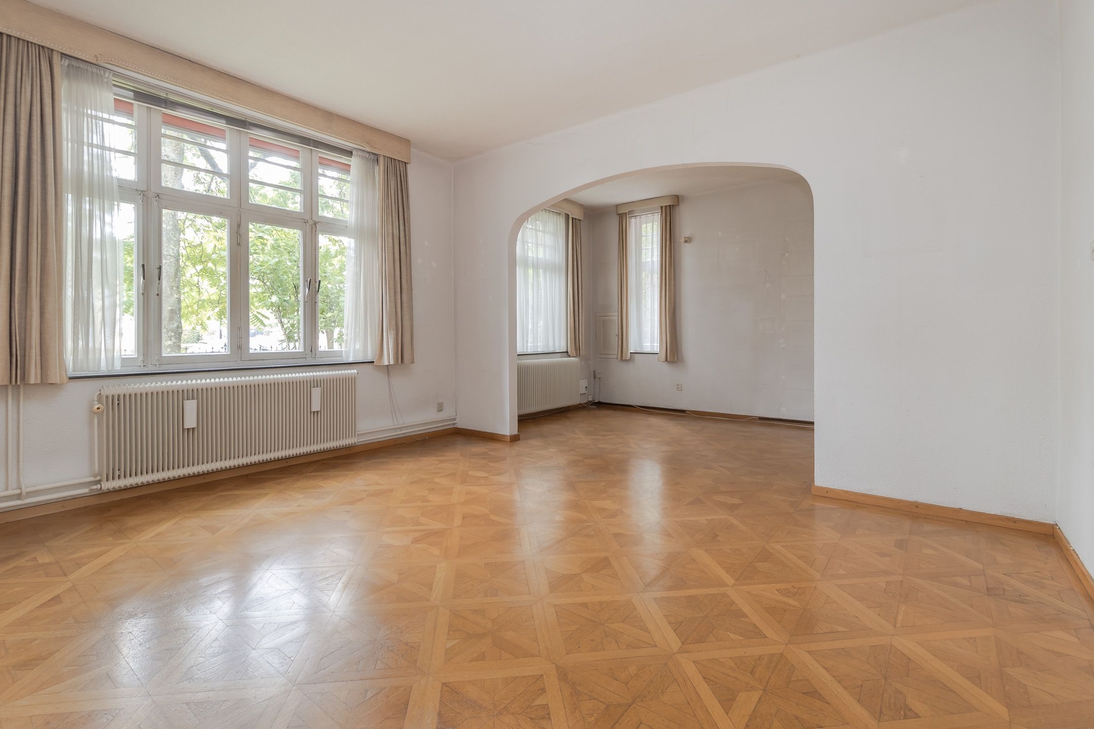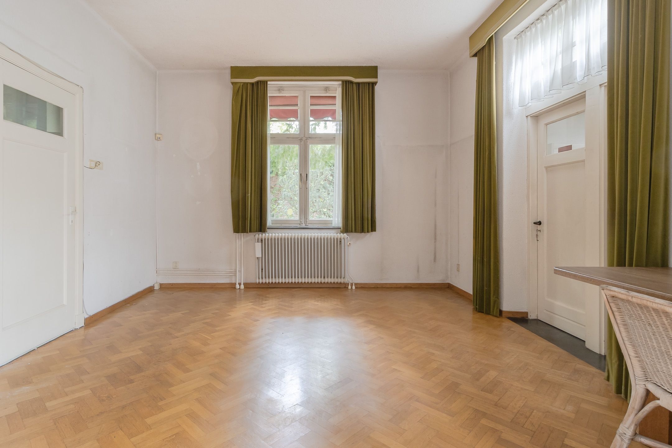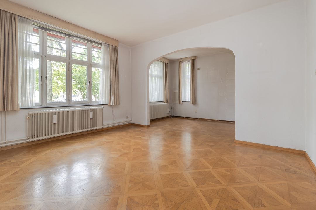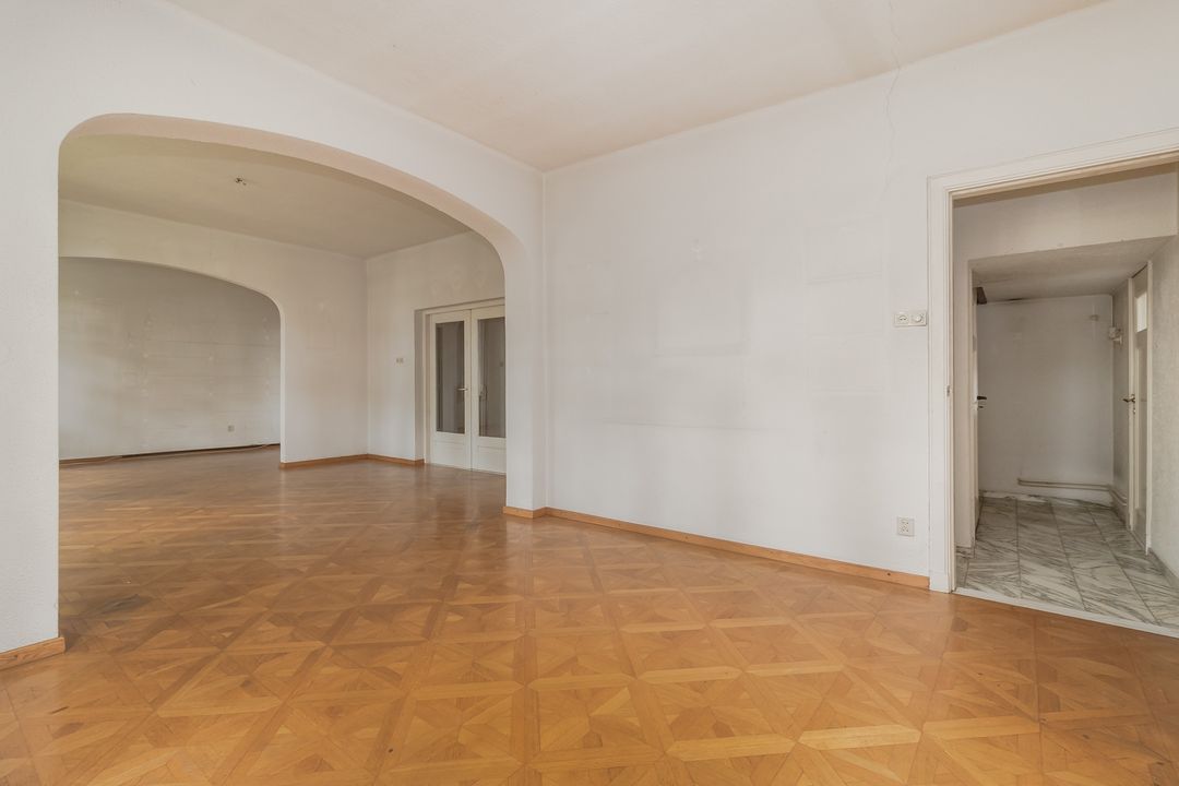 Bij binnenkomst in de woonkamer denk je meteen: wauw. De ruimte is groot en voelt warm en vertrouwd. De sfeervolle afwerking en de parketvloer maken het plaatje compleet. Authentieke details zijn overal bewaard gebleven, wat de woonkamer karakter geeft.