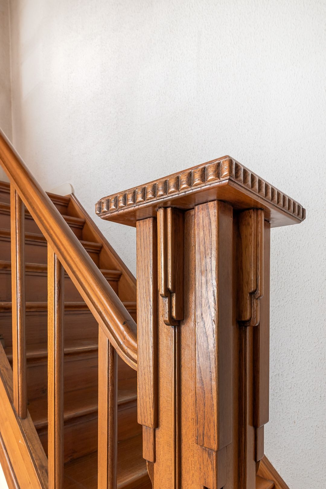 Via de originele trapopgang kom je op de overloop. Vanaf de overloop kom je in de 3 ruime slaapkamers en de badkamer.