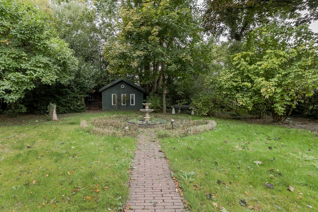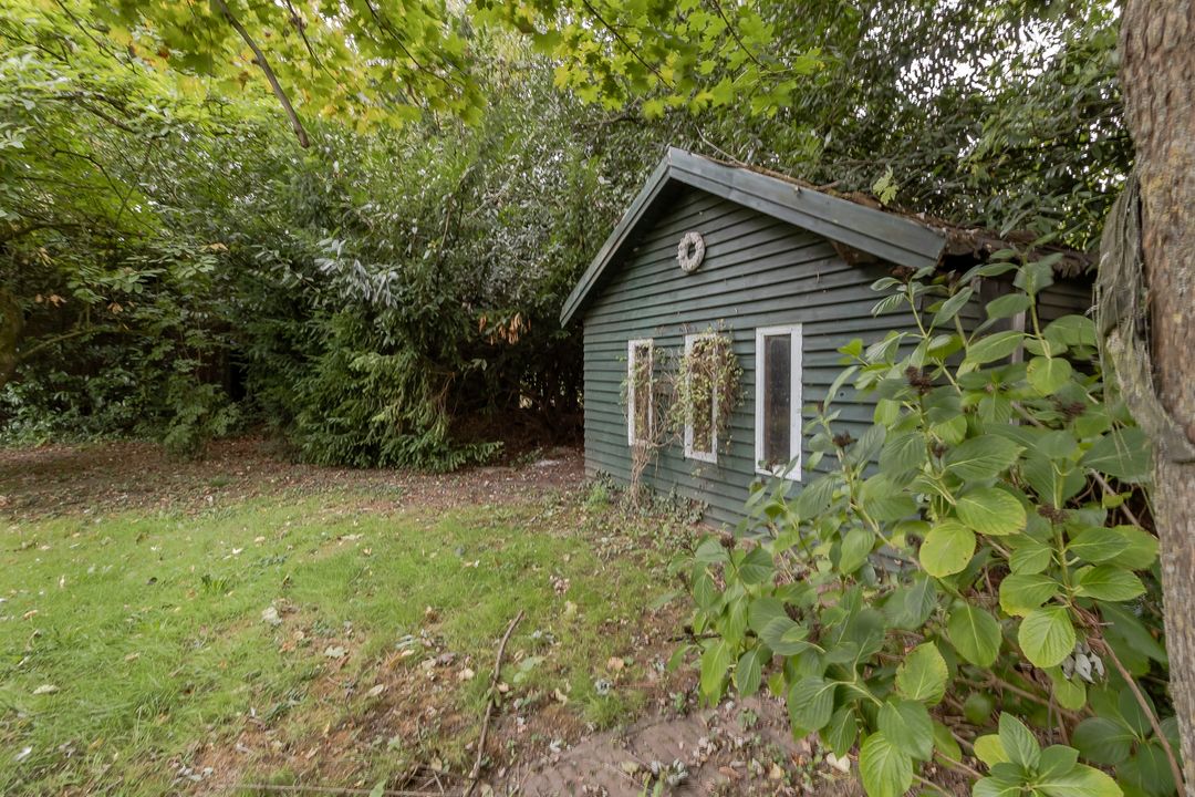 Achter in de tuin staat een berging die nu wordt gebruikt als opslagruimte. Maar die kun je ook voor iets anders gebruiken. Denk aan een atelier of (wo)mancave.