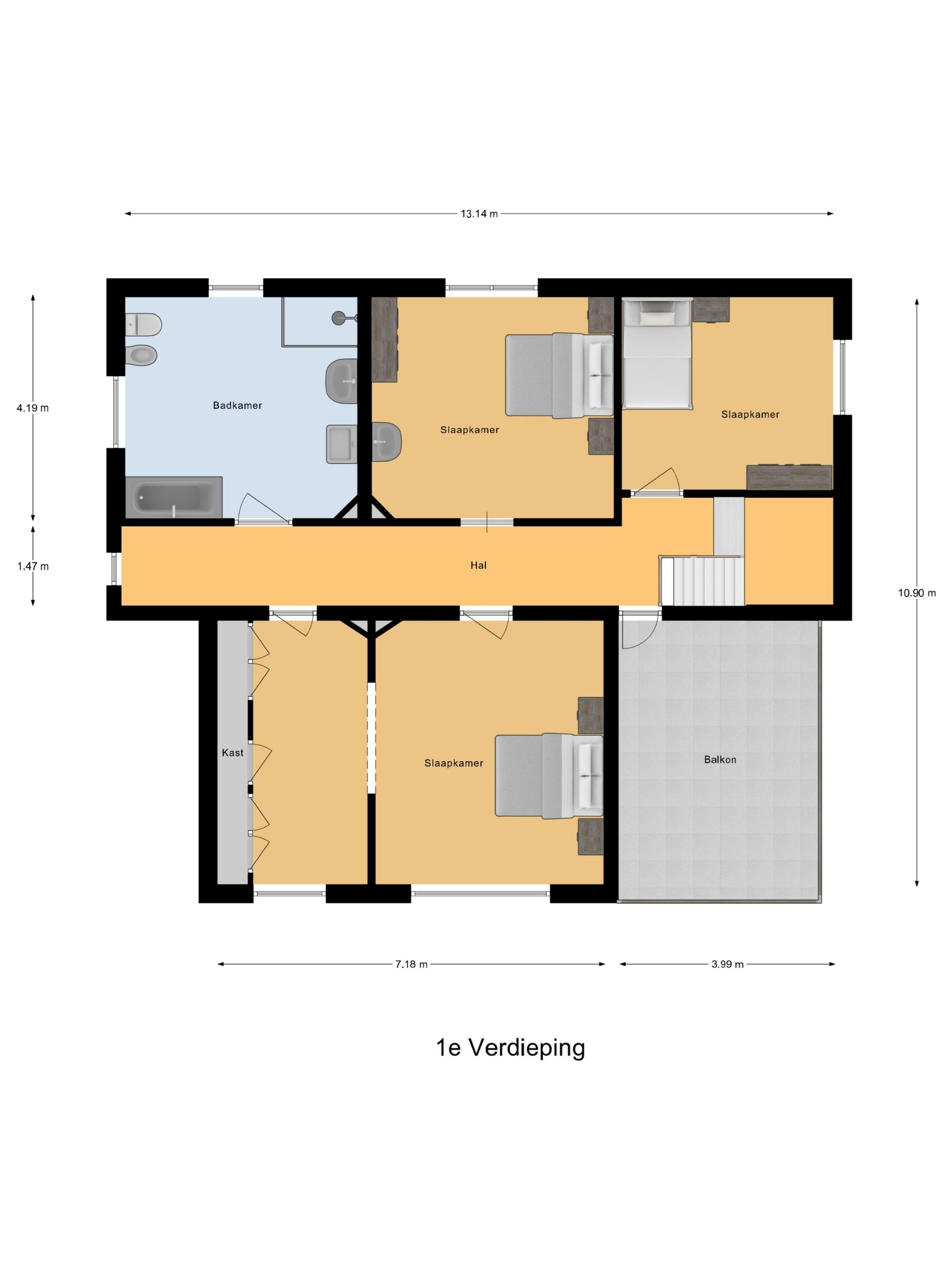 Aan de voorkant heb je de hoofdslaapkamer met uitzicht op de voortuin. Deze kamer beschikt over een praktische inbouwkast over de hele lengte van de woning.