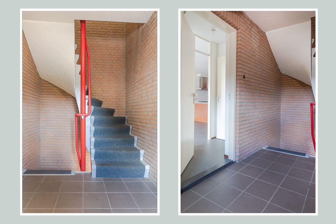 Via de gemeenschappelijk ingang gaat u naar de 1e verdieping met een trap naar boven waarna u een eigen voordeur heeft als ingang naar het appartement.