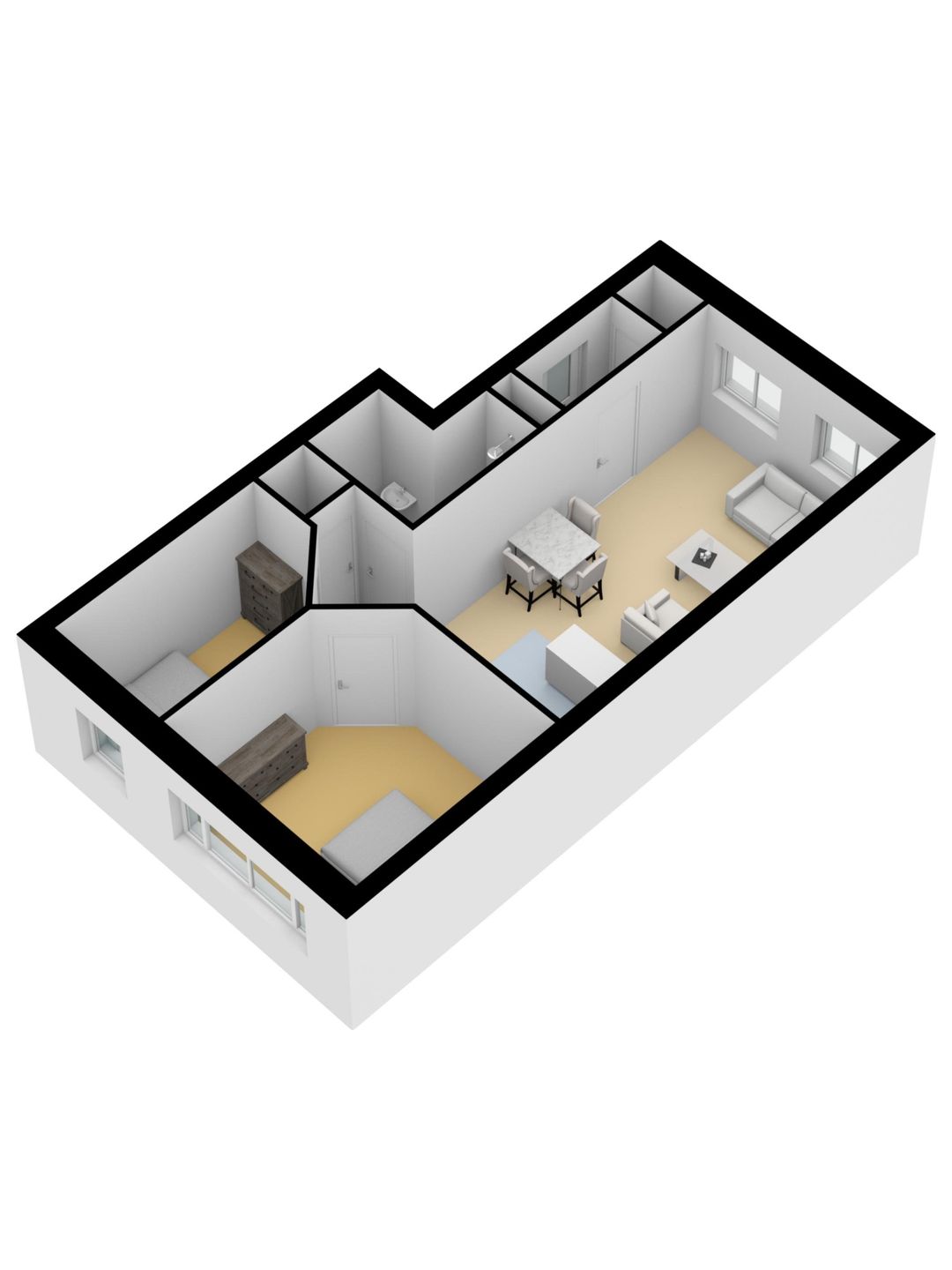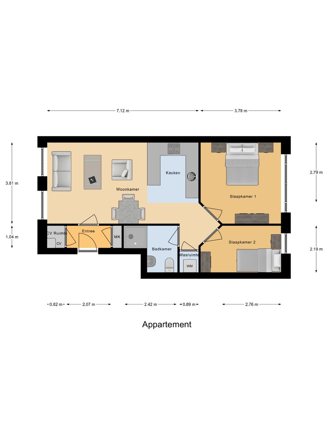 Het in 2004 gebouwde appartement heeft een woonkamer met open keuken, grote slaapkamer, kleine slaapkamer, wasruimte, CV ruimte, badkamer.